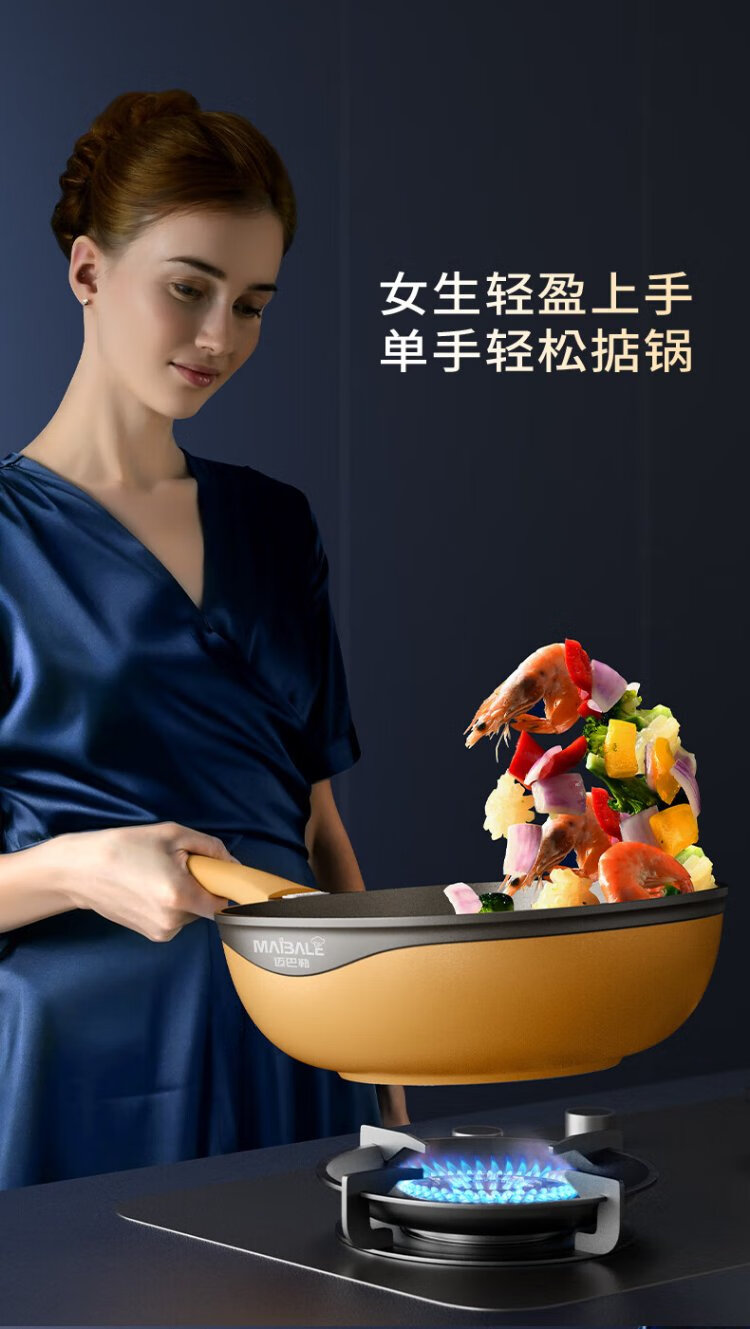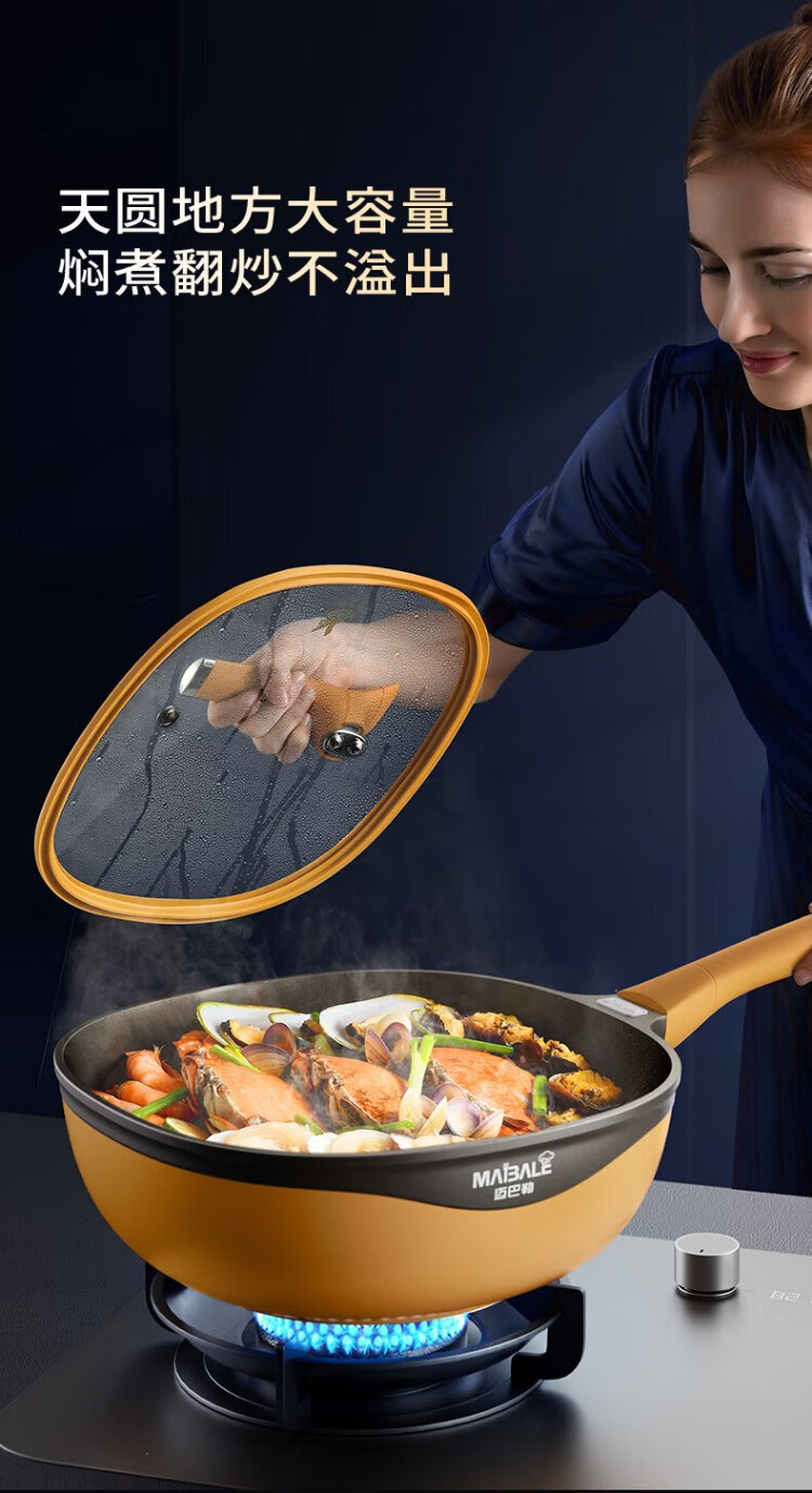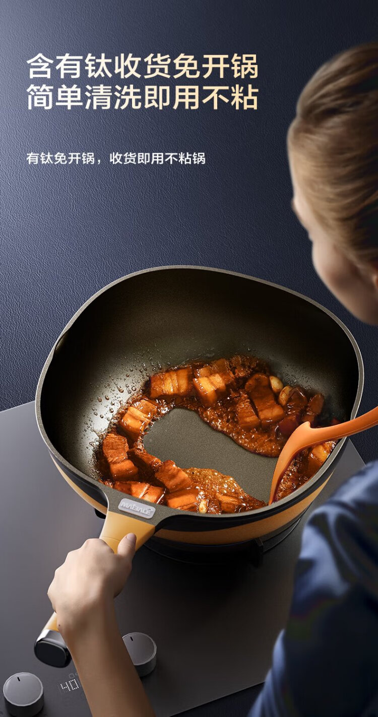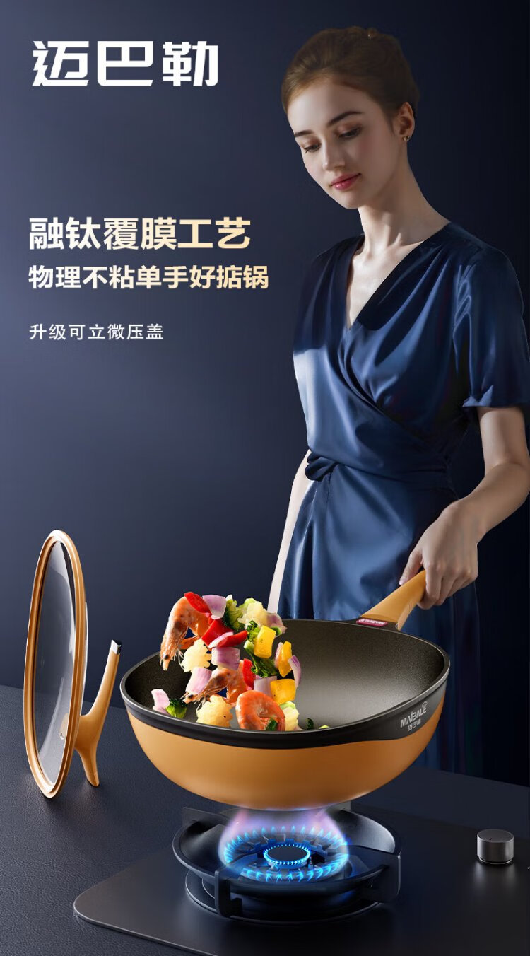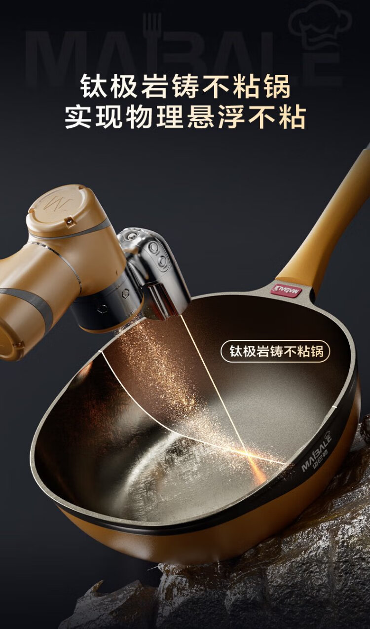 Maybal Douyin same style titanium rock cast non-stick wok for frying multi-purpose wok household wear-resistant 32cm wok