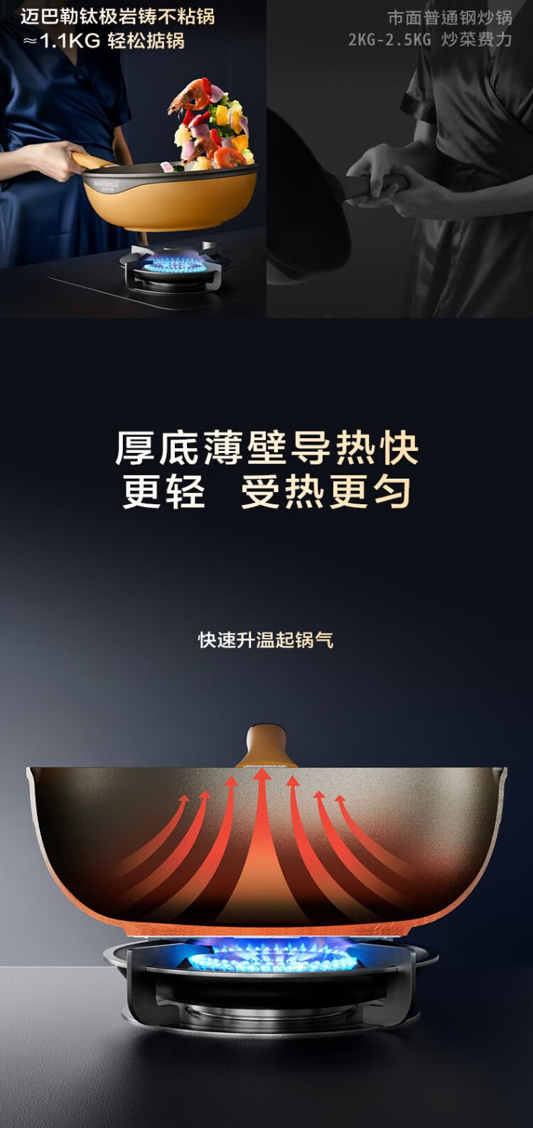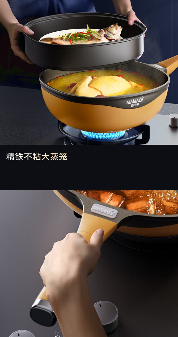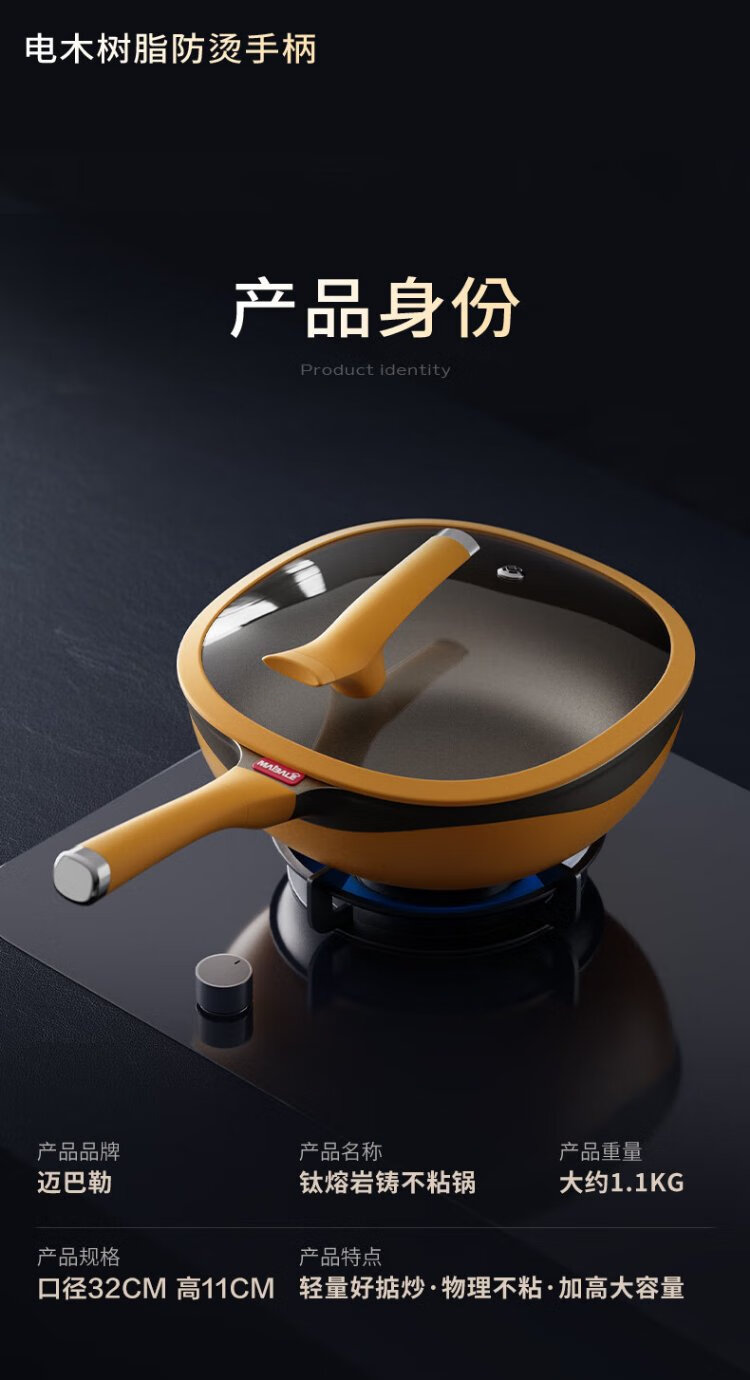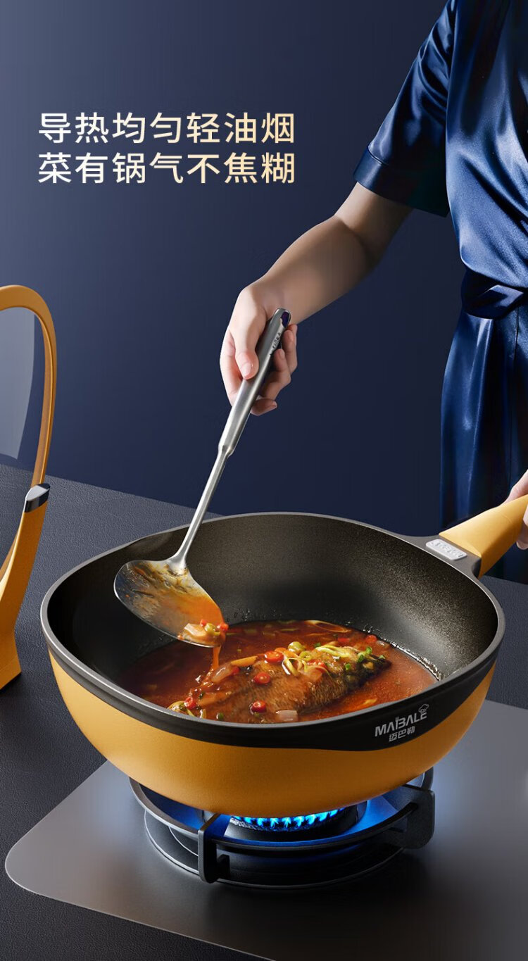 Maybal Douyin same style titanium rock cast non-stick wok for frying multi-purpose wok household wear-resistant 32cm wok