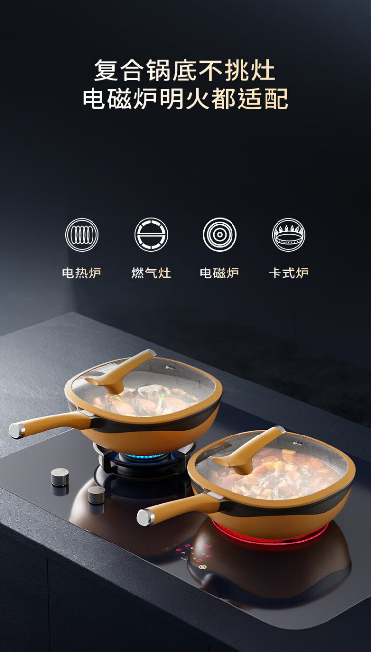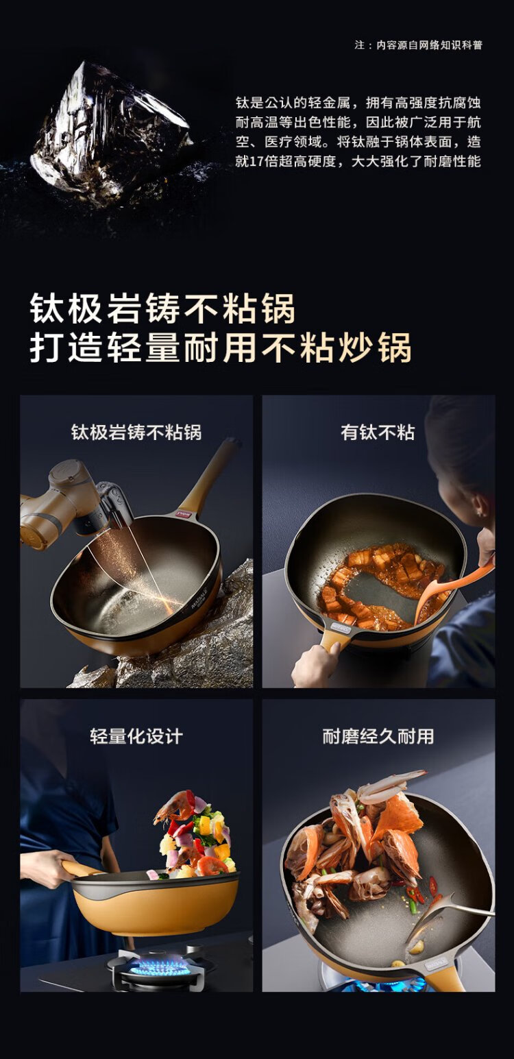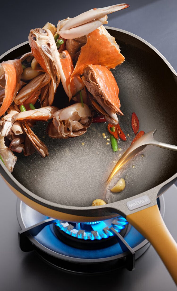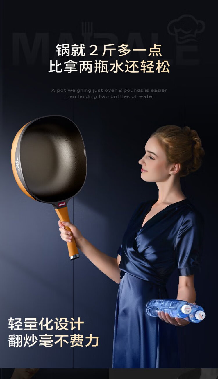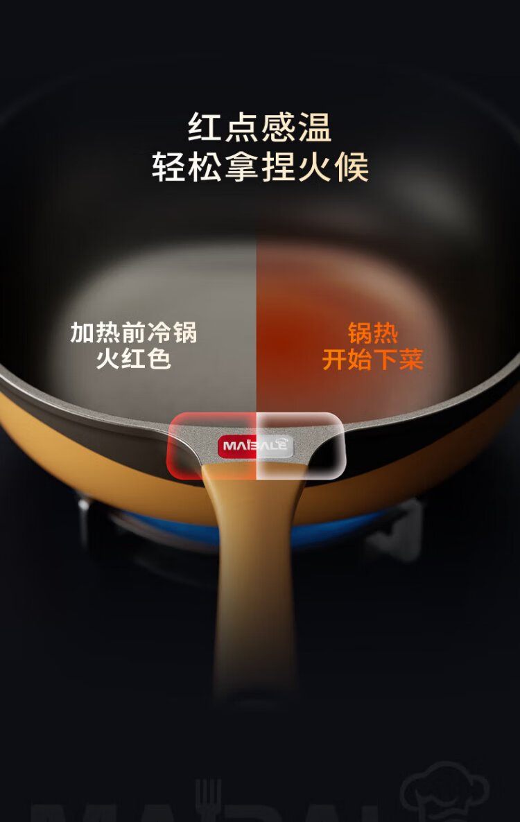 Maybal Douyin same style titanium rock cast non-stick wok for frying multi-purpose wok household wear-resistant 32cm wok