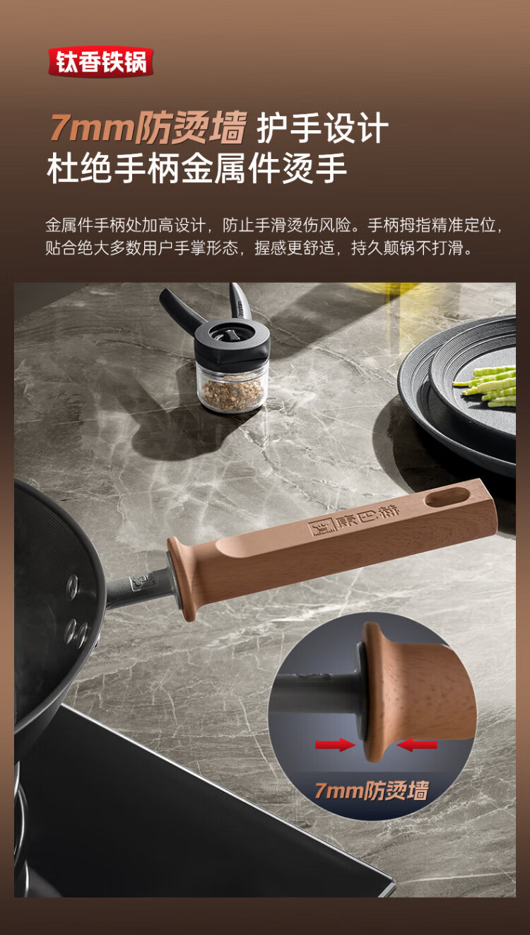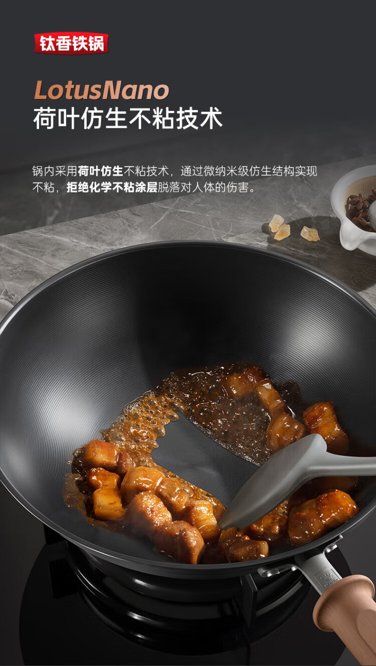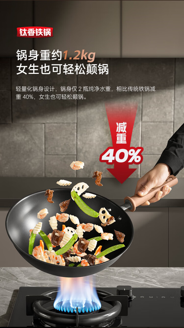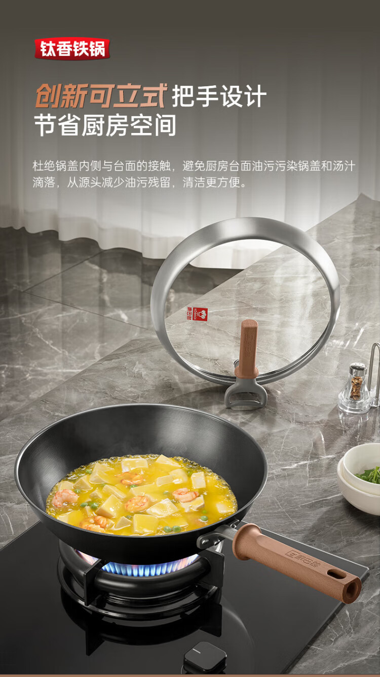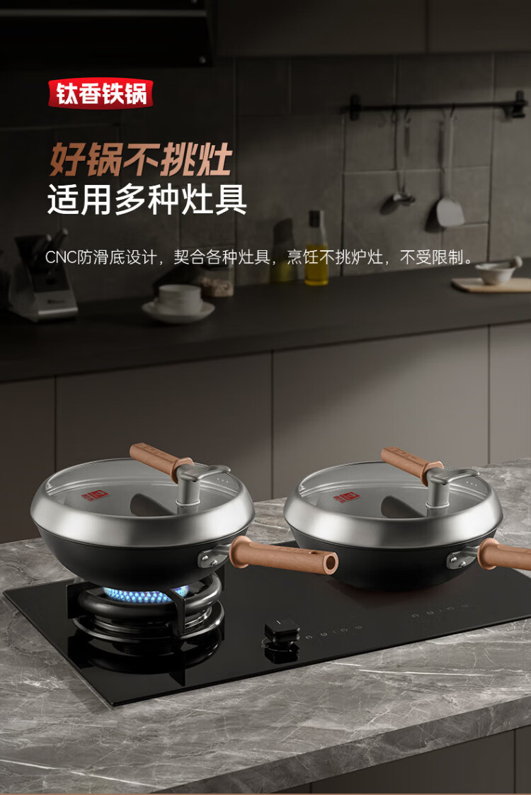 Konbach titanium fragrant iron pot uncoated anti-rust wok non-stick pot 32cm household flat bottom wok induction cooker gas universal