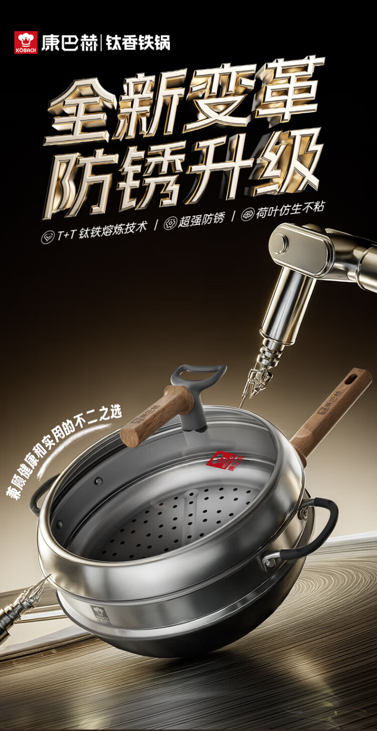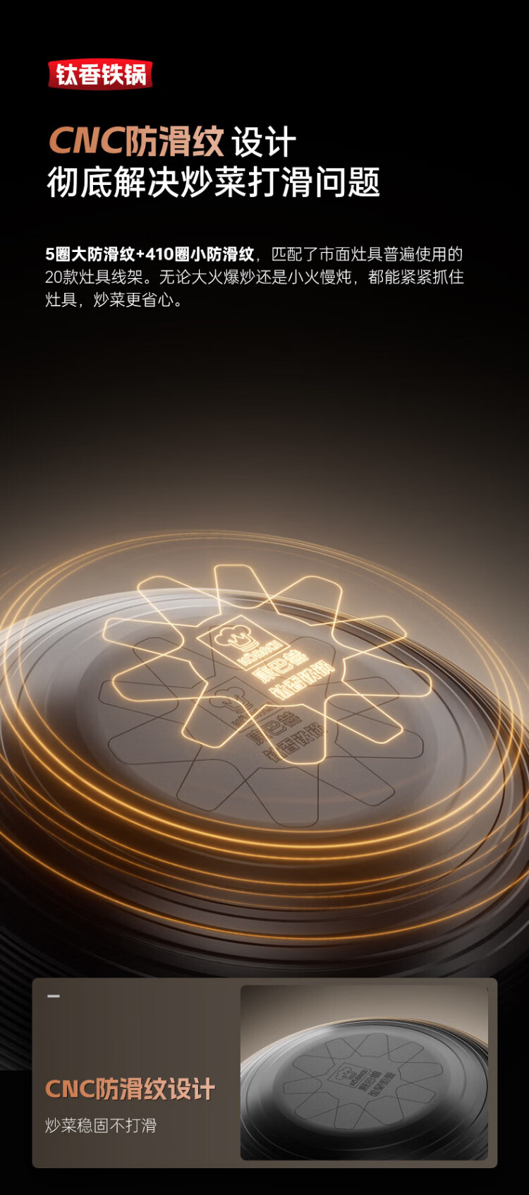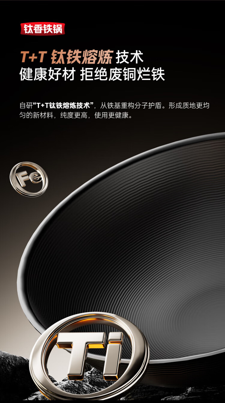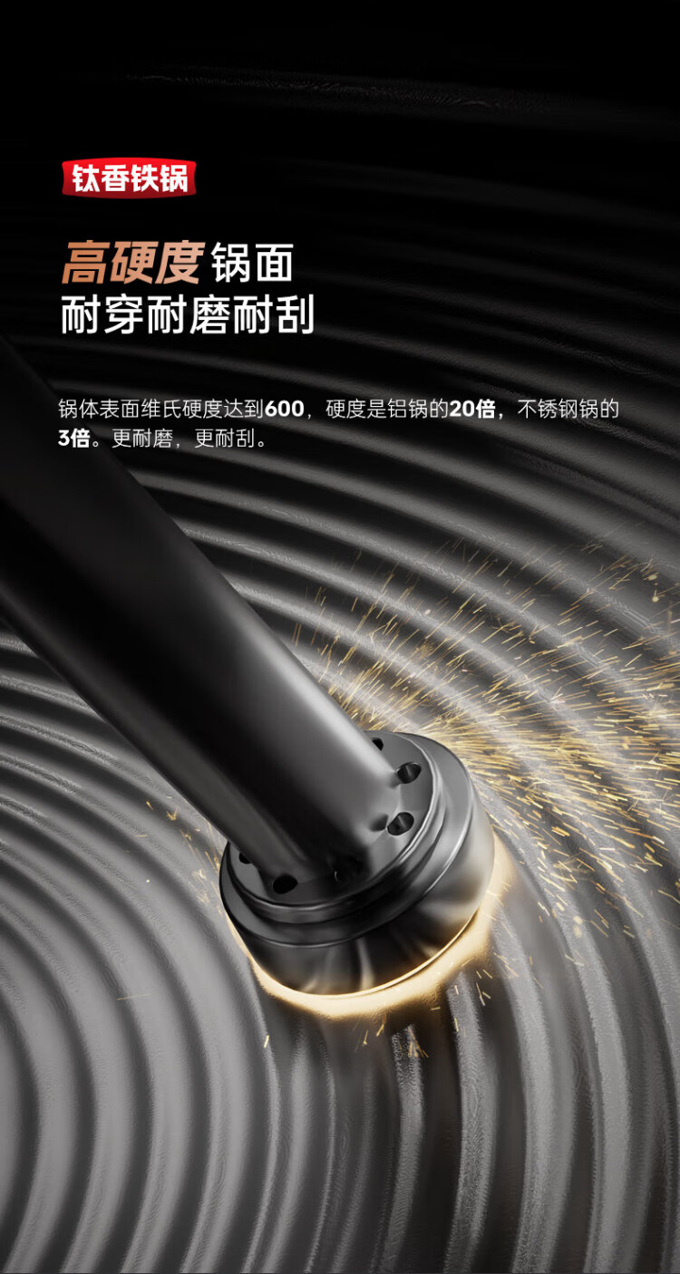 Konbach titanium fragrant iron pot uncoated anti-rust wok non-stick pot 32cm household flat bottom wok induction cooker gas universal