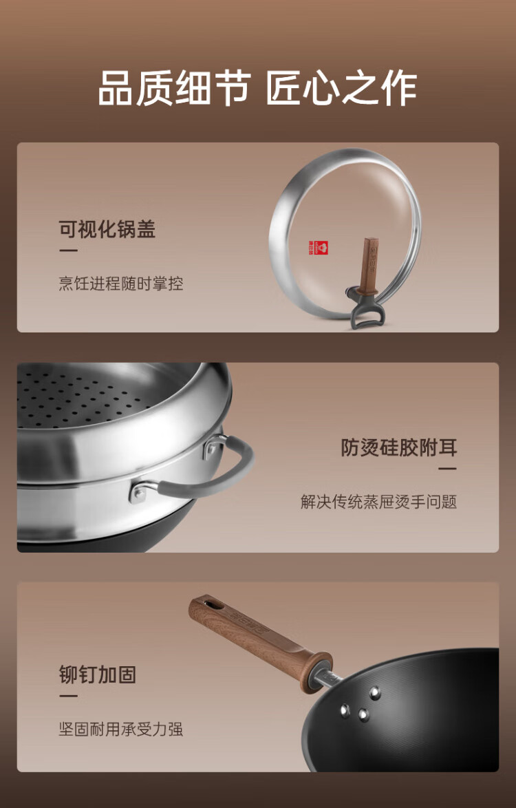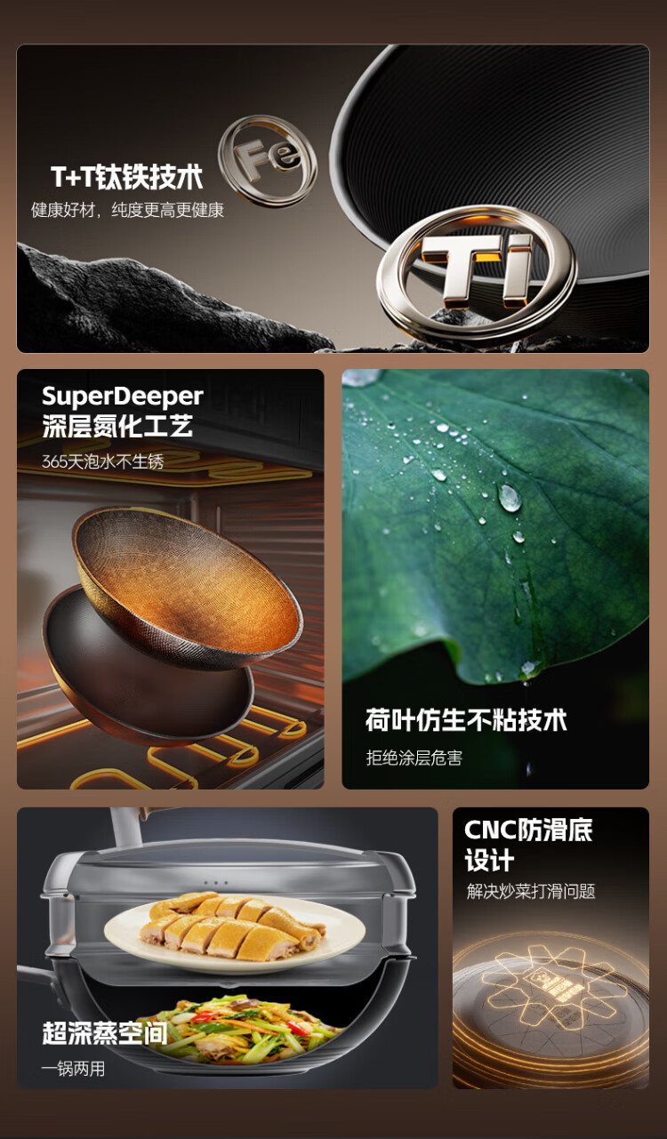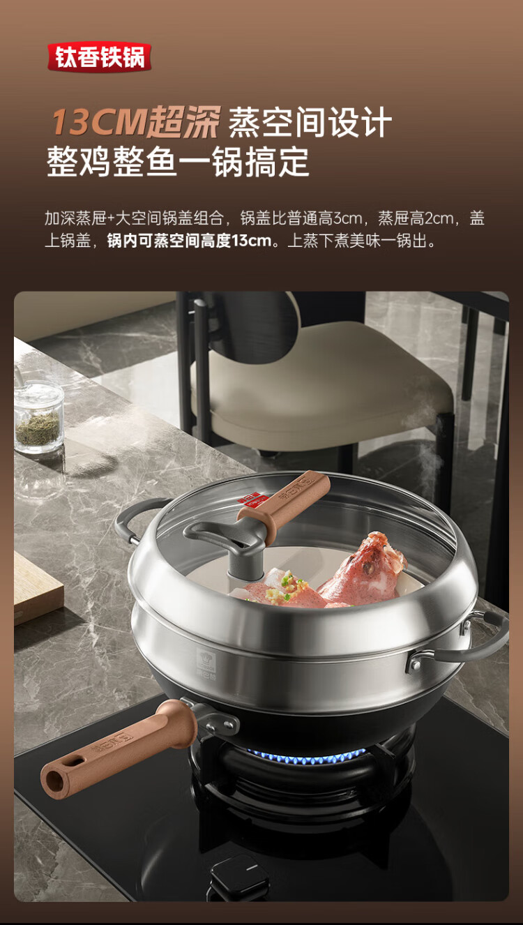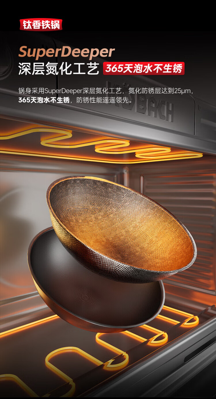 Konbach titanium fragrant iron pot uncoated anti-rust wok non-stick pot 32cm household flat bottom wok induction cooker gas universal