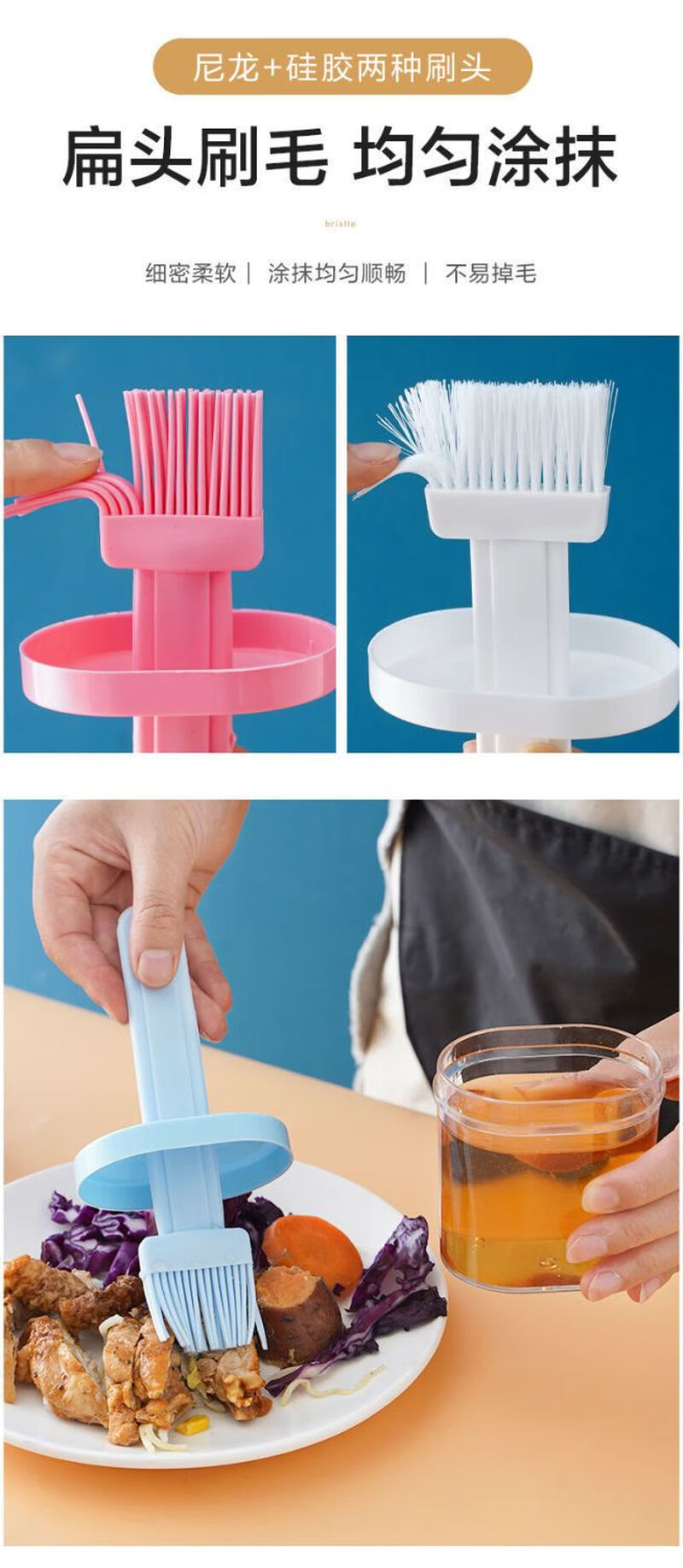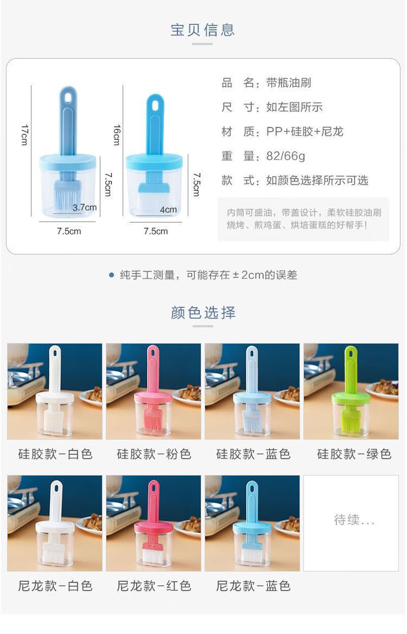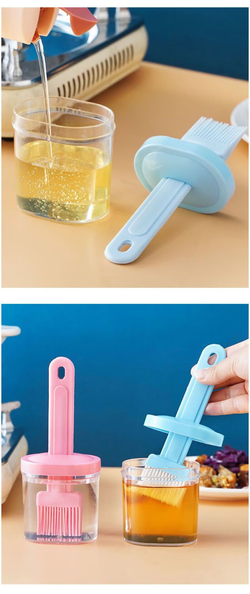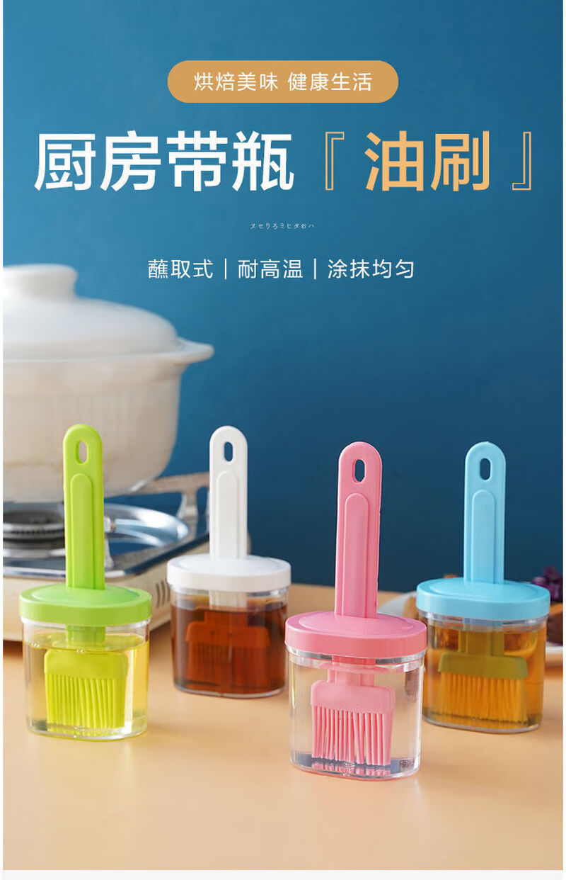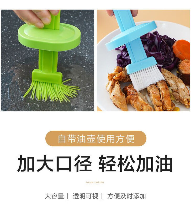 Oil brush with bottle household high temperature resistant kitchen pancake brush edible seasoning bottle barbecue oil brush artifact one pack blue model