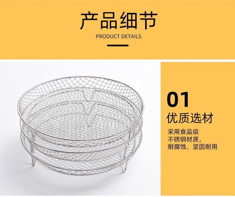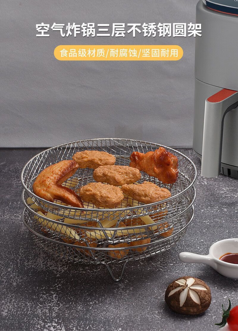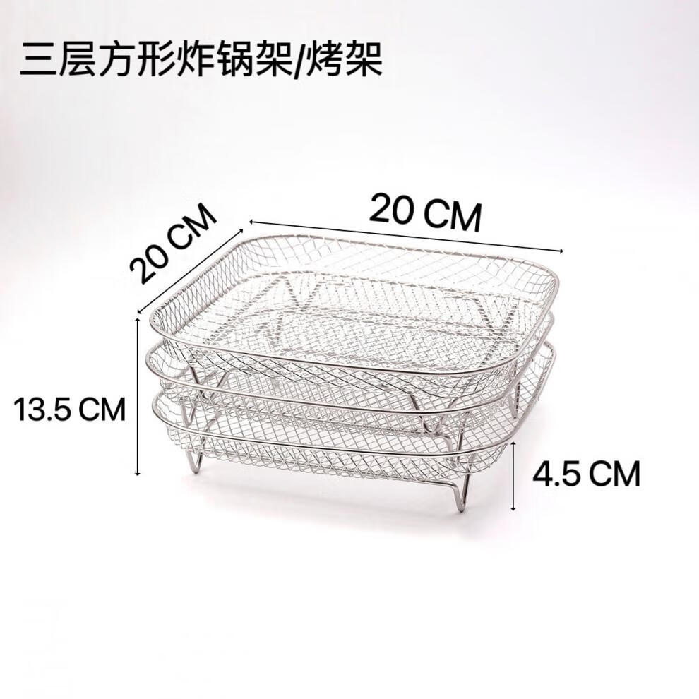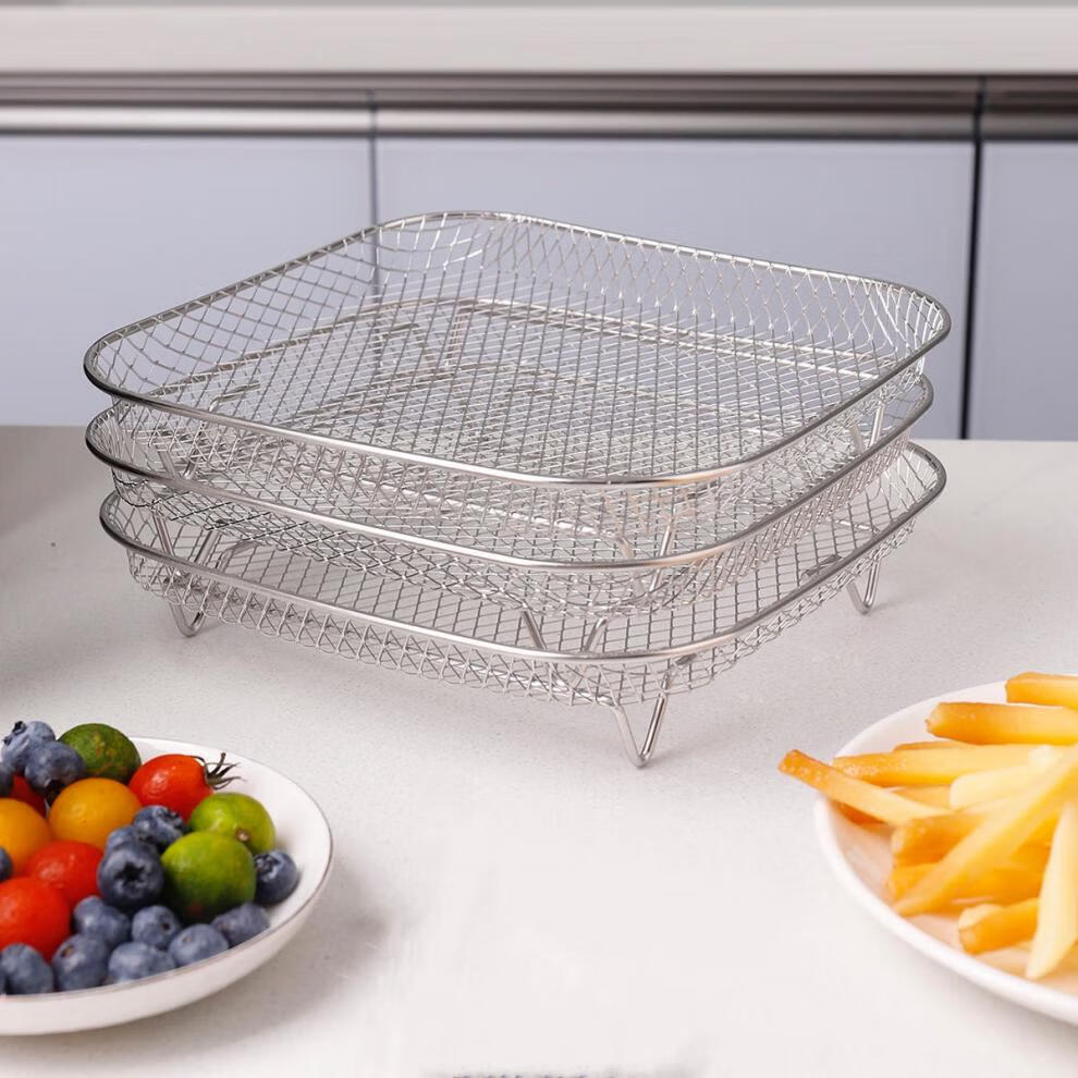 FANCYCHIC square multi-layer stainless steel oven air fryer accessories grill drain rack barbecue mesh steaming rack baking cooling rack 3-layer square grill