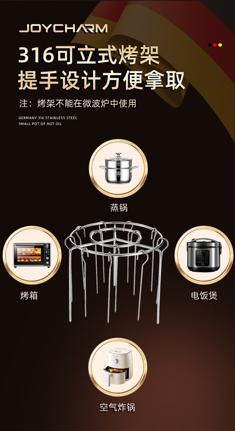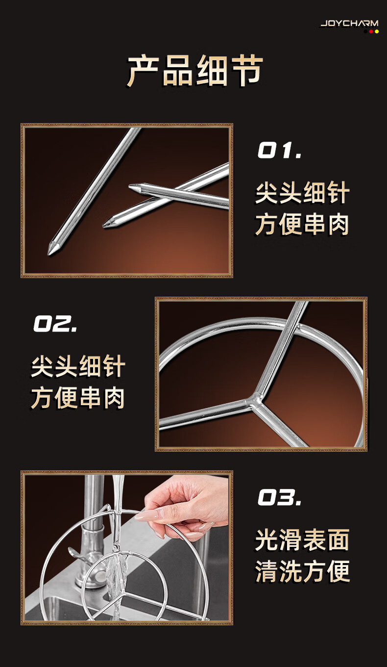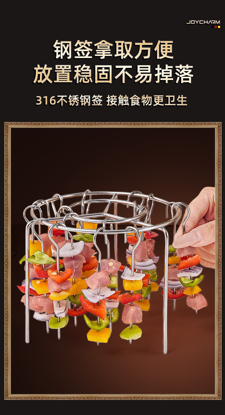 JOYCHARM German 316 stainless steel air fryer grill kitchen oven accessories universal vertical barbecue grill barbecue skewers large vertical grill-26 skewers