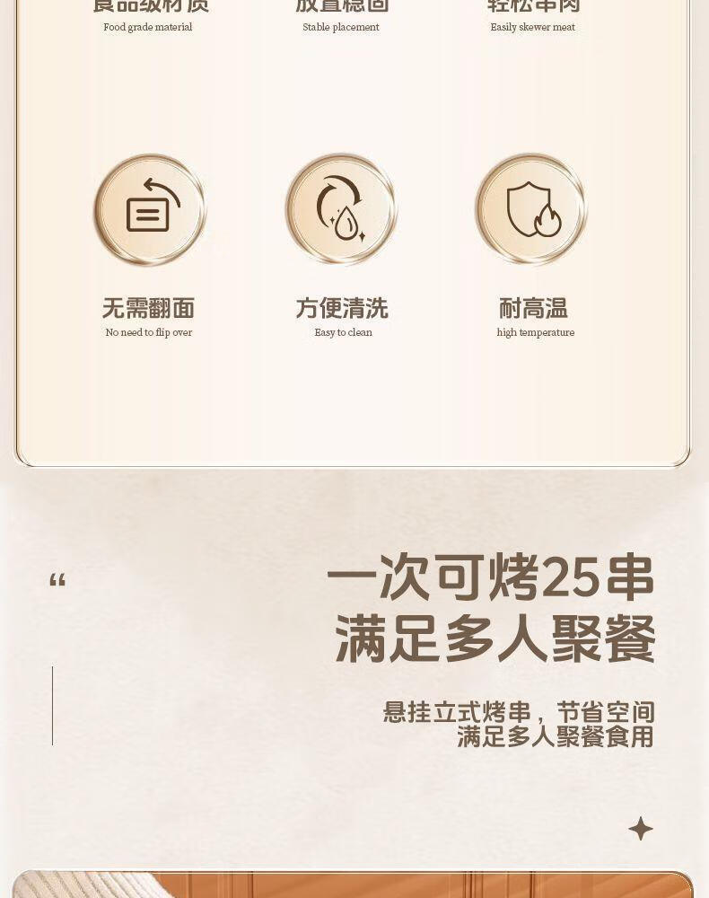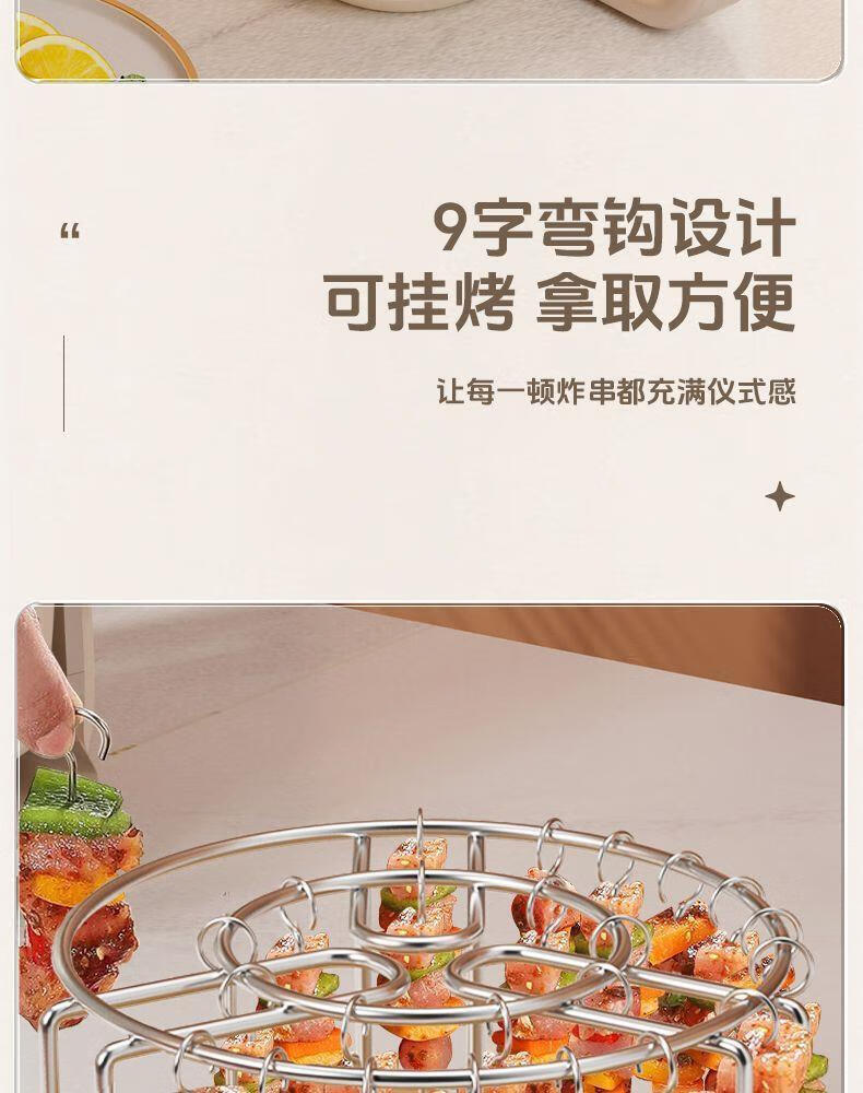 Enshousu air fryer grill household oven hob rack 304 stainless steel flip-free vertical barbecue skewers 25-pin 304 stainless steel skewers