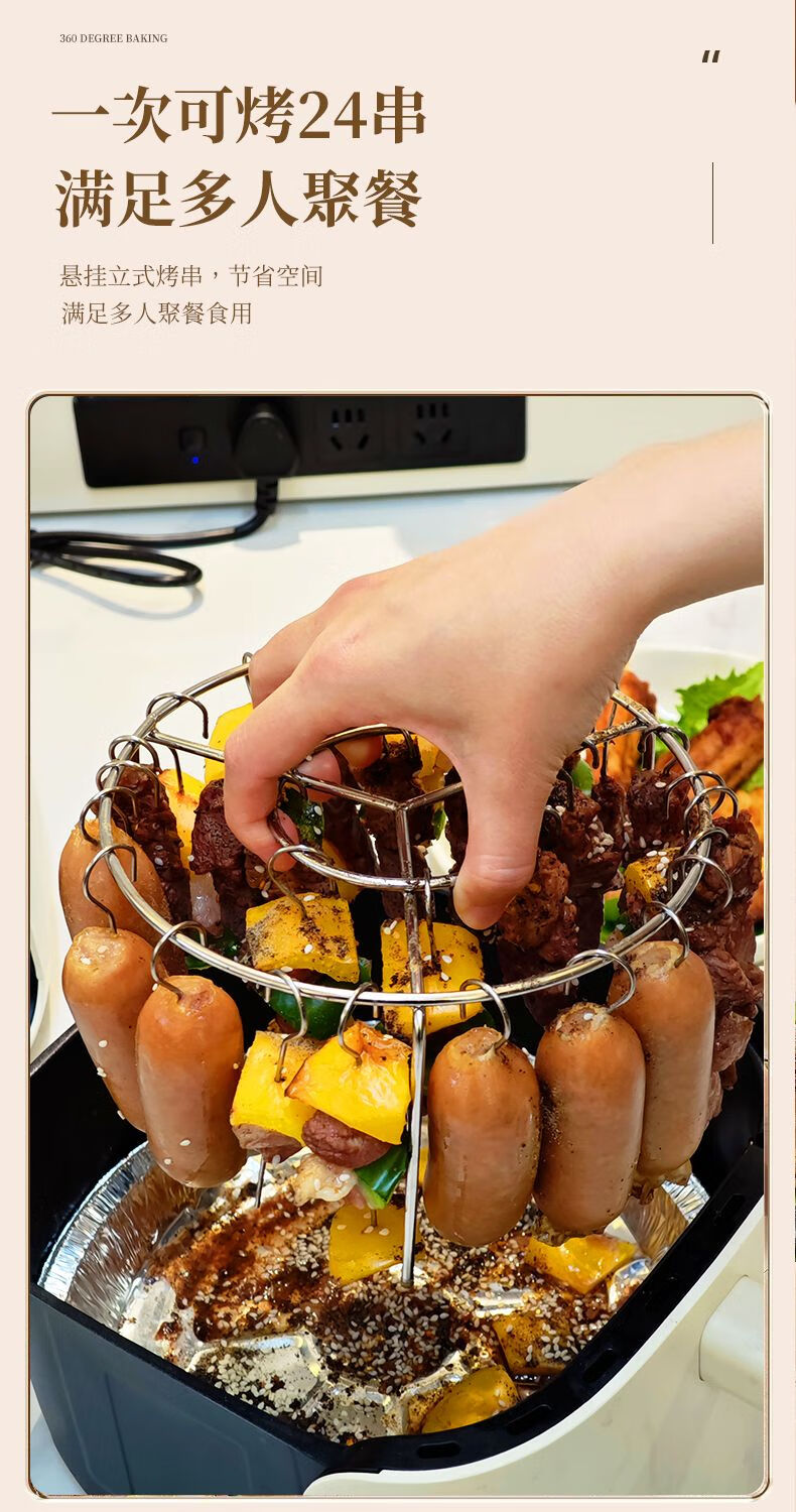 Air fryer skewers rack detachable skewers 2025 new model (air fryer skewers) to make at home Thickened premium round BBQ rack + 40 pins