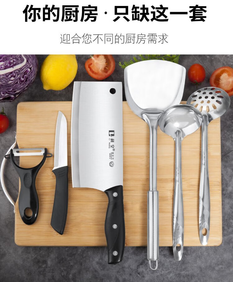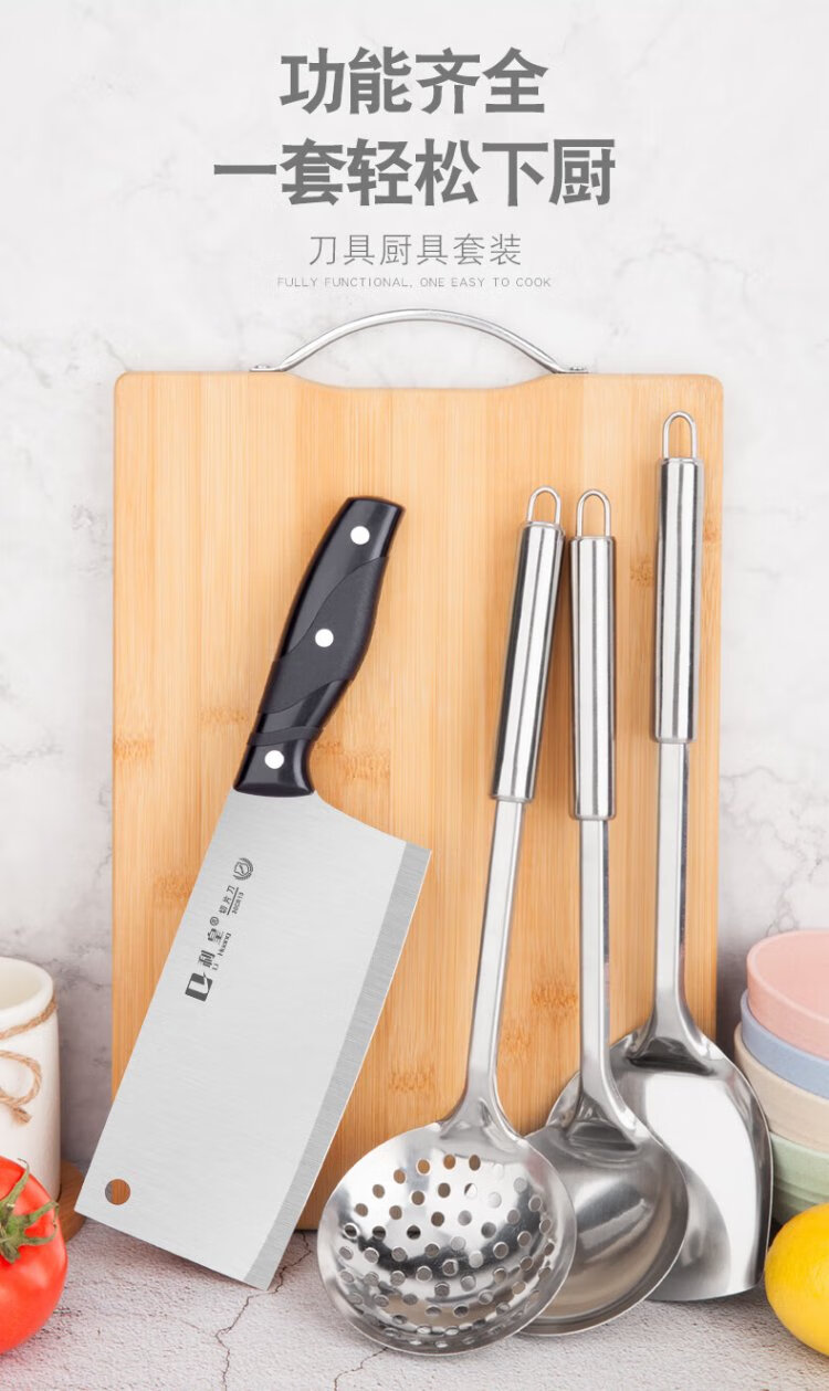 Lihuang Kitchen Knife Set Cutting Board Kitchen Supplies Kitchenware Chopping Board Spatula Kitchen Knife Full Set Chopping Board Combination Knife Holder Collection Nan Bamboo Board Kitchen Knife Hot Pot 7-piece Set