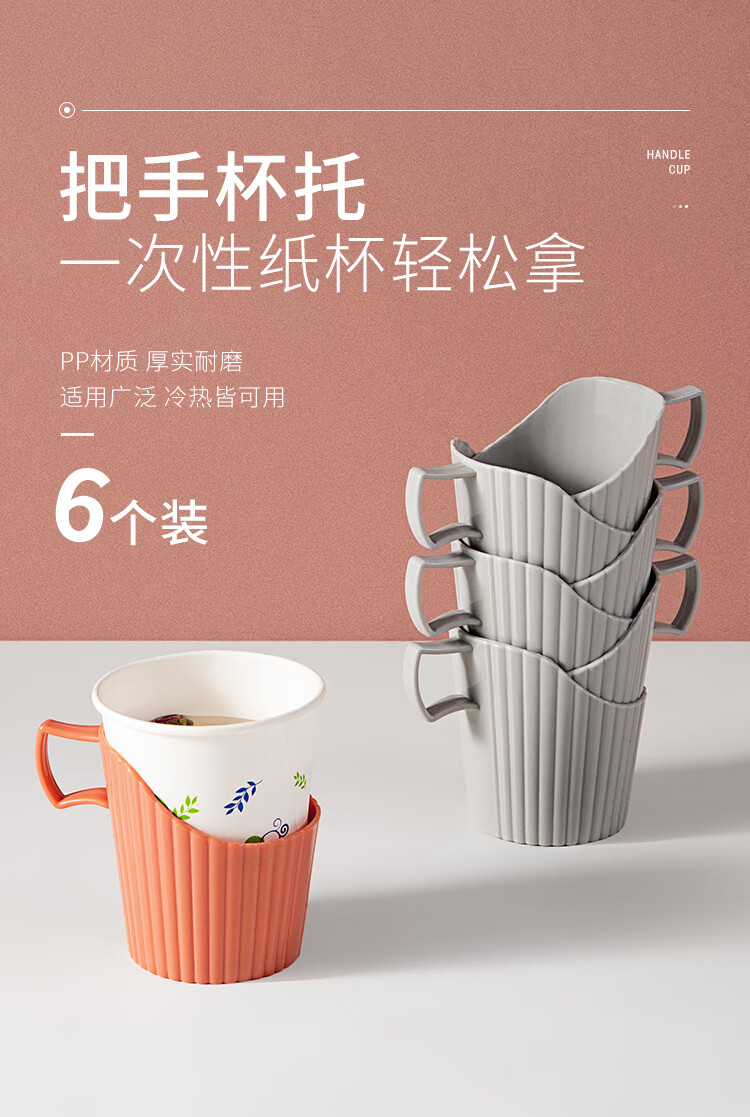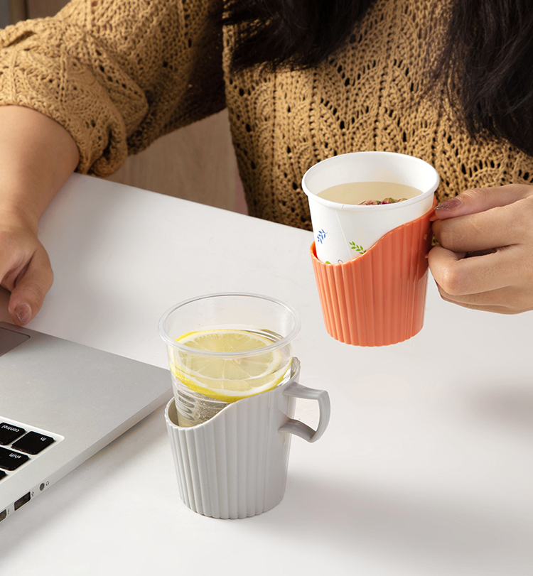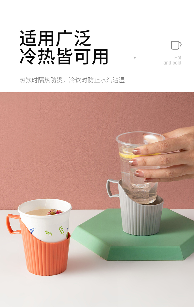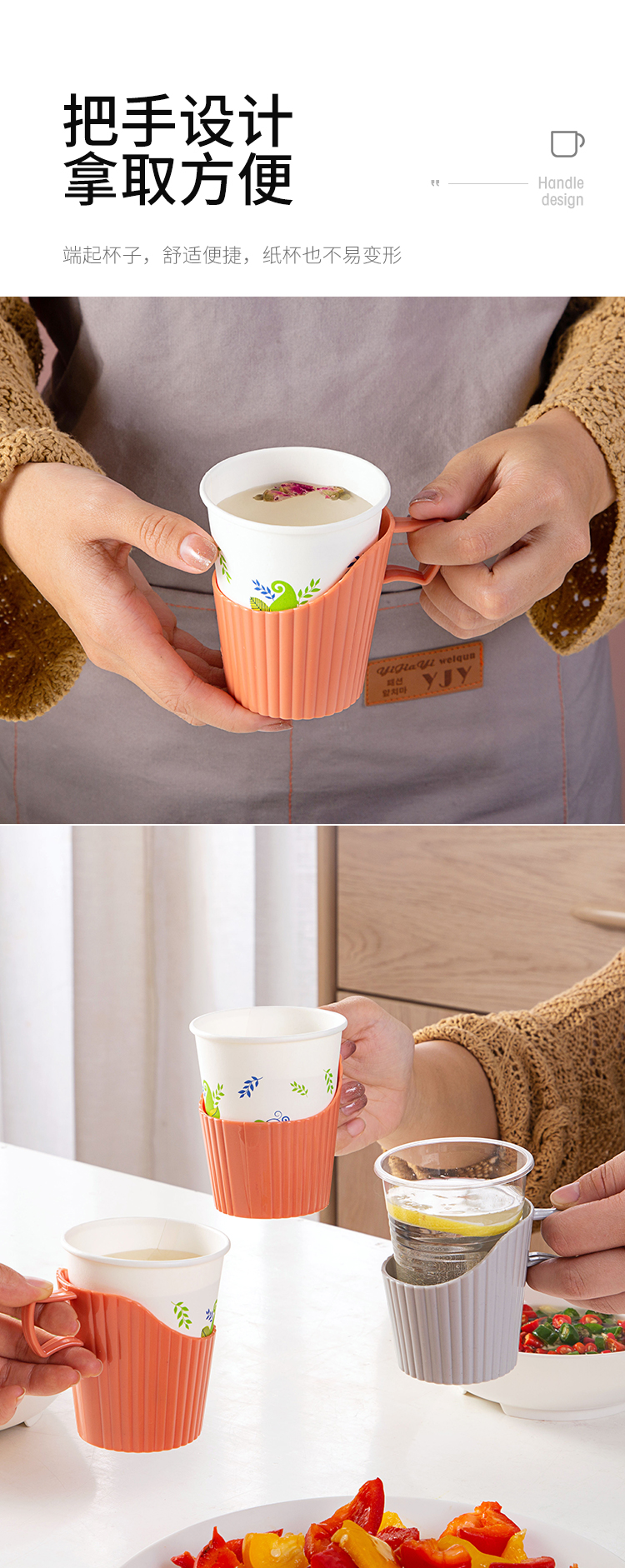 Disposable paper cup holder cup holder household cup holder cover thickened plastic anti-scalding hand insulation creative paper cup holder tea cup holder coral red