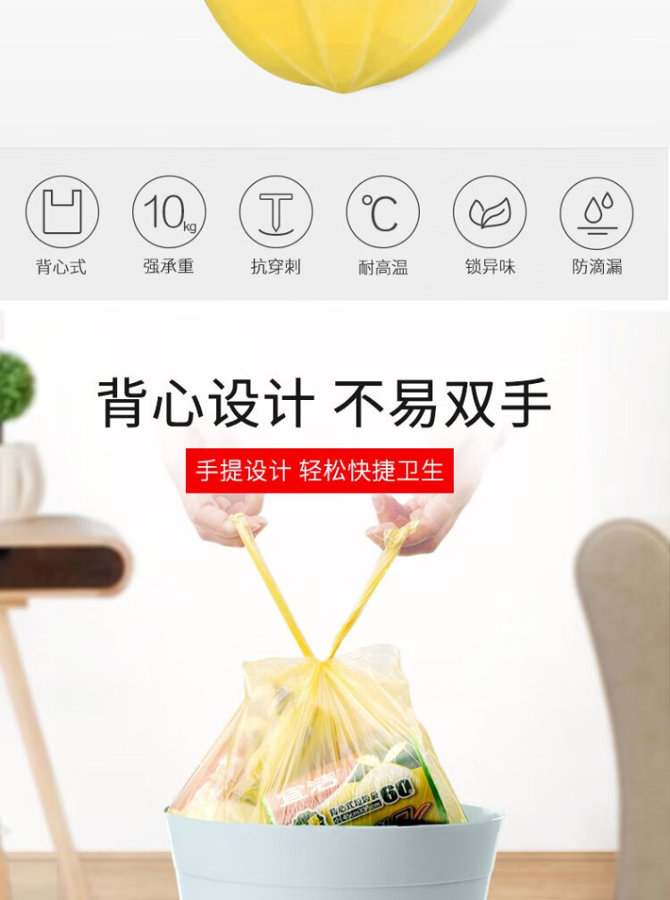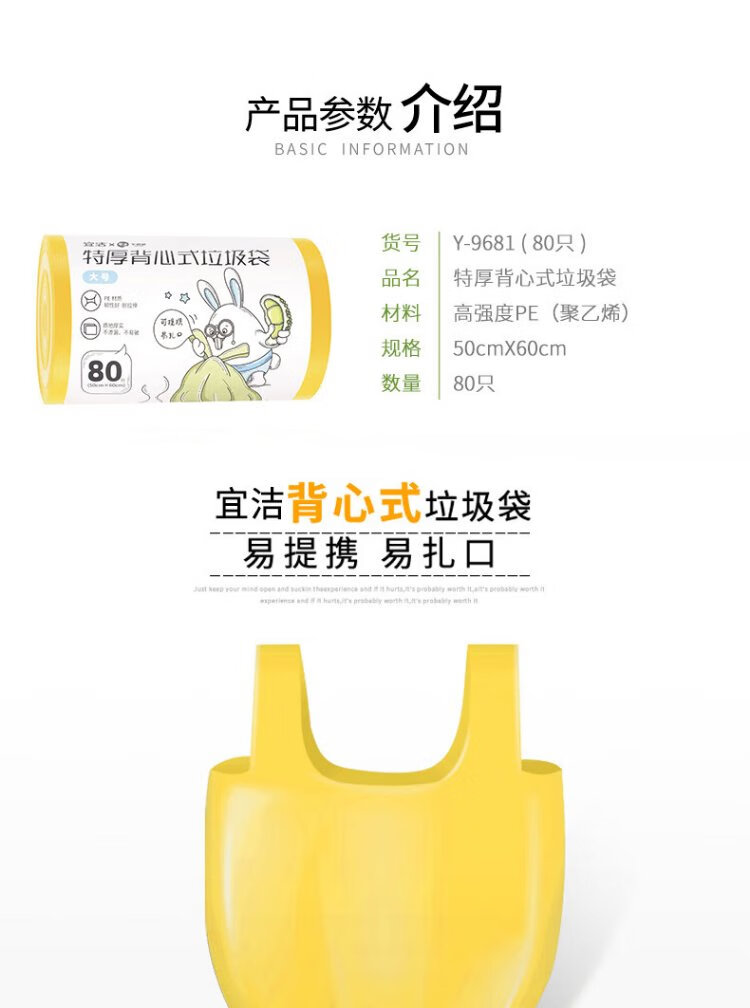 Yekee vest garbage bag yellow 50*60cm 80 pieces 0.9 silk household kitchen waste office point-breaking garbage bag Y-9681