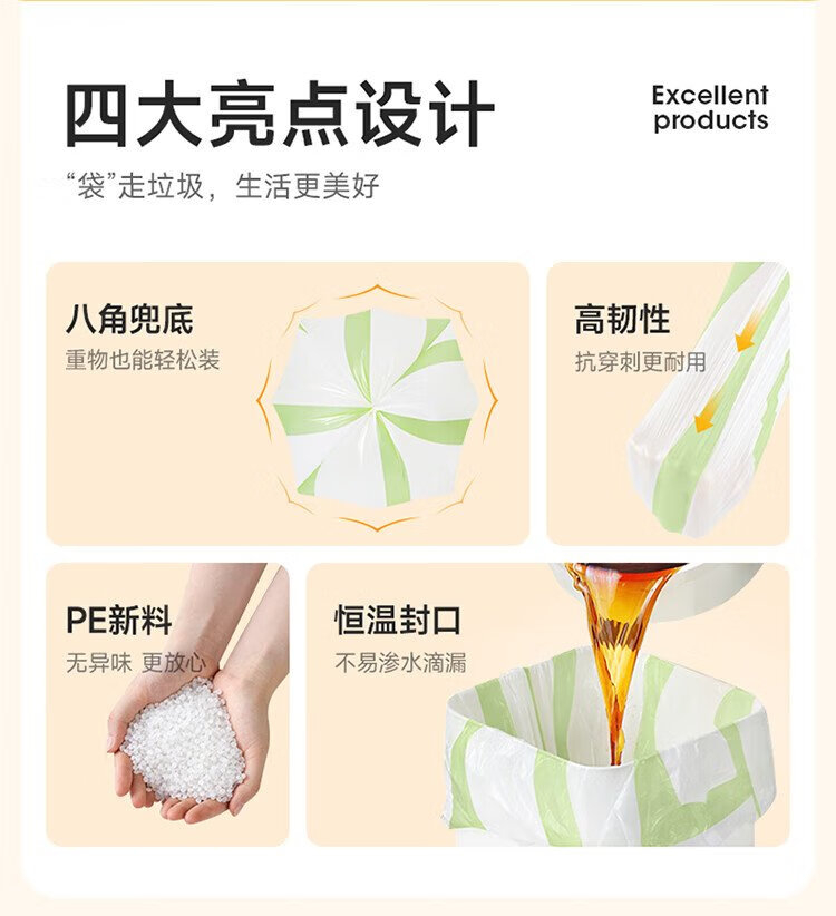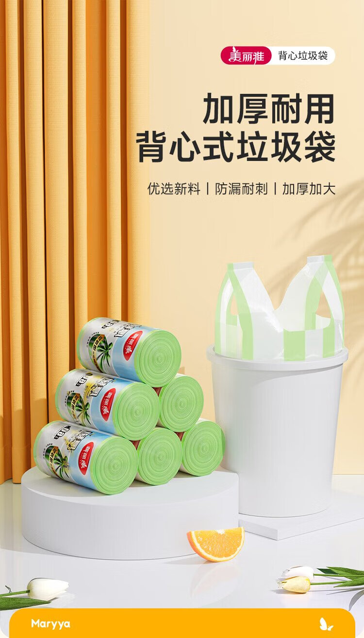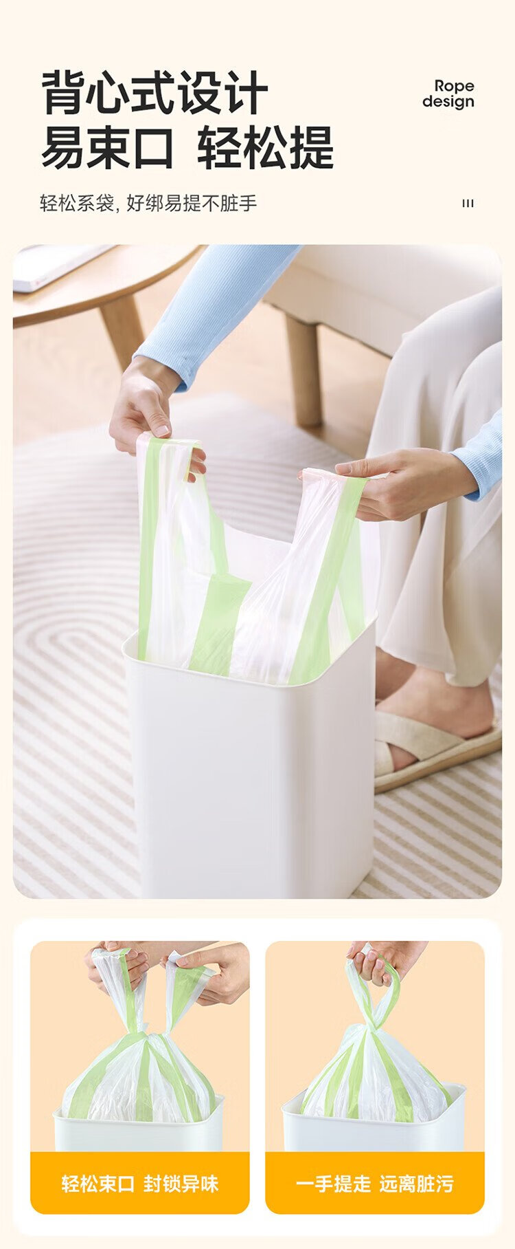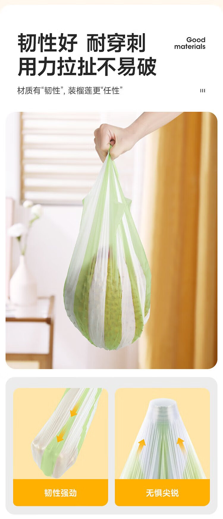 Meliya vest garbage bag green and white striped 45*55cm 60 pieces 1 wire point break household kitchen portable plastic bag