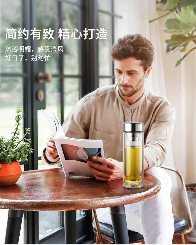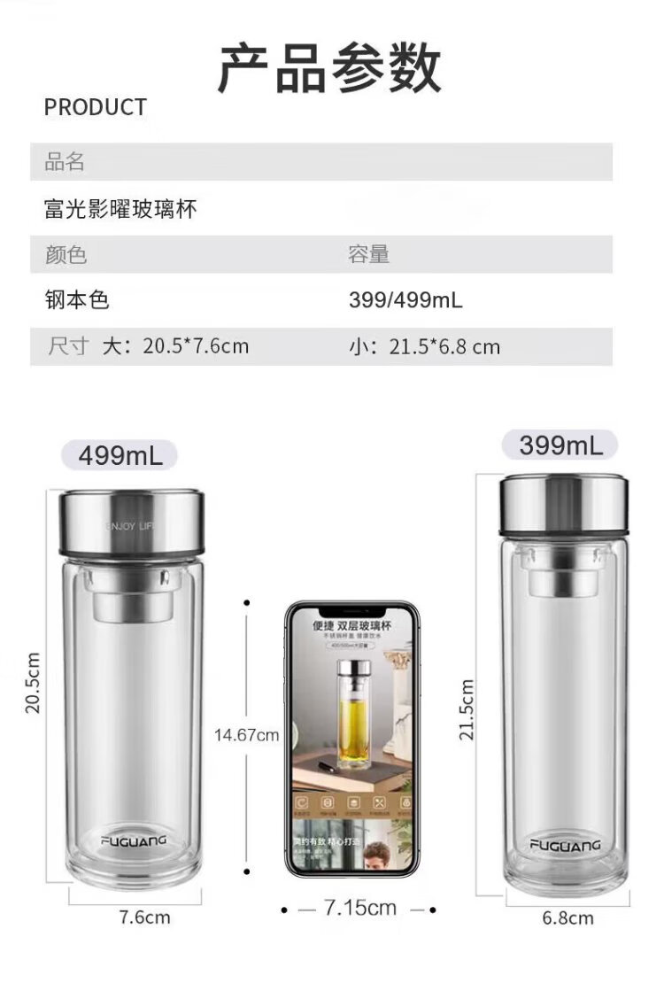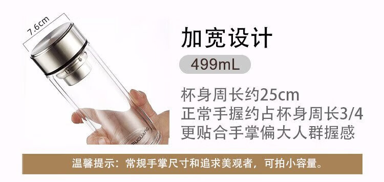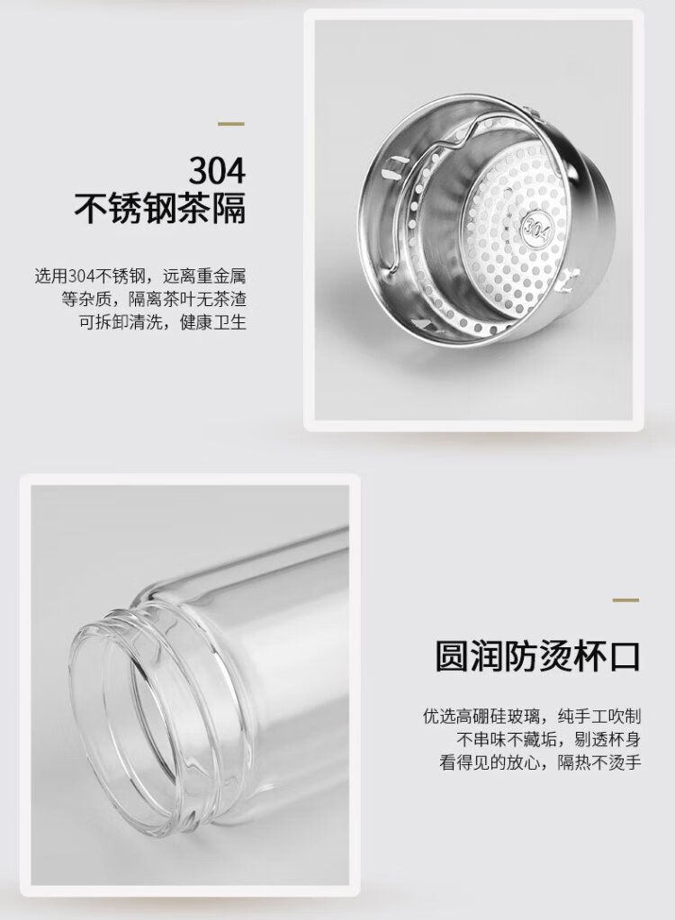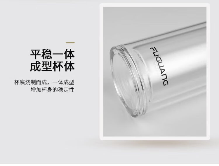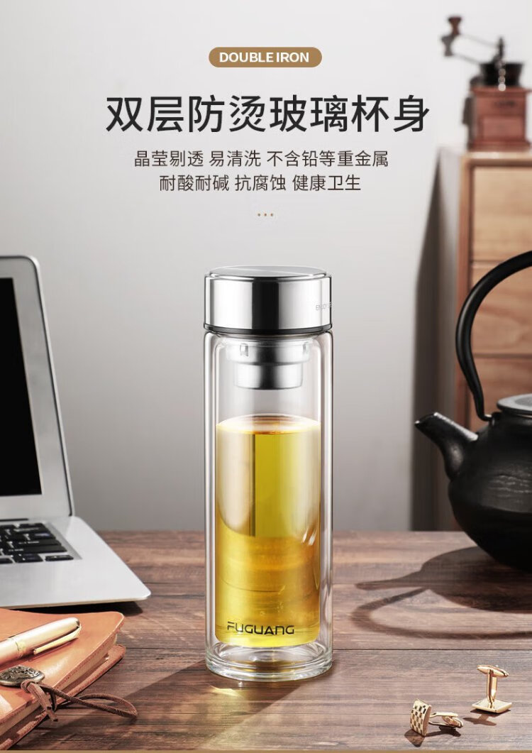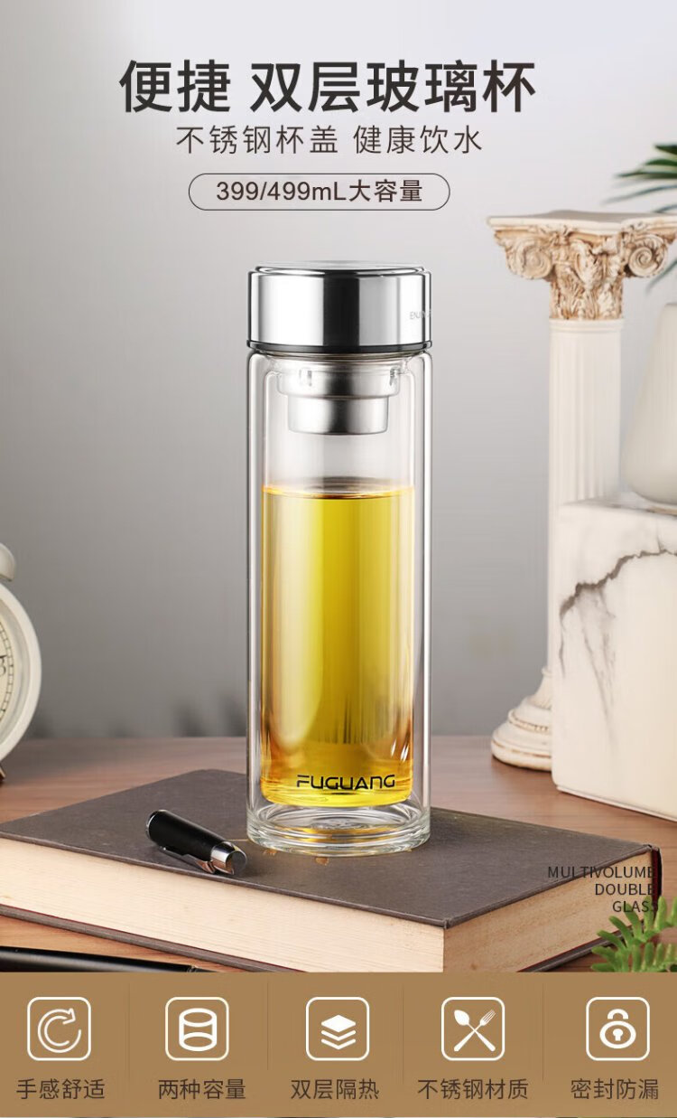 Fuguang glass double-layered large-capacity water cup with tea partition, high-end business tea cup, high borosilicate cup 500ml