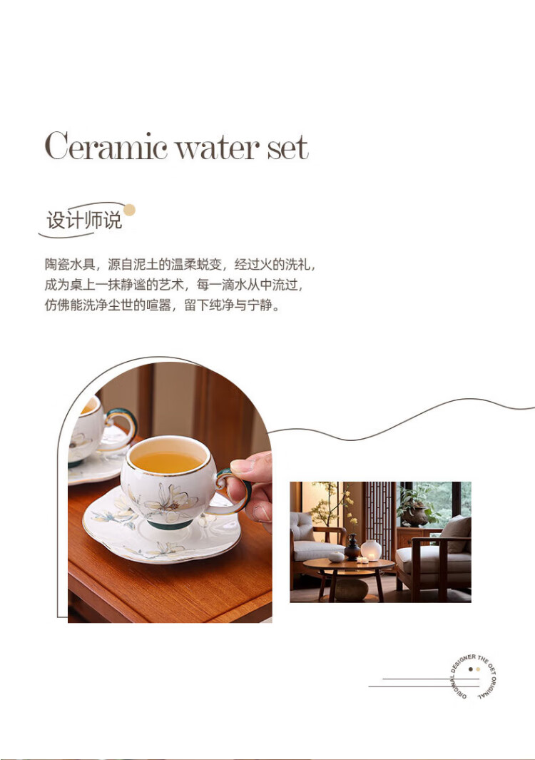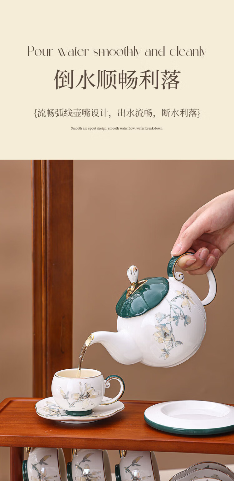 Zhengye new Chinese style ceramic water set high-end living room teapot teacup tea set complete set housewarming moving gift