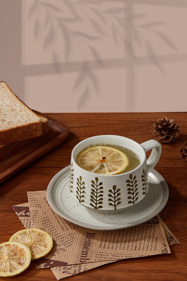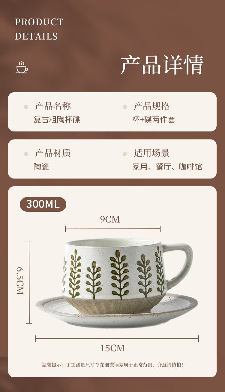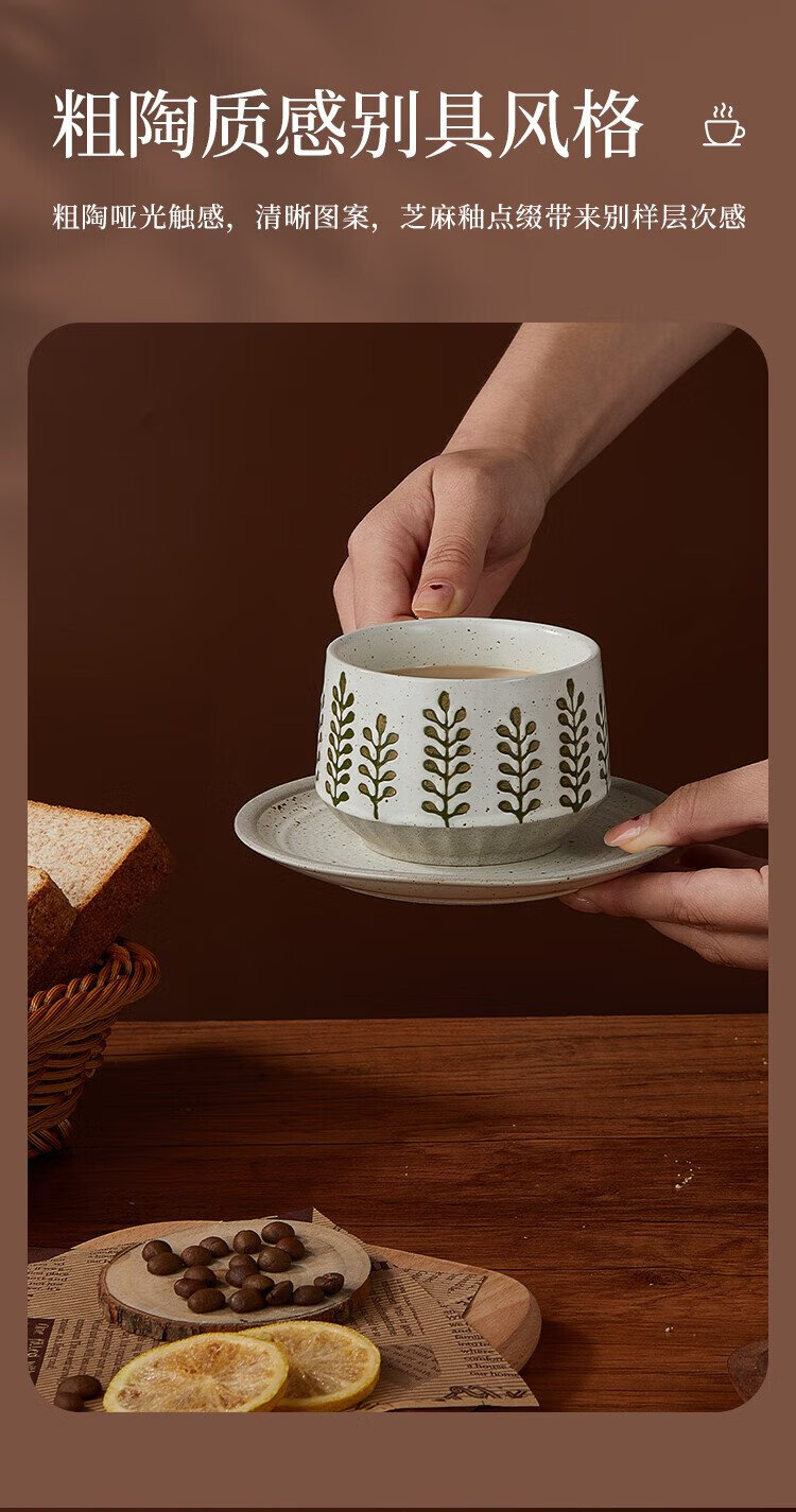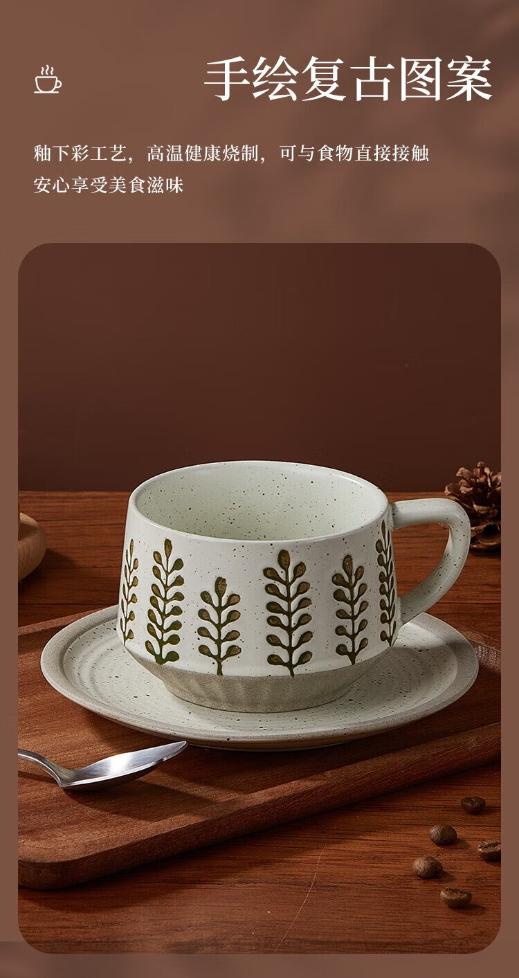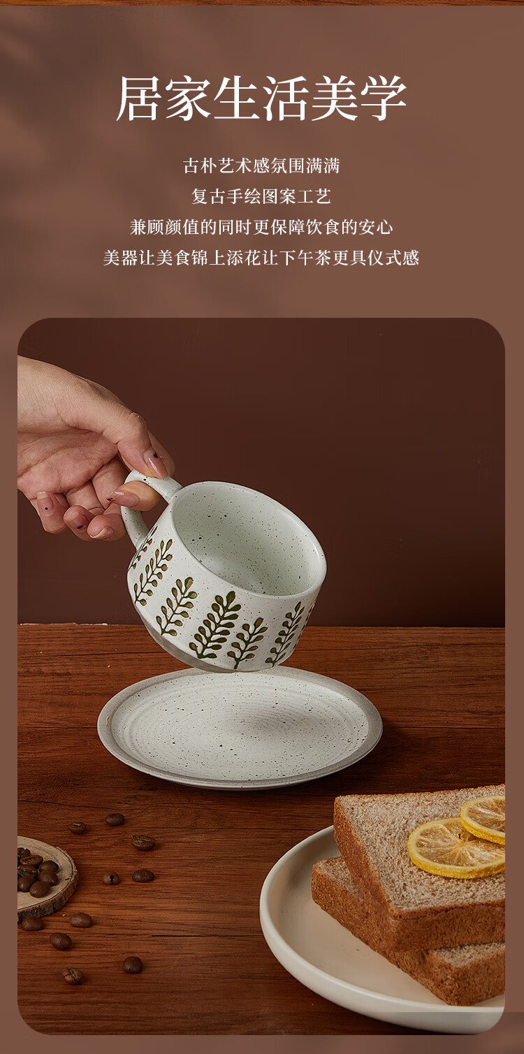 Feiyu Flower Series Retro Leaf Coffee Cup and Saucer Set 300ml Practical and Exquisite Birthday Gift for Men and Women