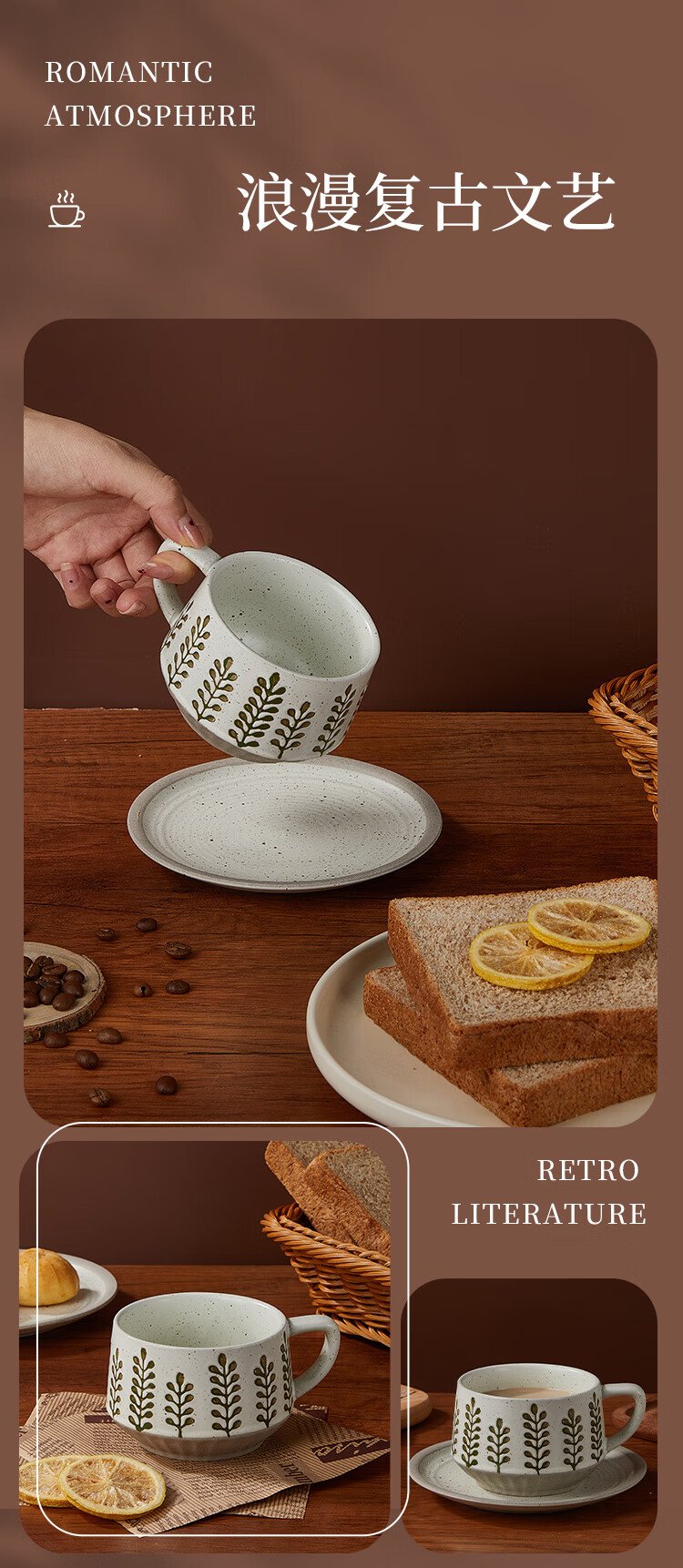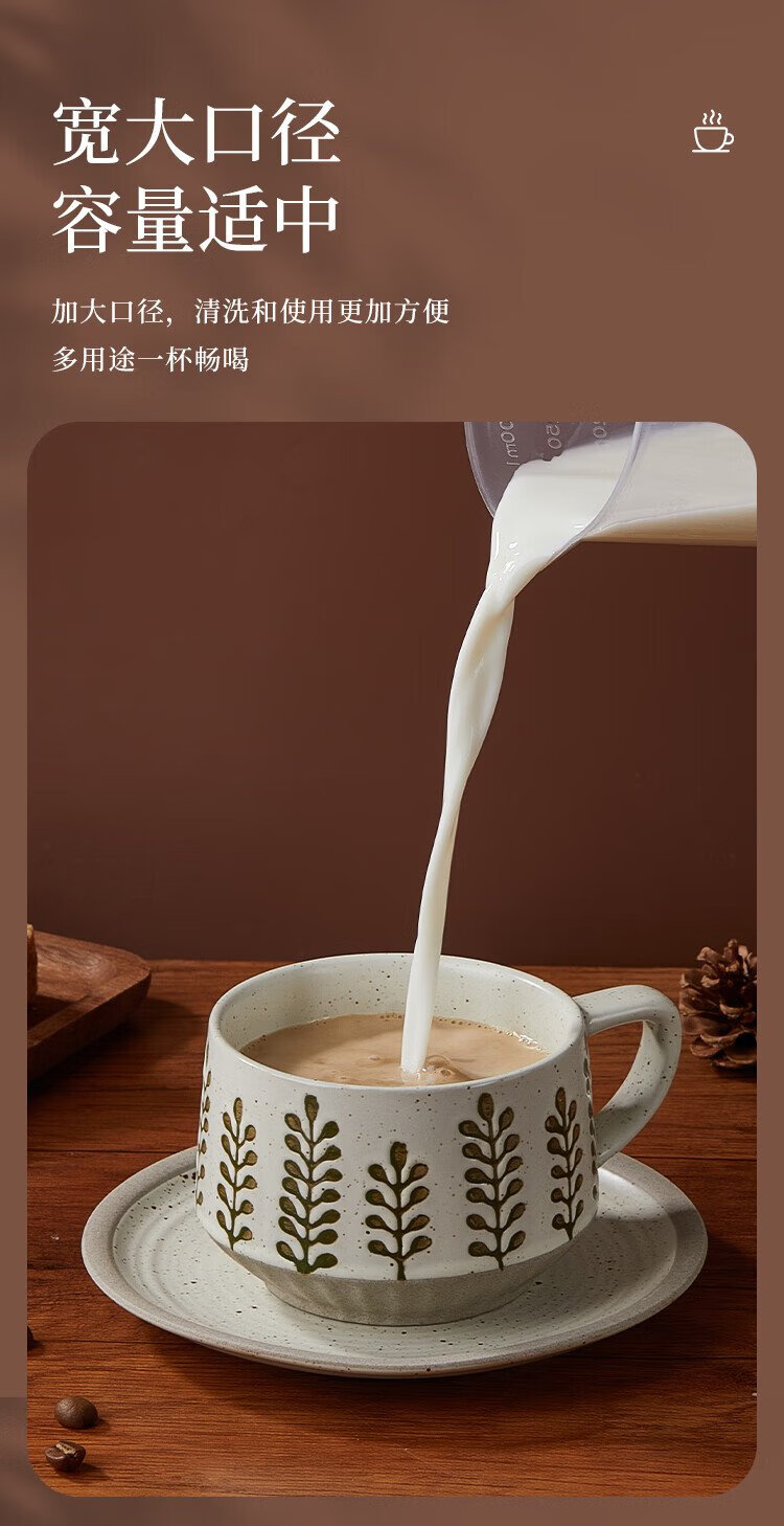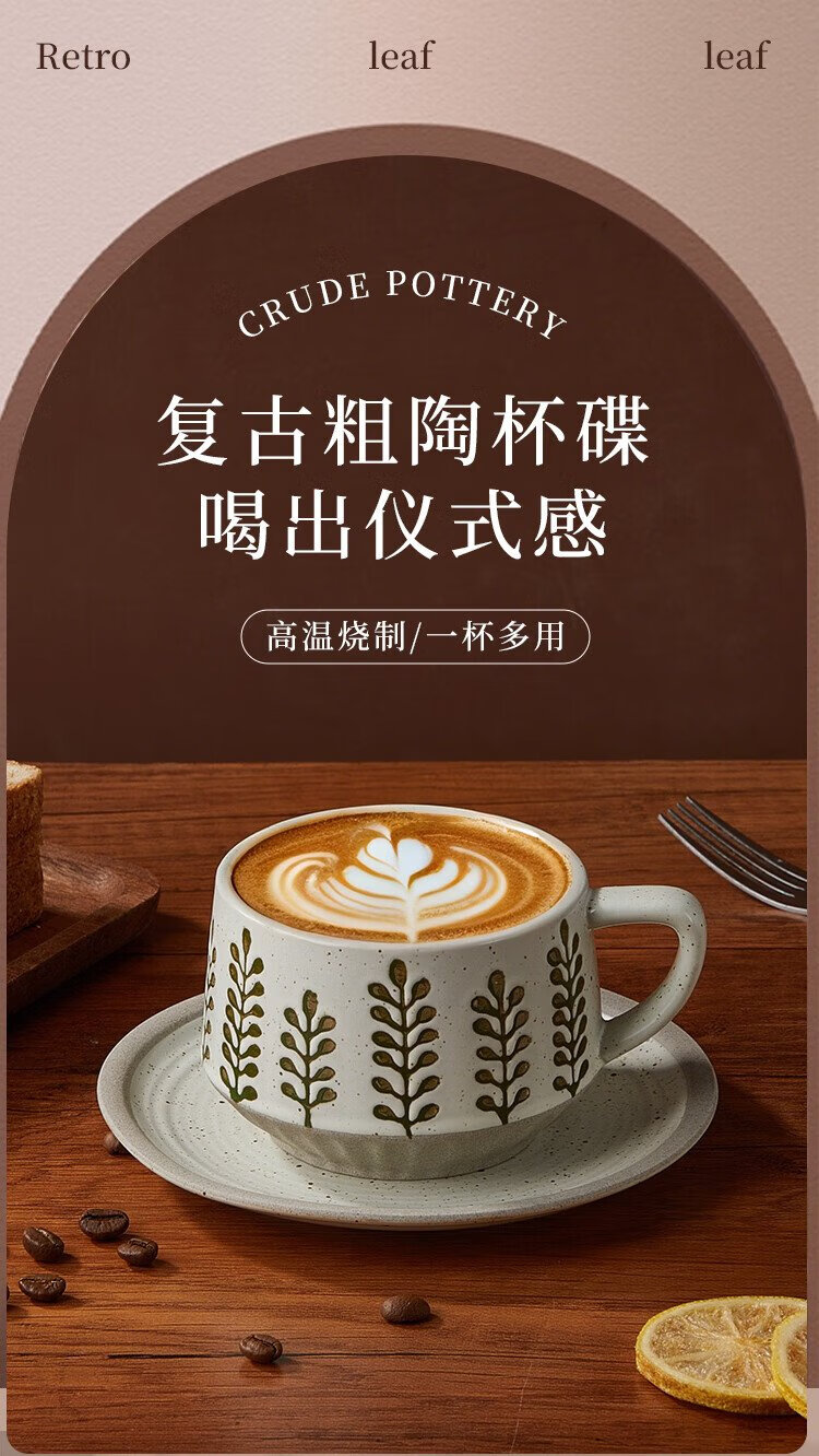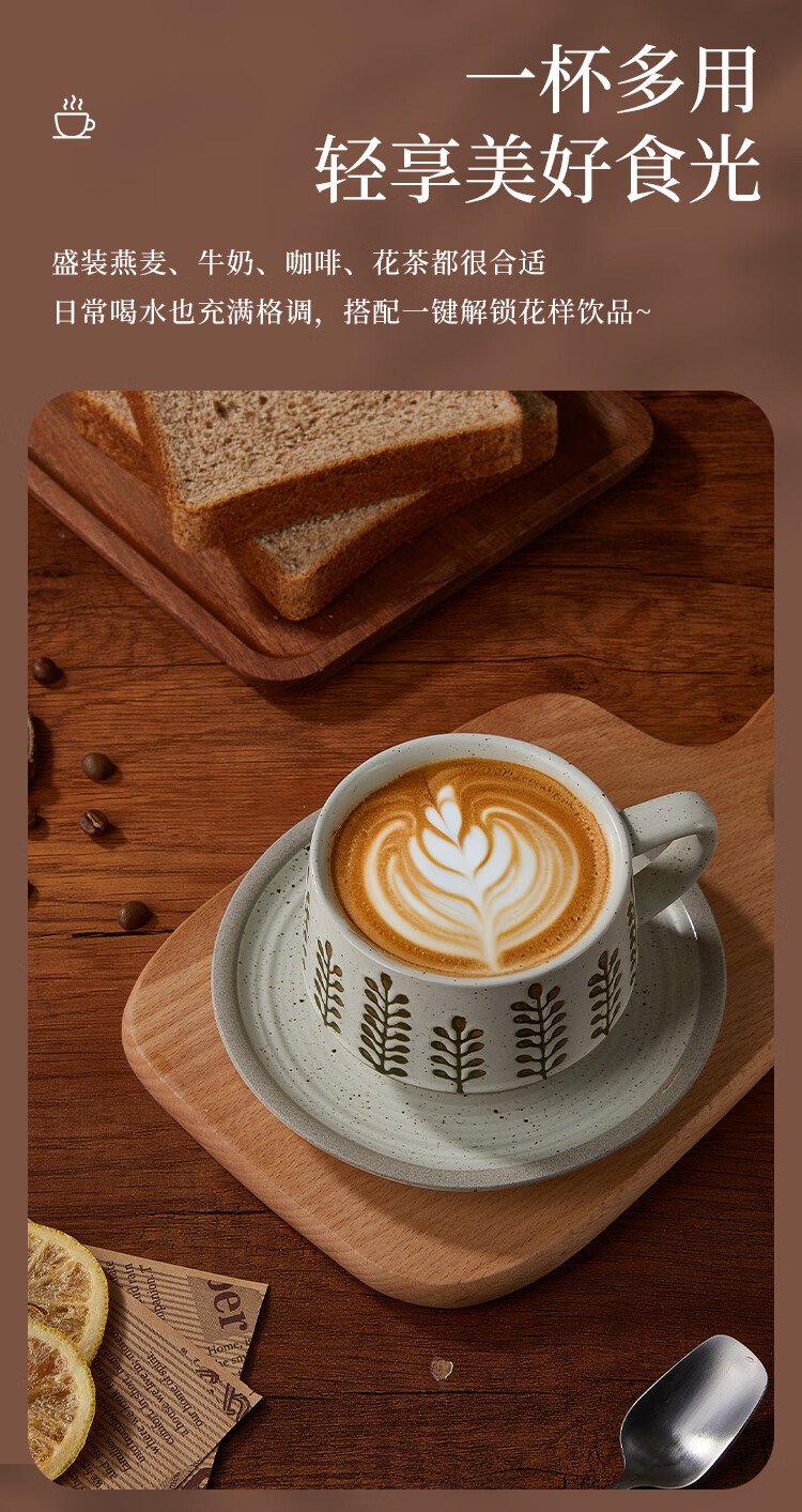 Feiyu Flower Series Retro Leaf Coffee Cup and Saucer Set 300ml Practical and Exquisite Birthday Gift for Men and Women