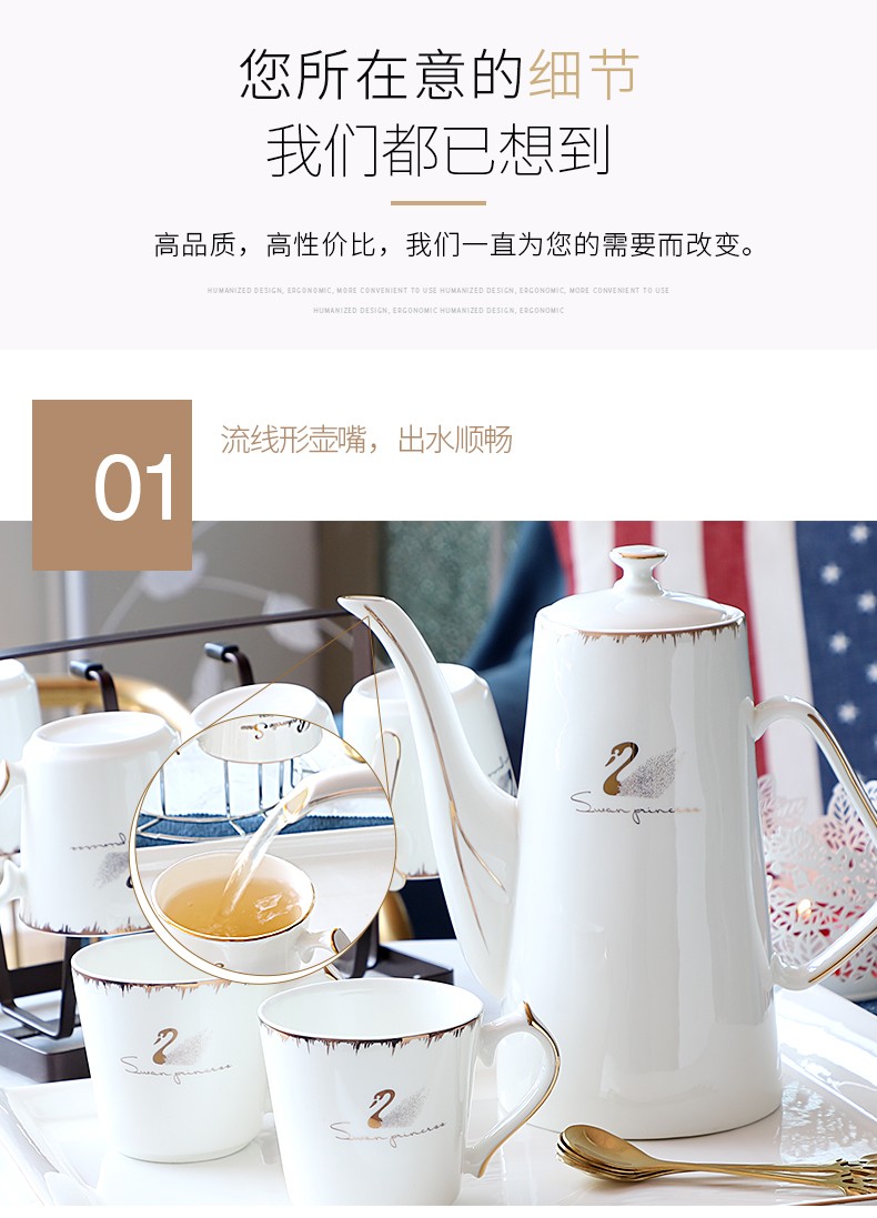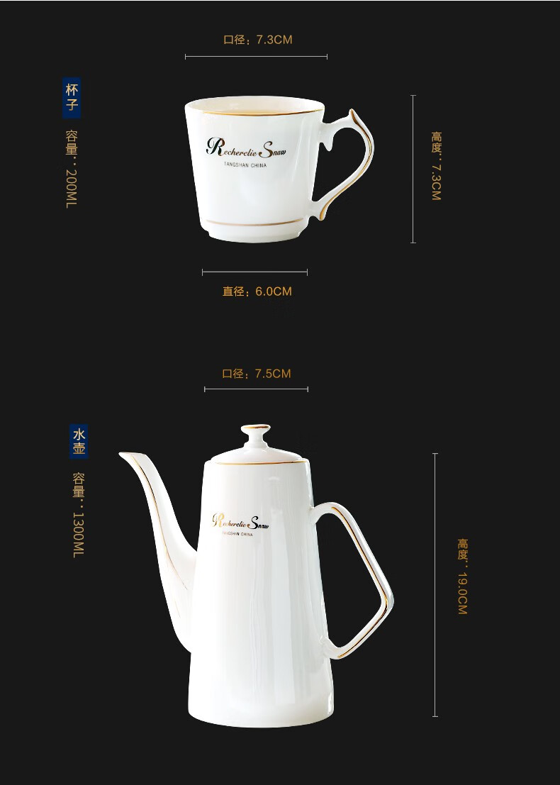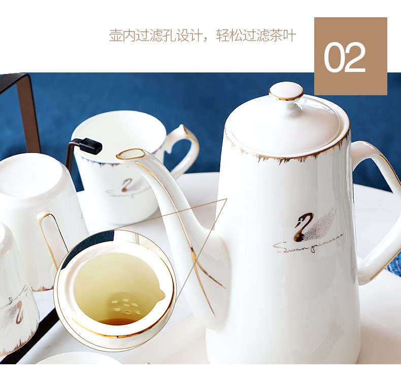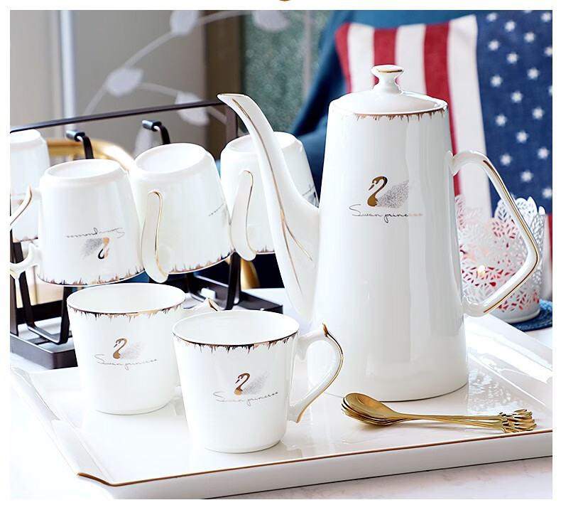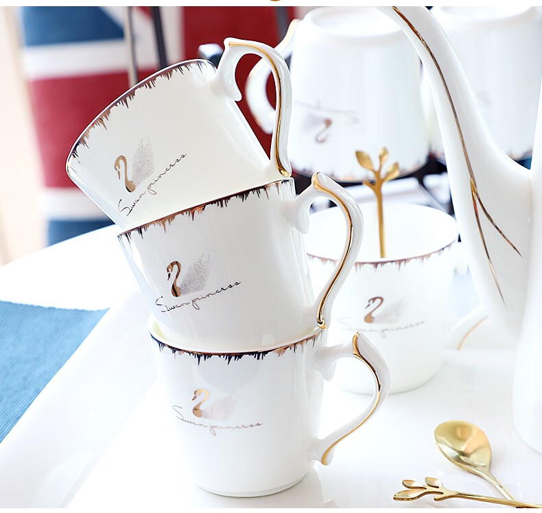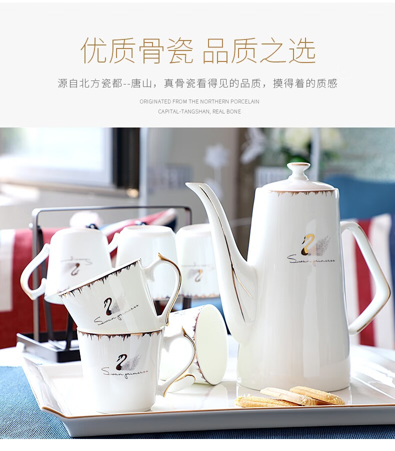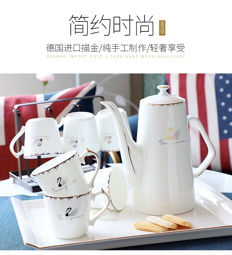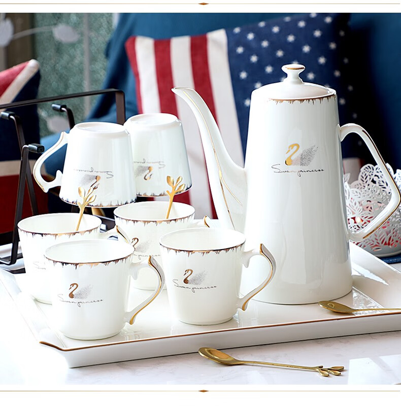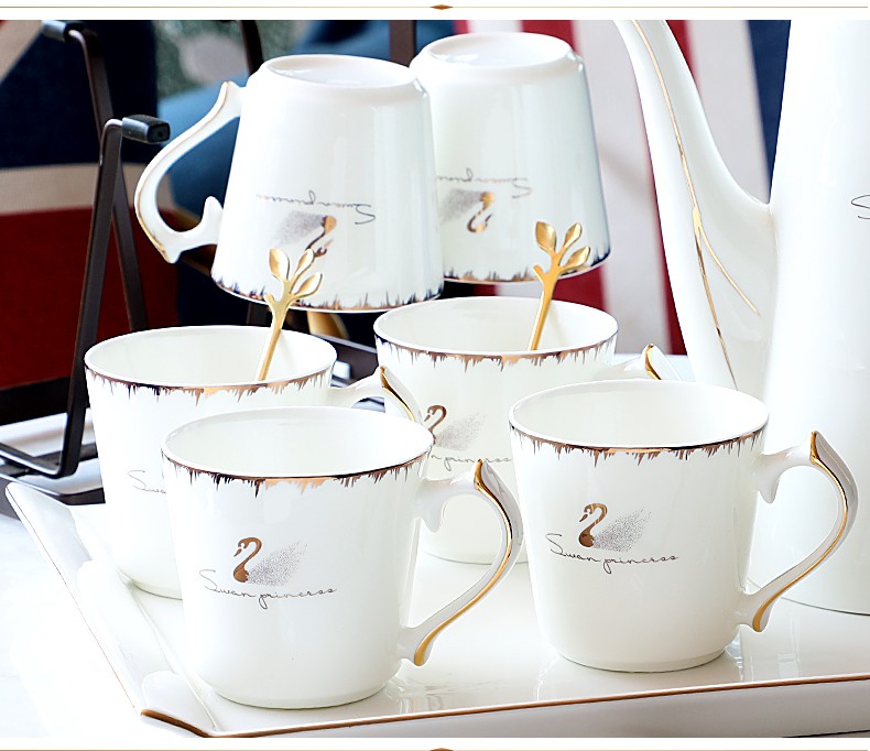 Pinlaiyun home water cup set ceramic simple living room drinking set cup Nordic water set family bone china tea cup light luxury cup Rocky water set 9 pieces (6 cups 1 pot + tea tray shelf)