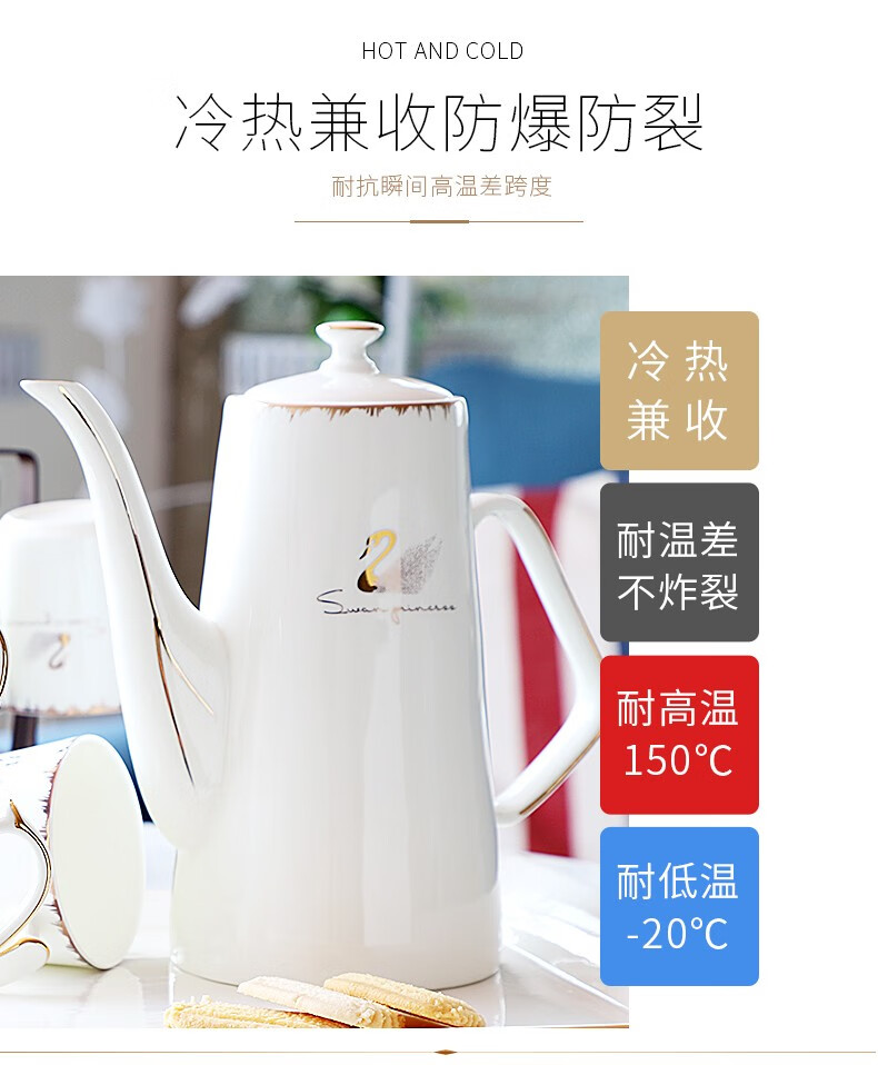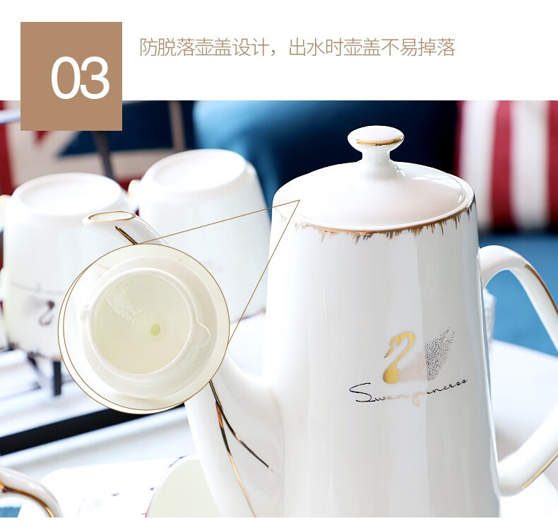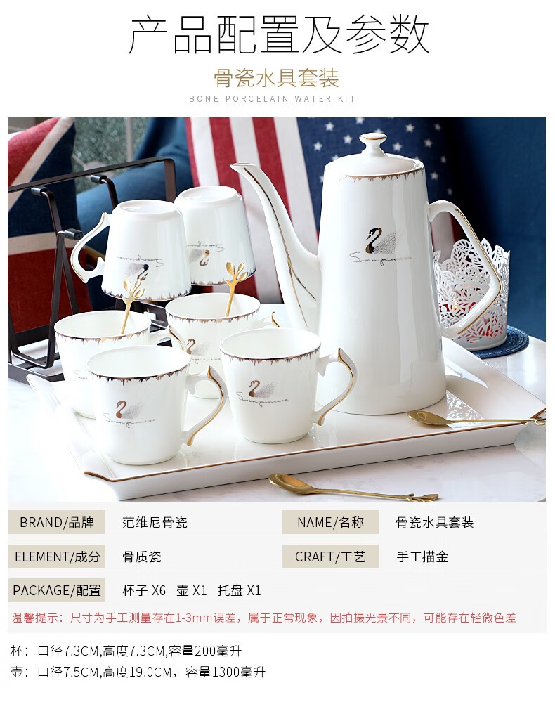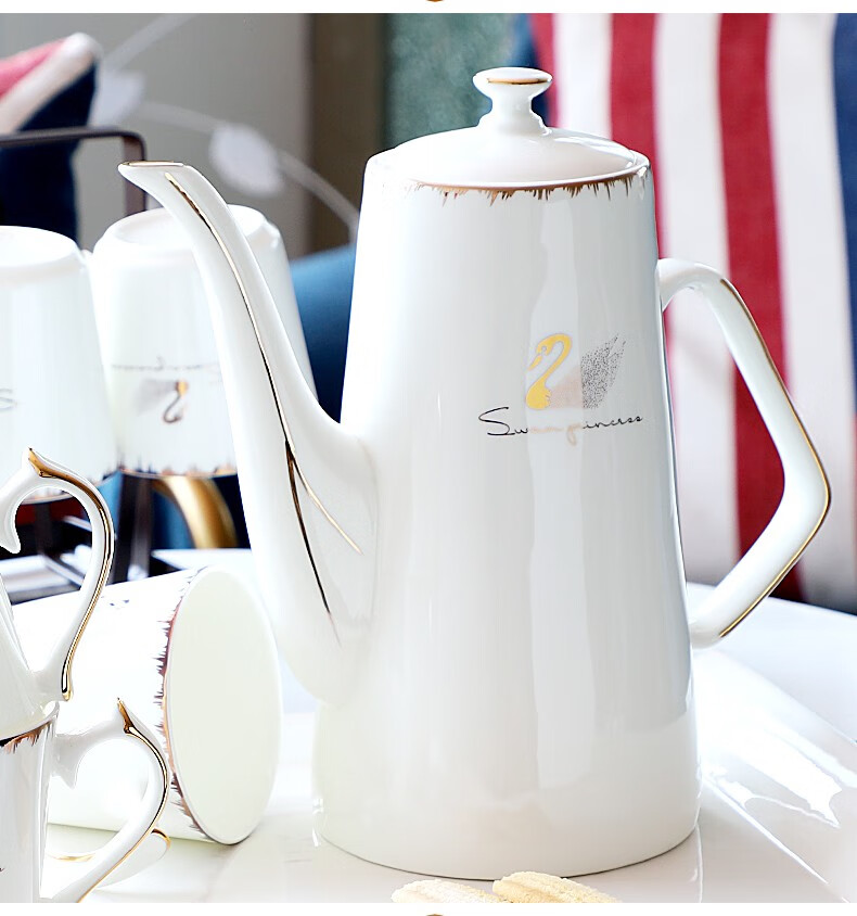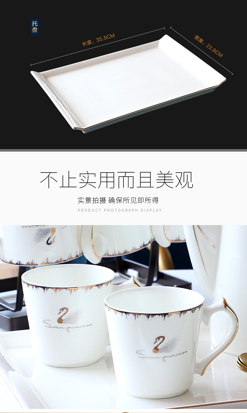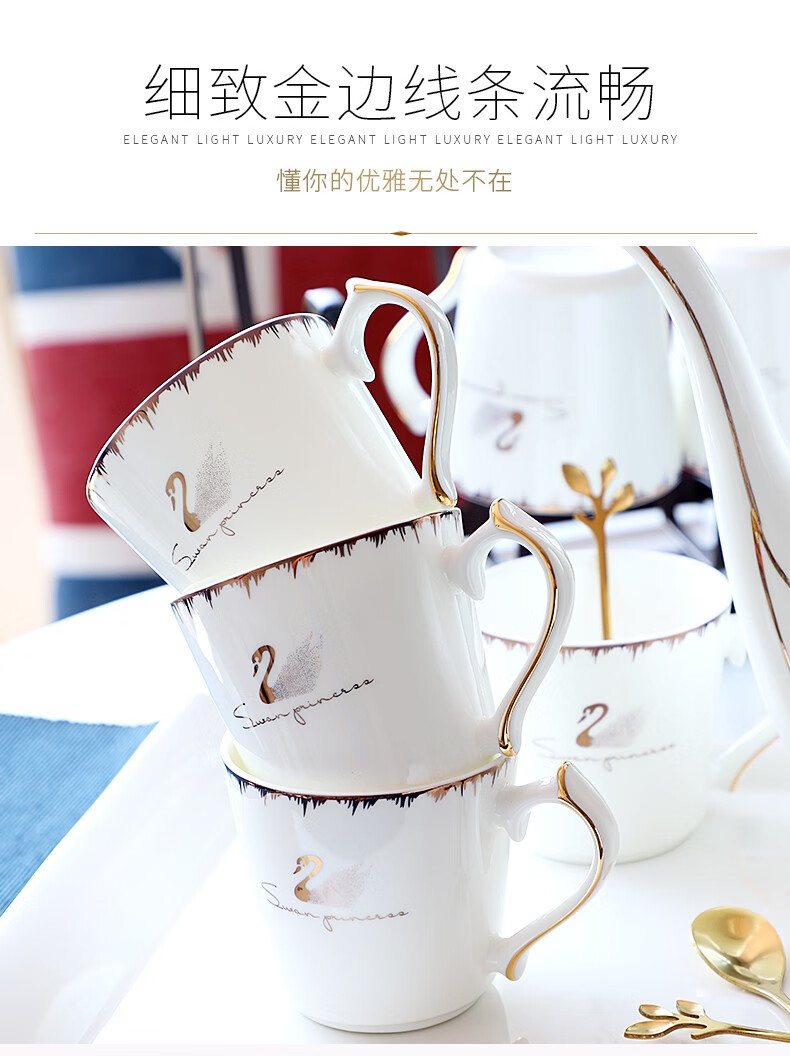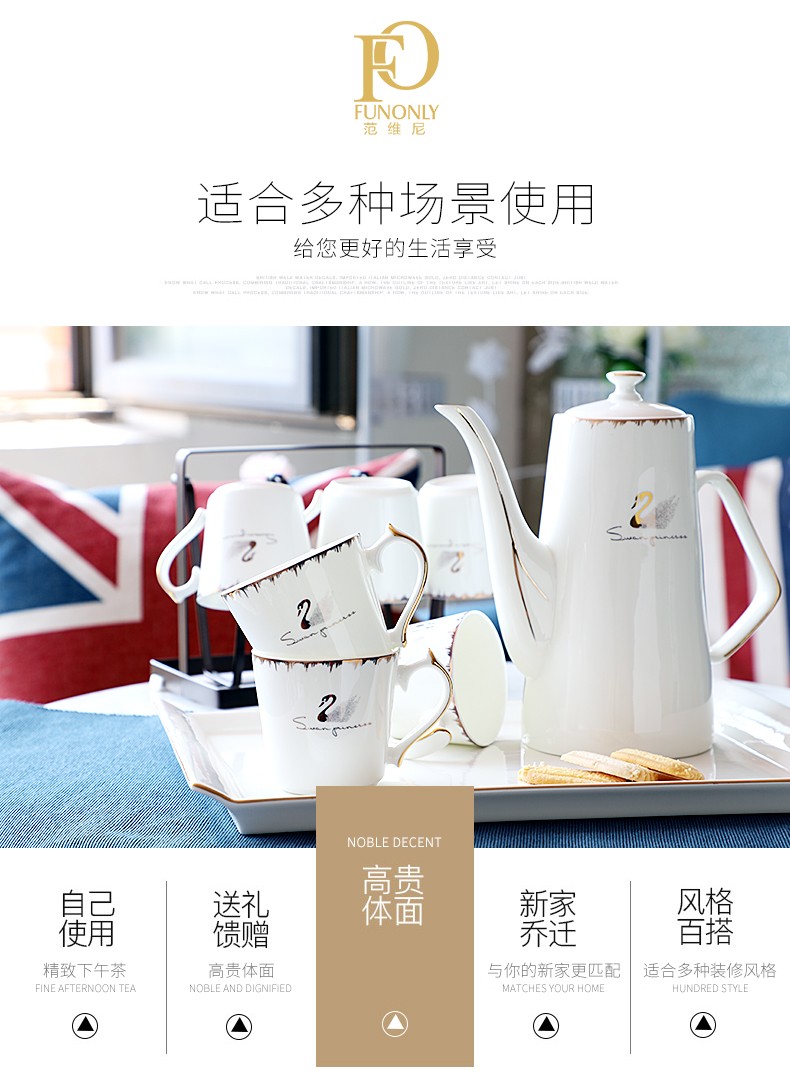 Pinlaiyun home water cup set ceramic simple living room drinking set cup Nordic water set family bone china tea cup light luxury cup Rocky water set 9 pieces (6 cups 1 pot + tea tray shelf)