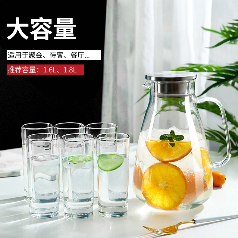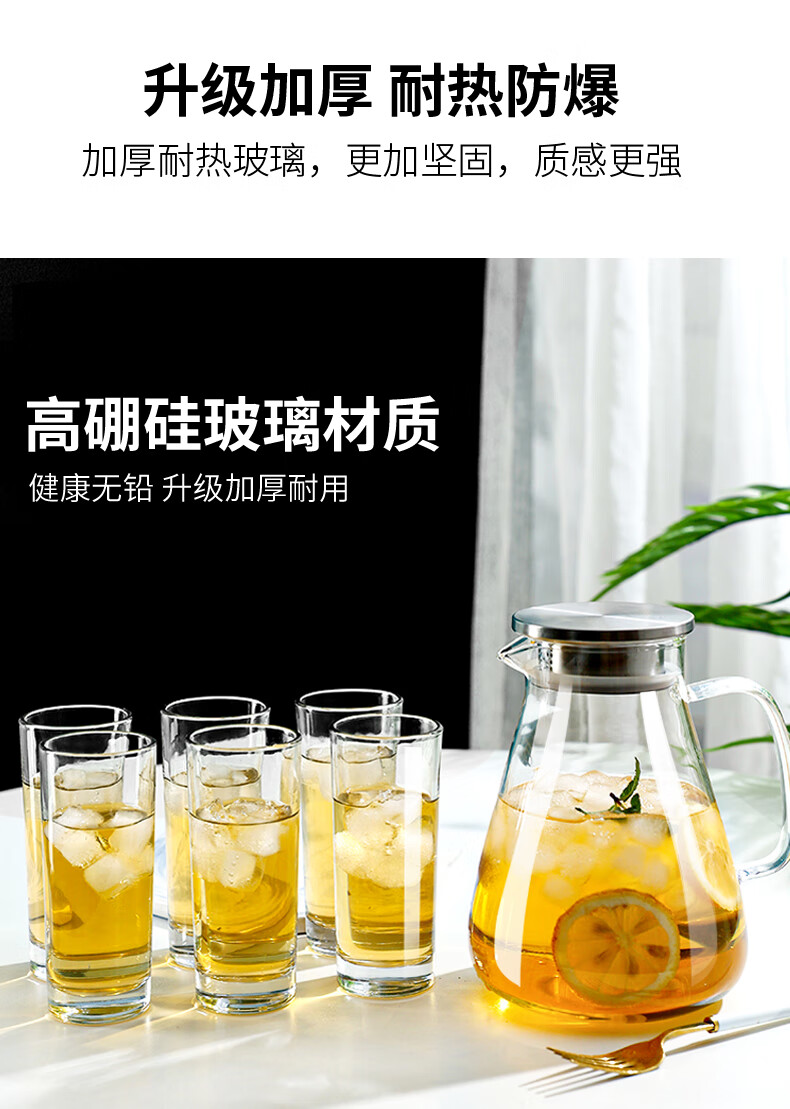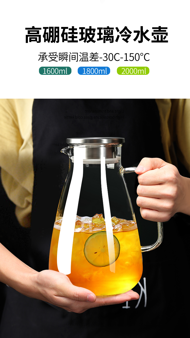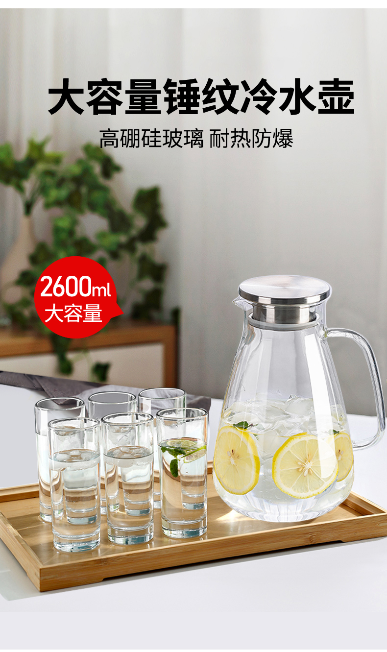 VTyee glass cold water kettle household high-temperature-resistant cold water cup heat-resistant and explosion-proof large-capacity cool white teapot set single-dudu pot 2600ML No Specifications