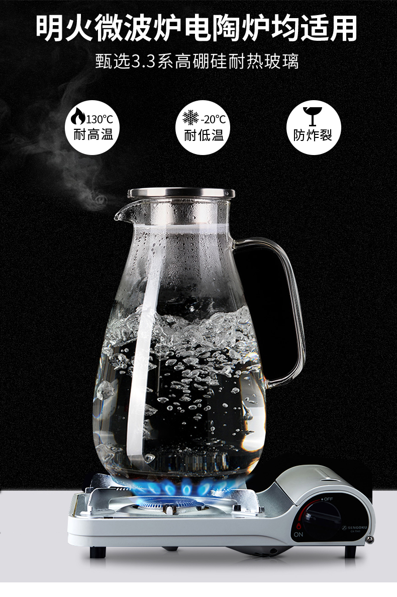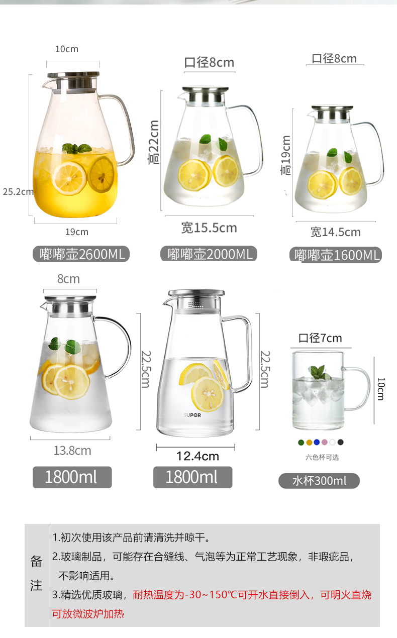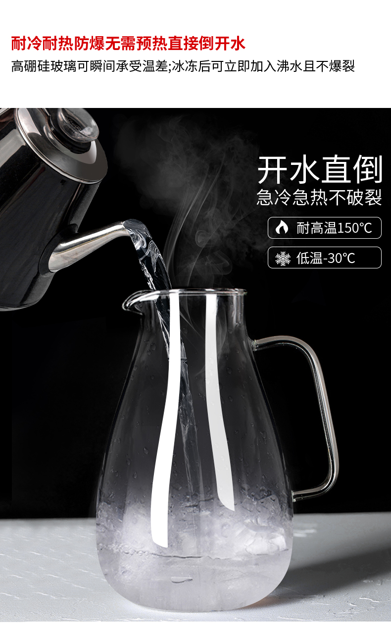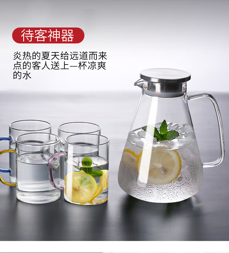VTyee glass cold water kettle household high-temperature-resistant cold water cup heat-resistant and explosion-proof large-capacity cool white teapot set single-dudu pot 2600ML No Specifications