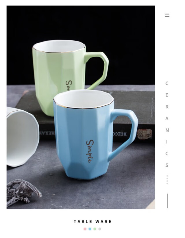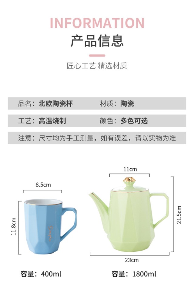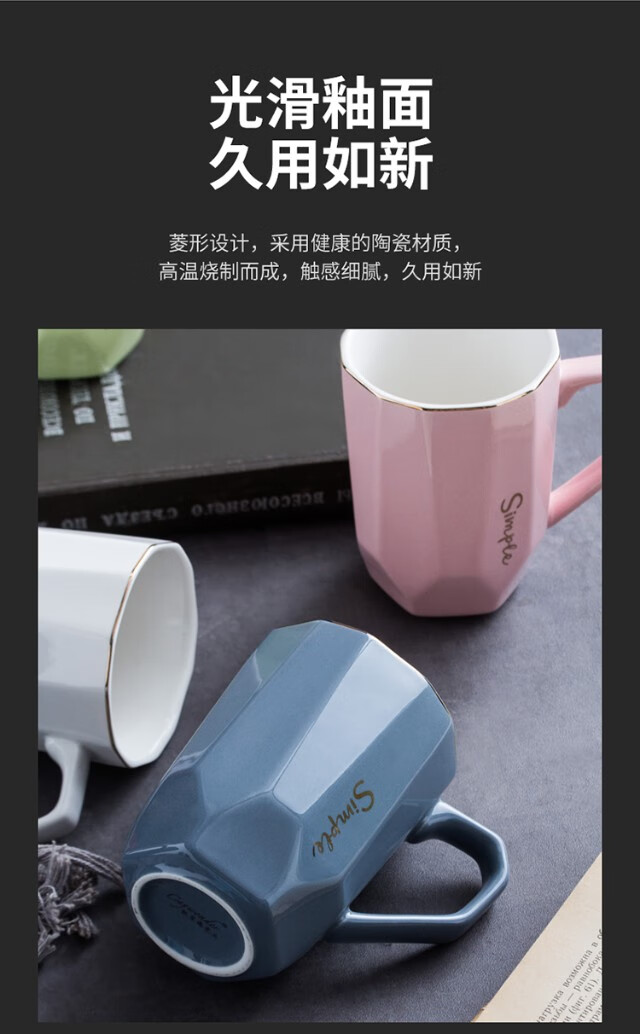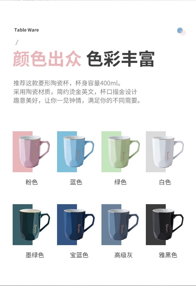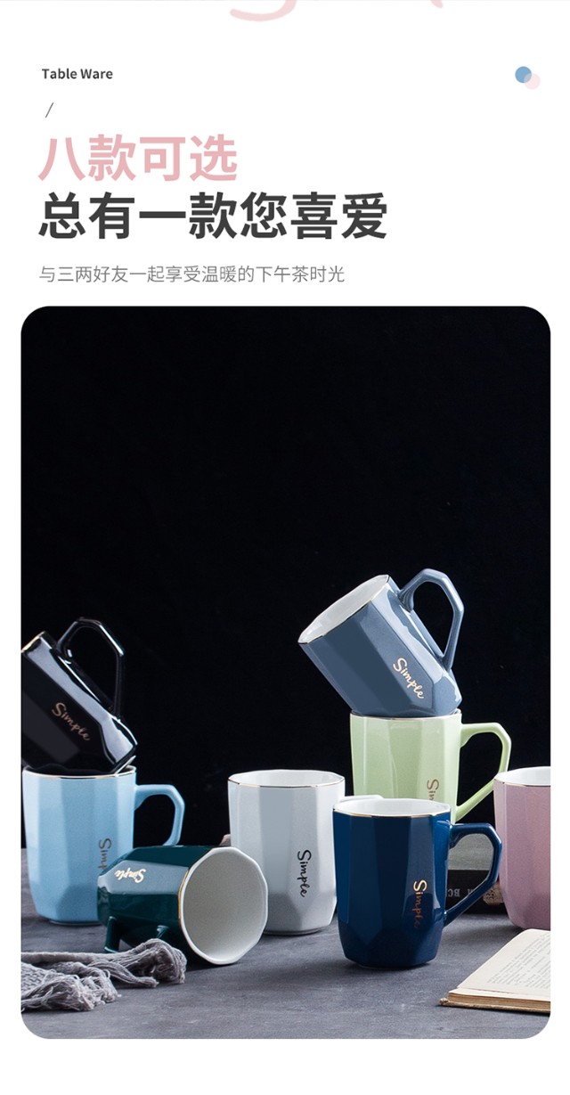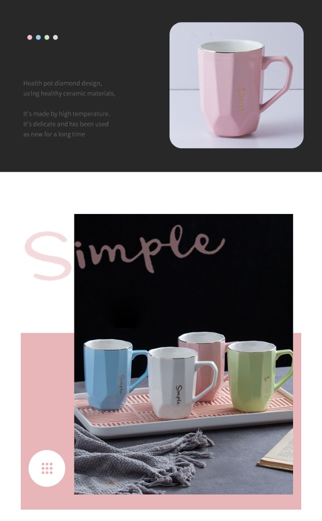 Guai ceramic mug set, simple home living room with tray, high-looking office mug, tea cup color distinction, 4 light-colored cups and plates, pink, blue, green and white