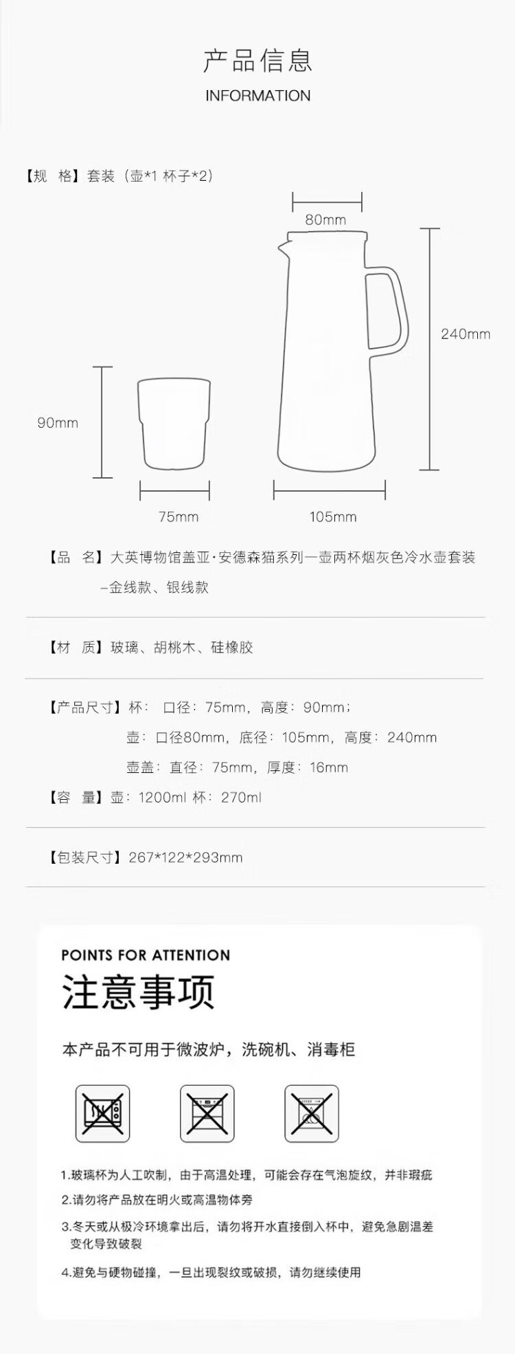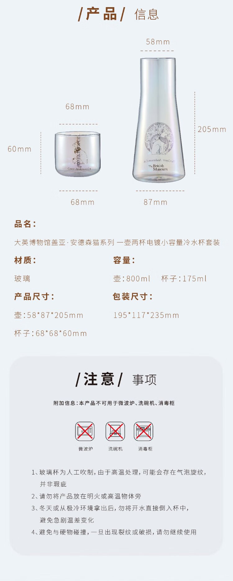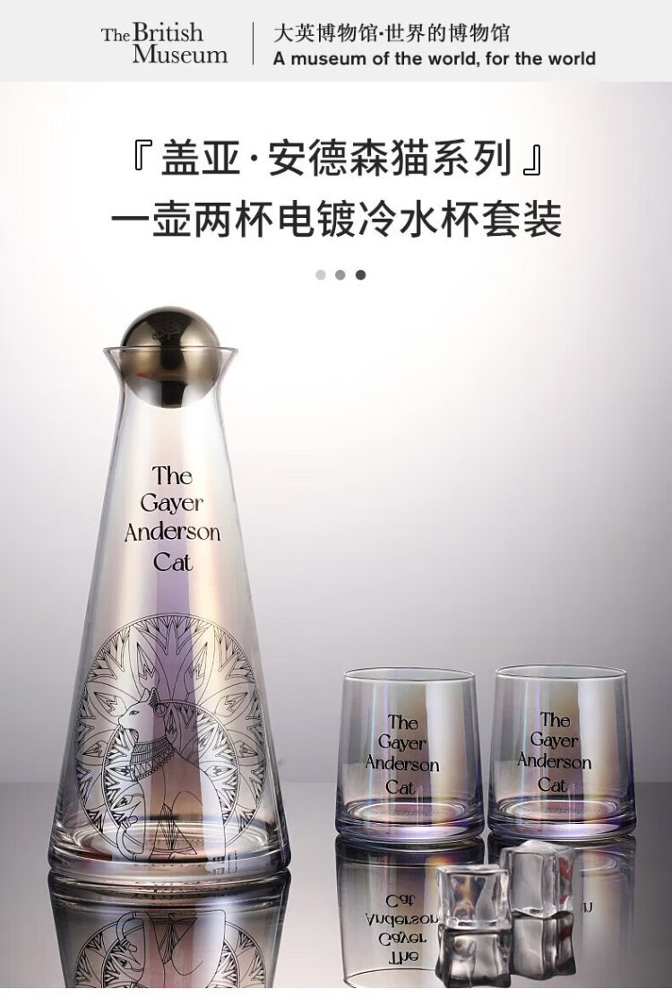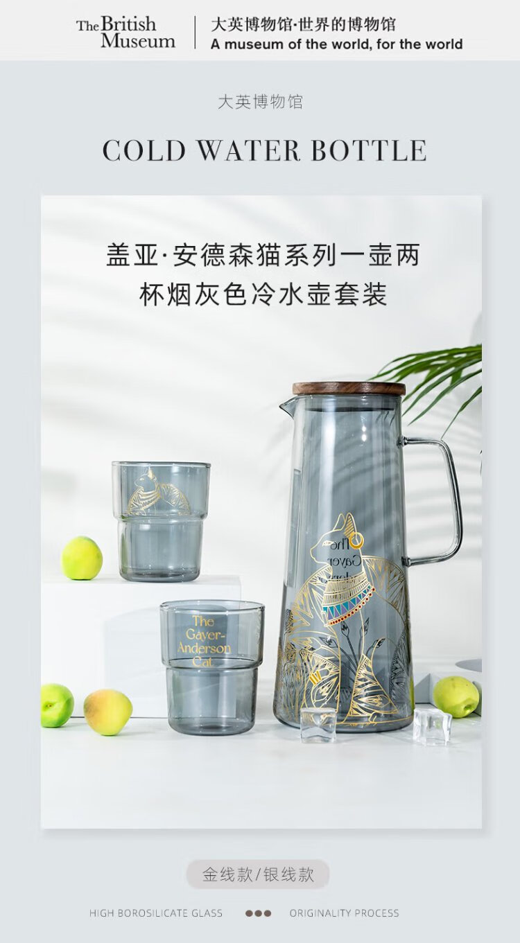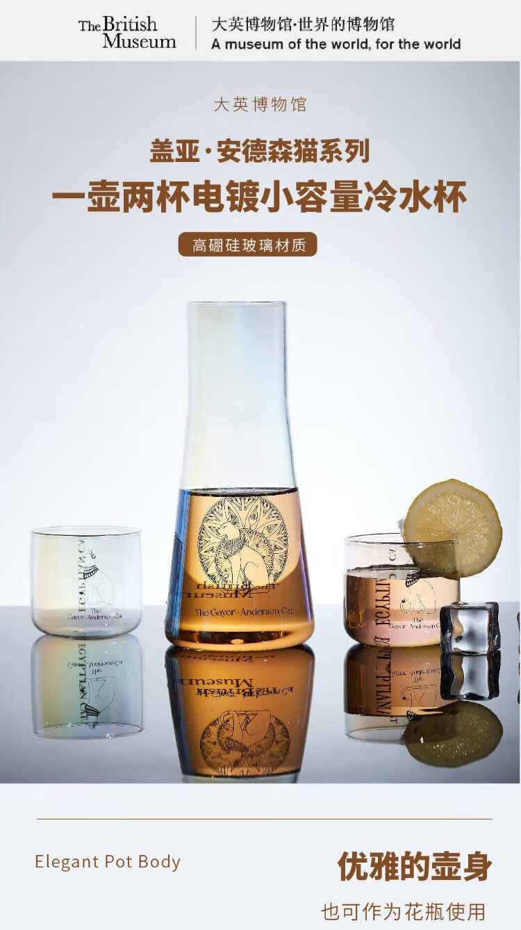 British Museum Cup Set Anderson Cat One Pot Two Cups Electroplated Cold Water Cups for Men and Women Birthday Gifts Birthday Gifts Electroplated Cold Water Cup Set