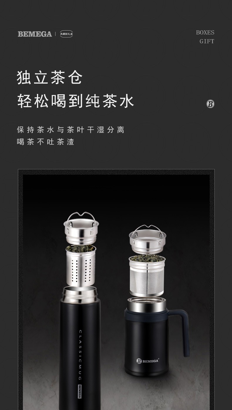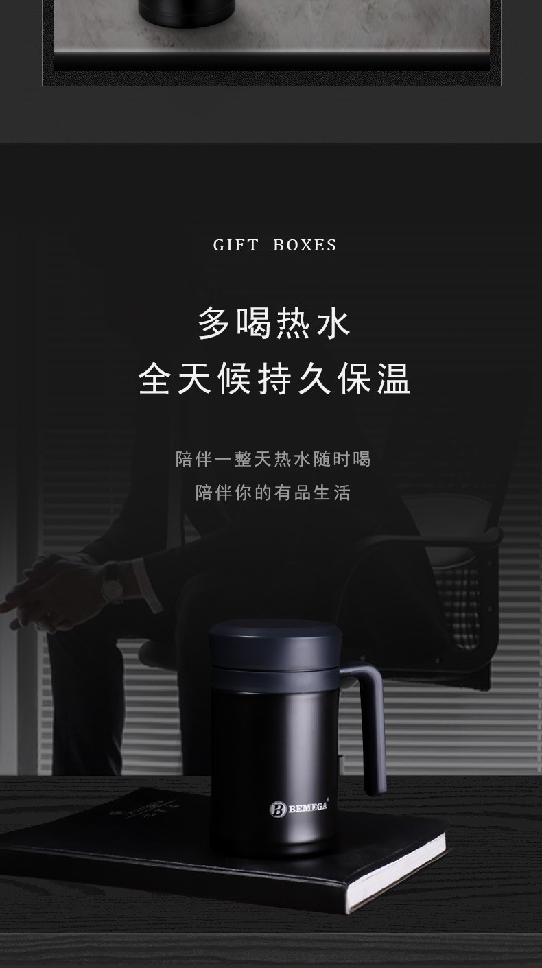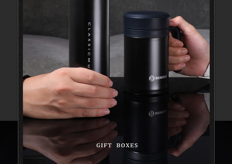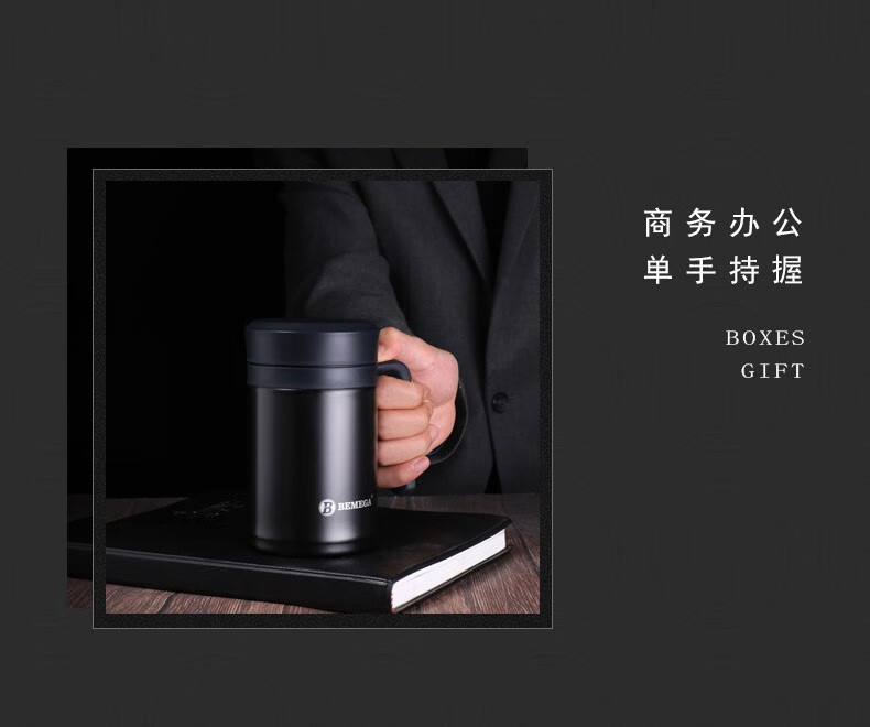 BEMEGA British thermos cup men's 316 stainless steel tea water separation tea cup custom birthday gift boxed gentleman black