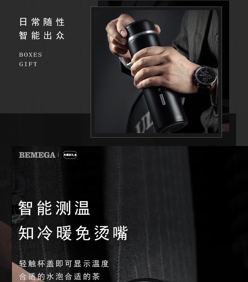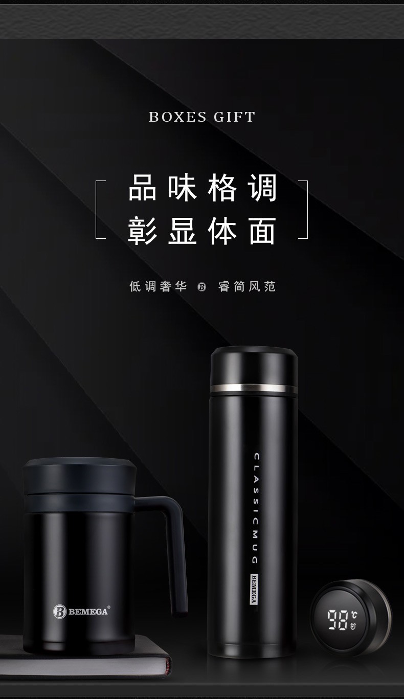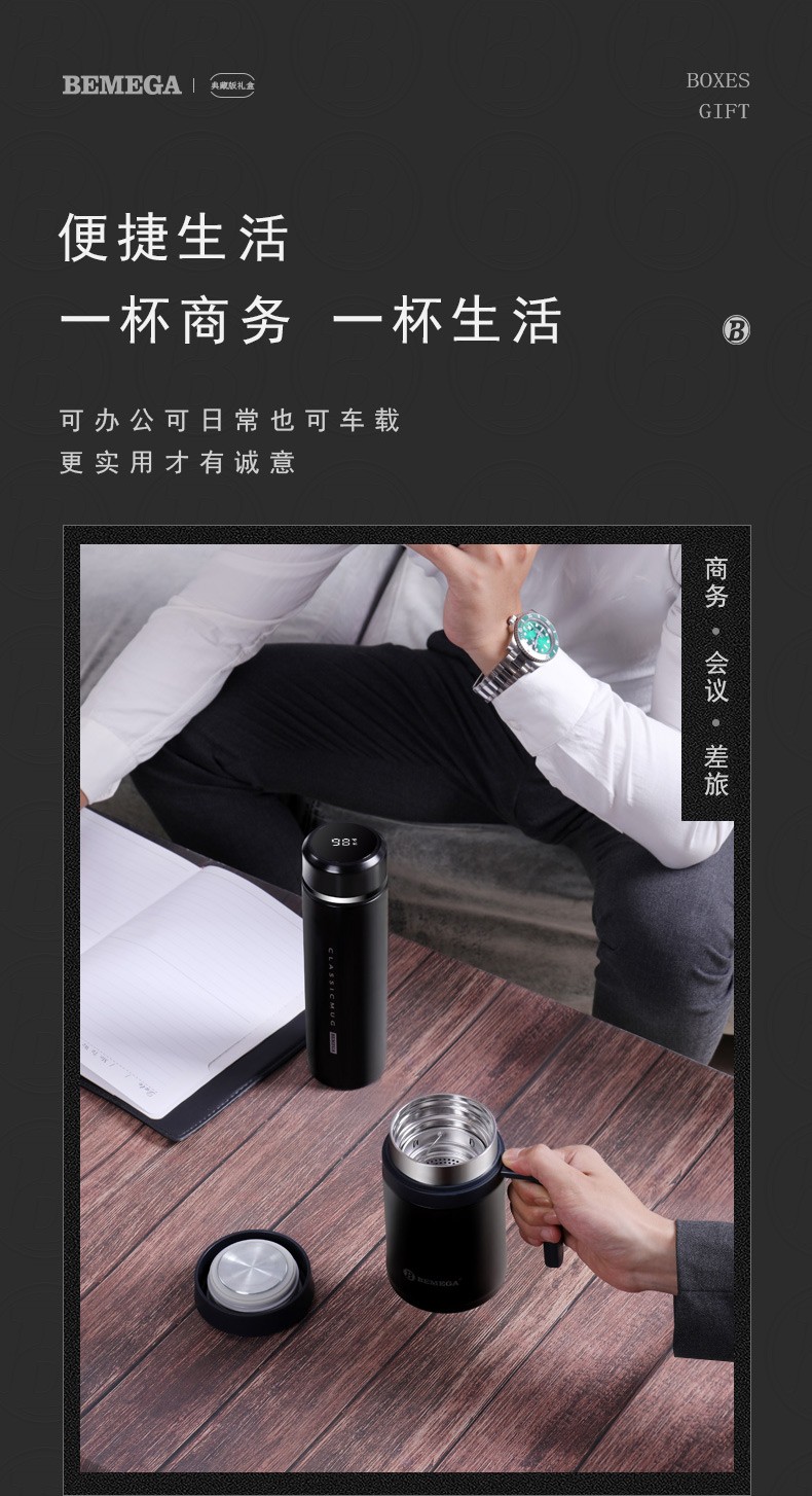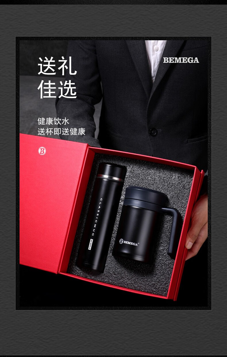 BEMEGA British thermos cup men's 316 stainless steel tea water separation tea cup custom birthday gift boxed gentleman black