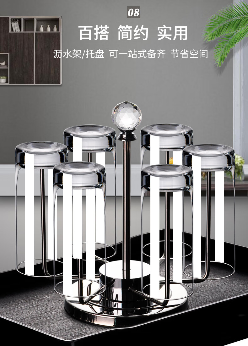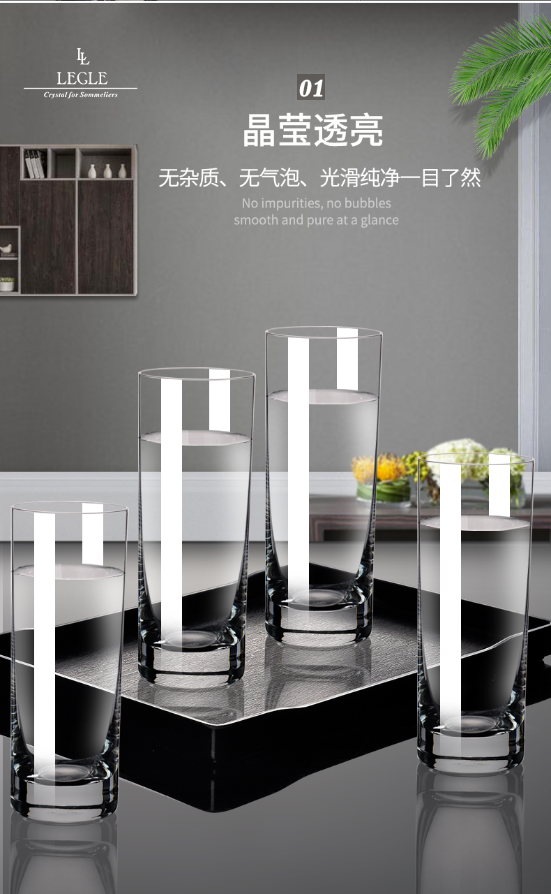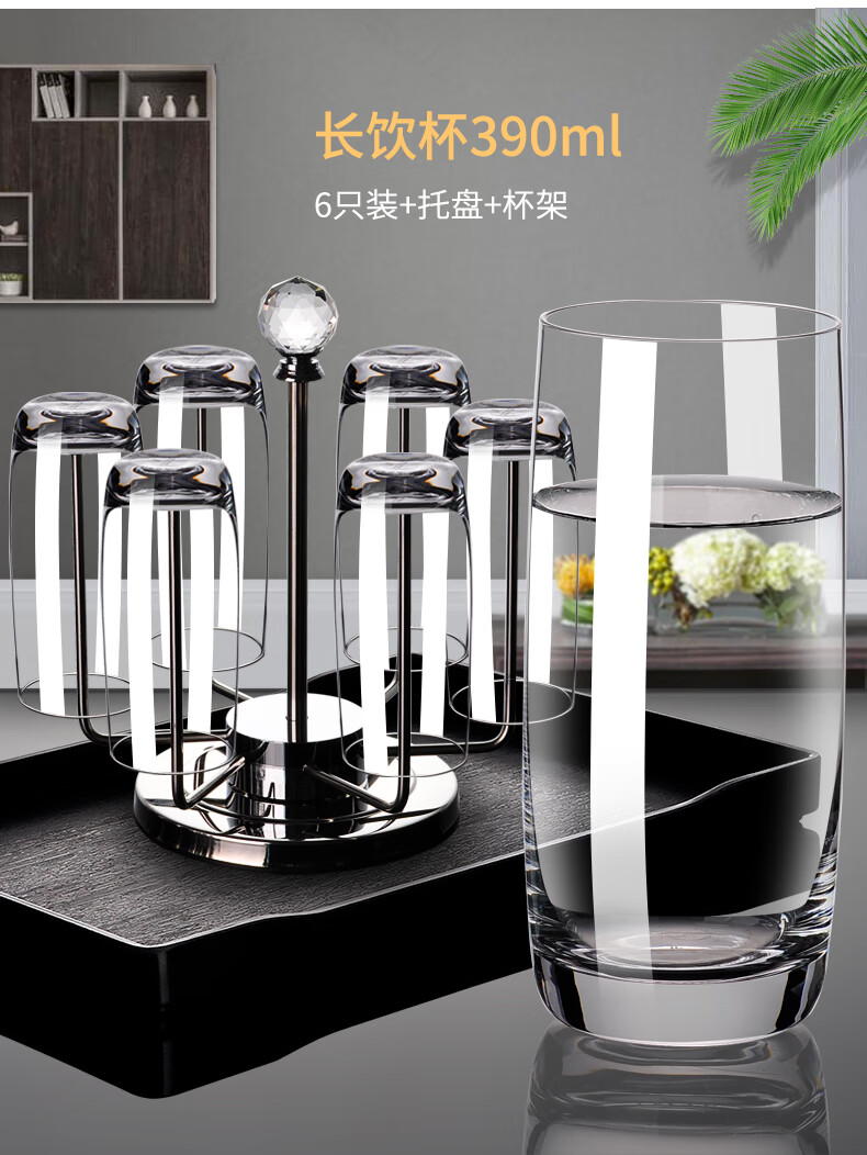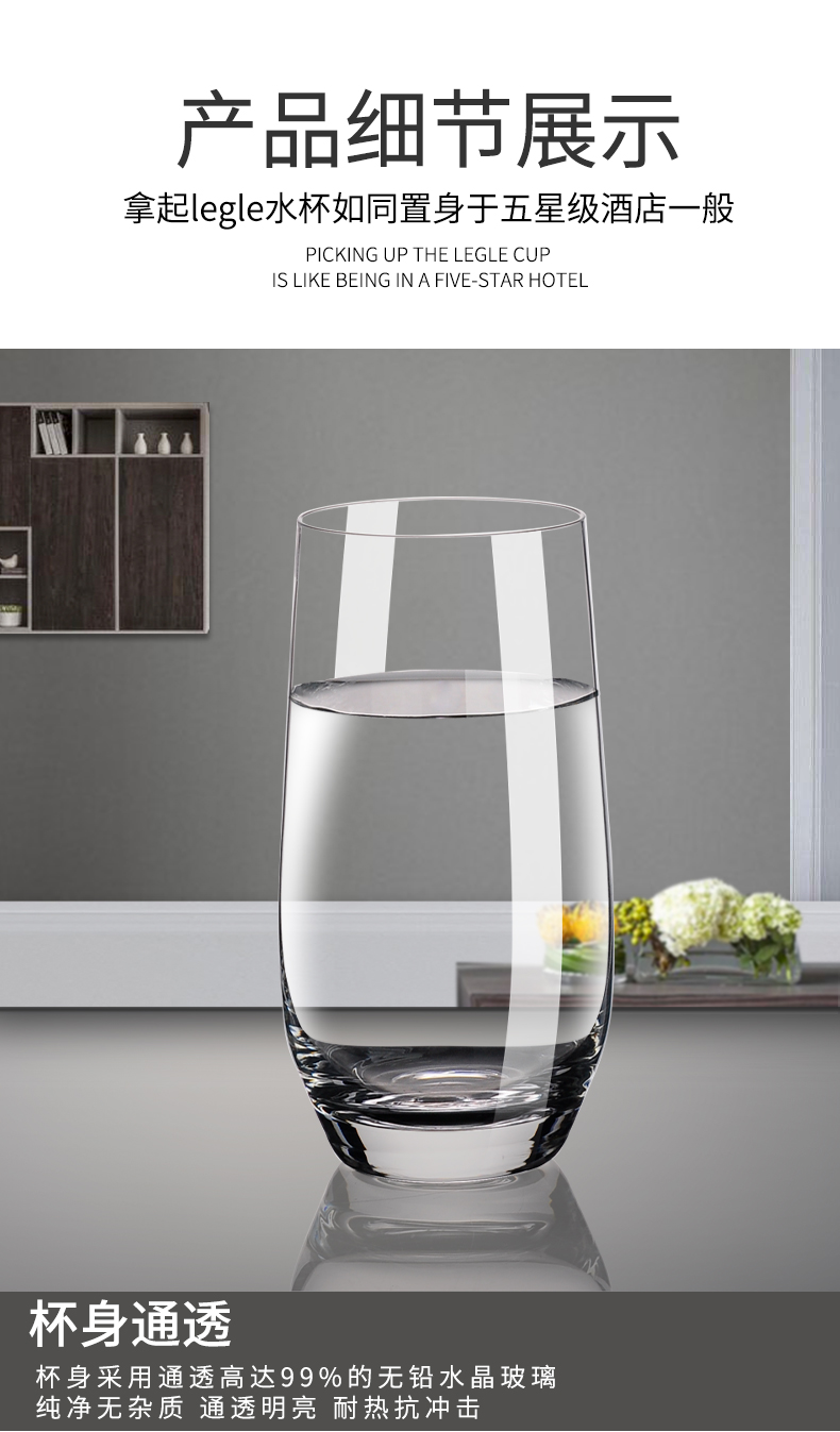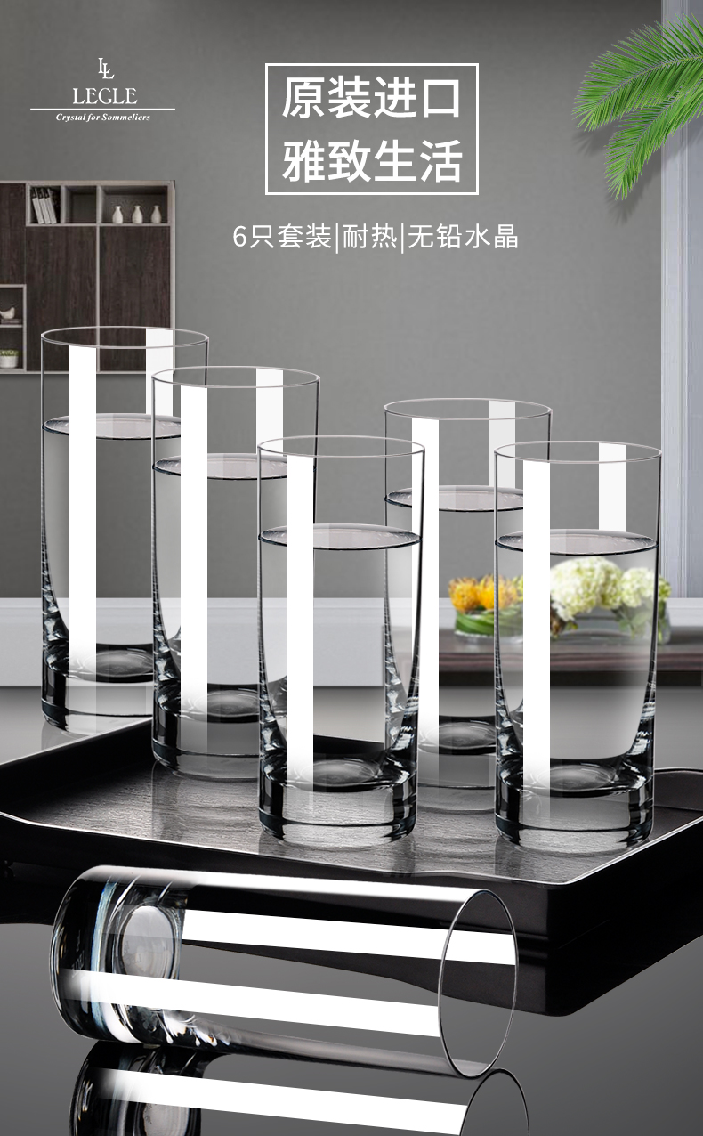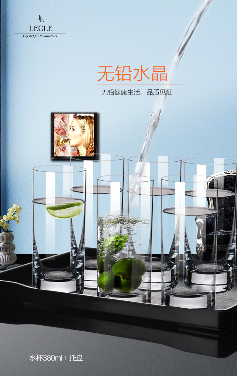 LEGLE German imported crystal glass household water cup set company business reception tea cup high-end cold drink cup 6 380ml crystal cups + cup holder + tray