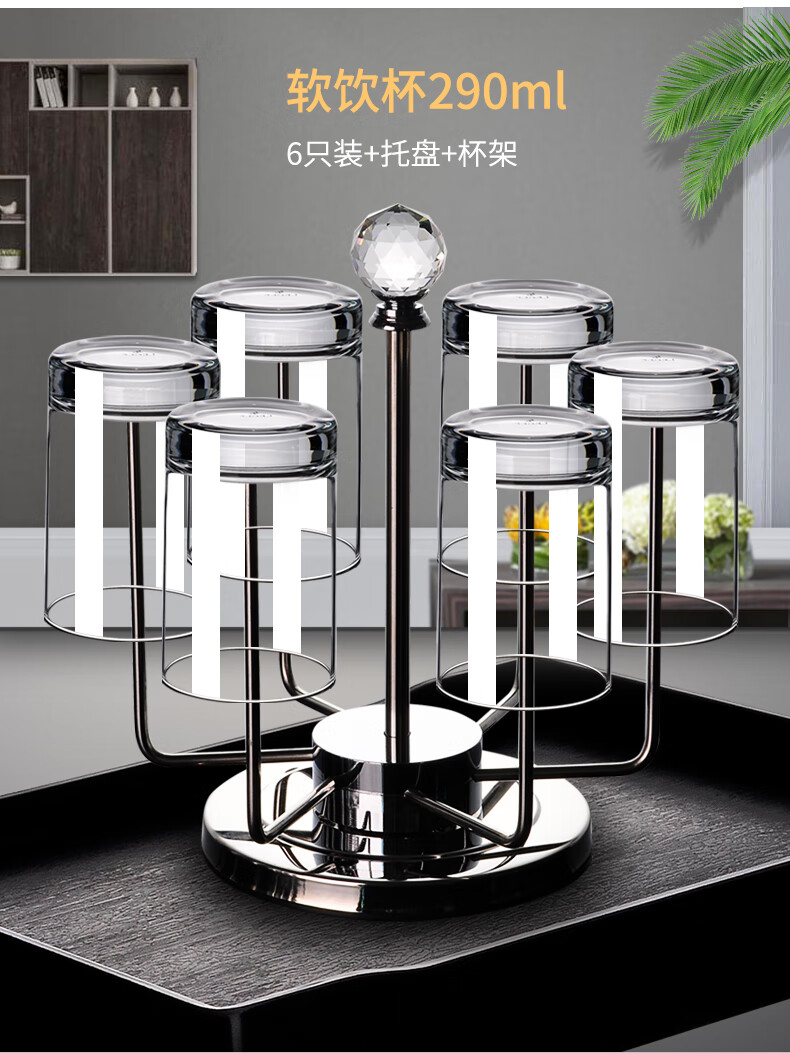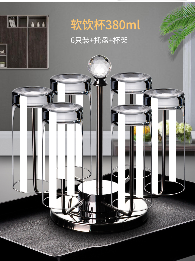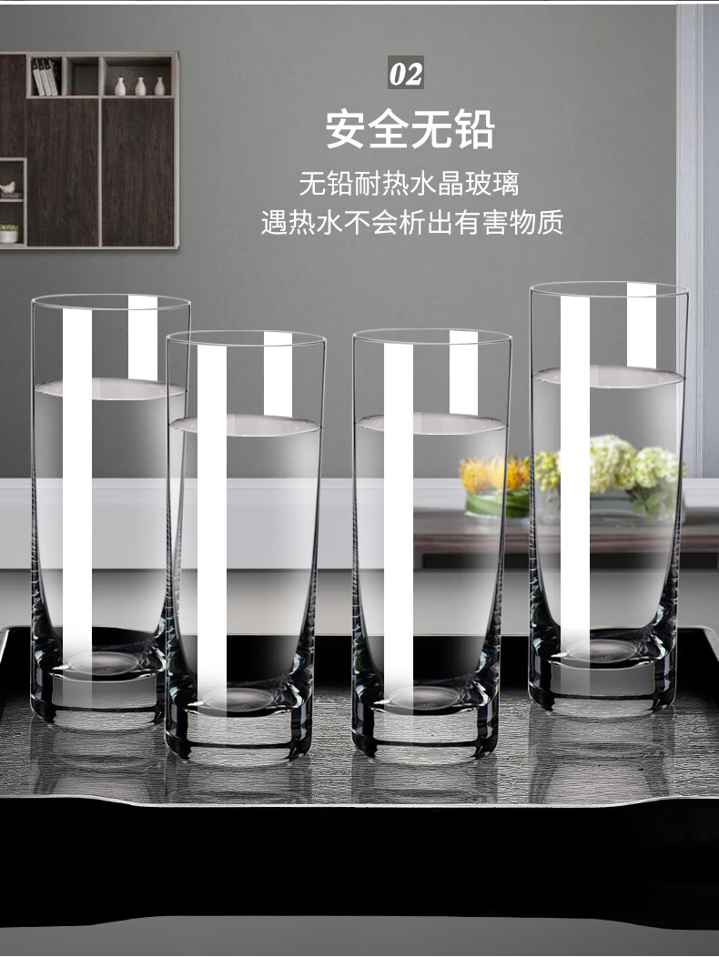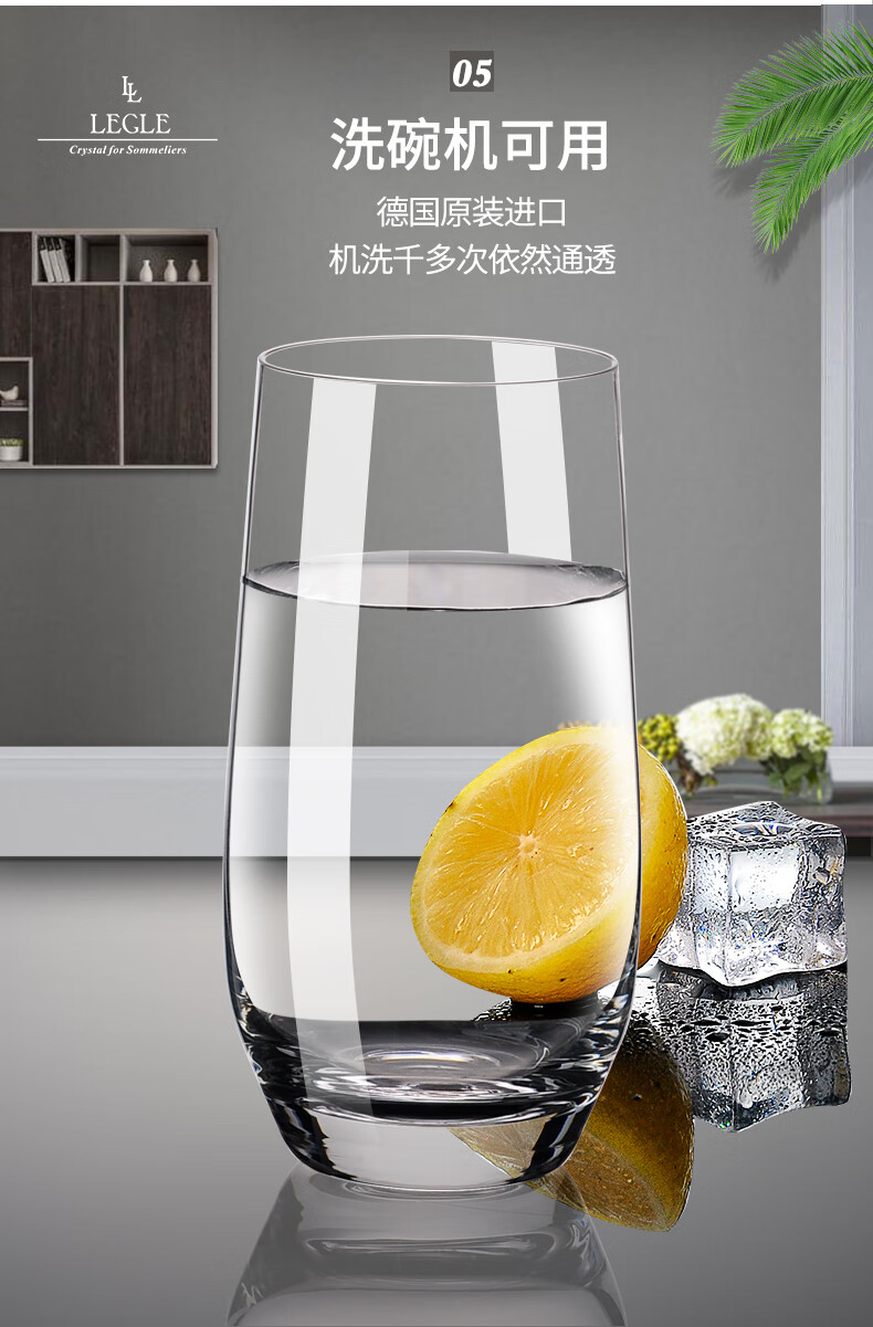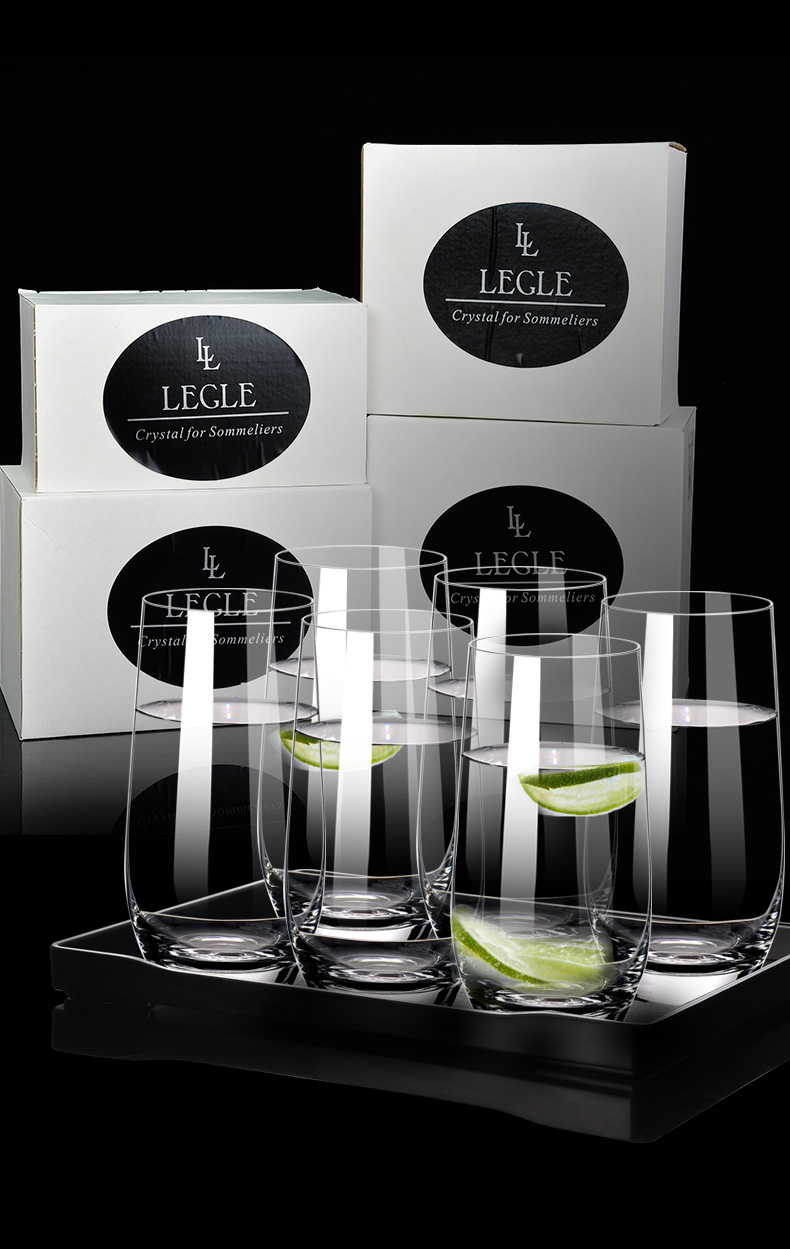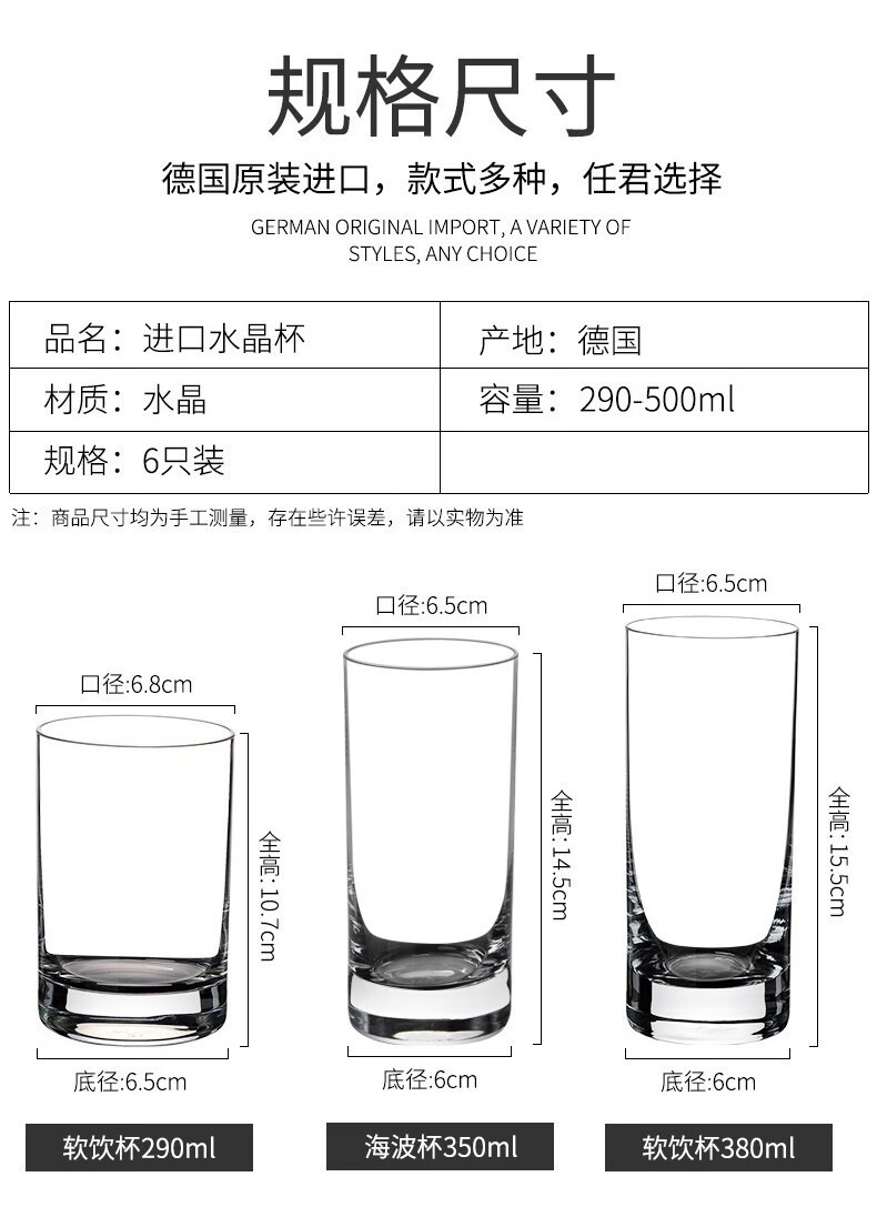 LEGLE German imported crystal glass household water cup set company business reception tea cup high-end cold drink cup 6 380ml crystal cups + cup holder + tray