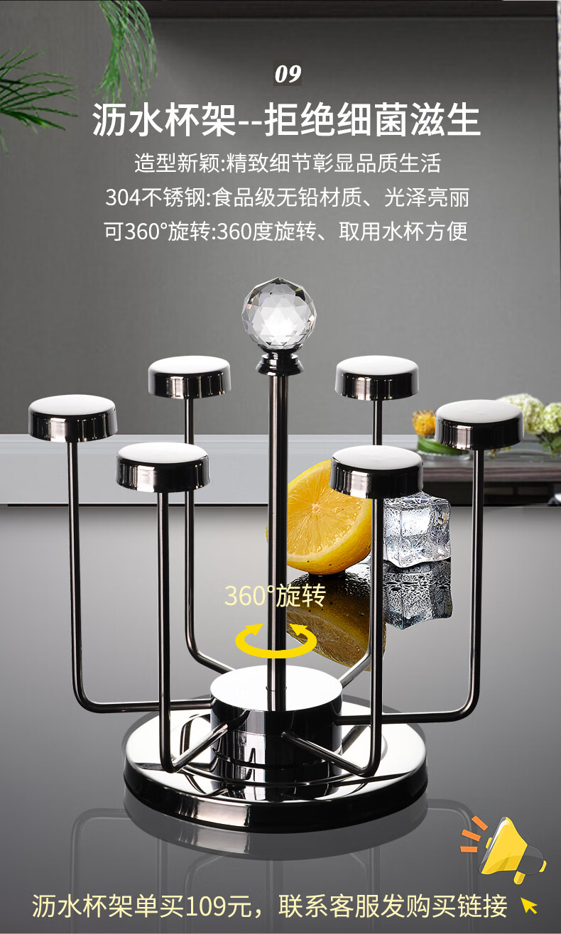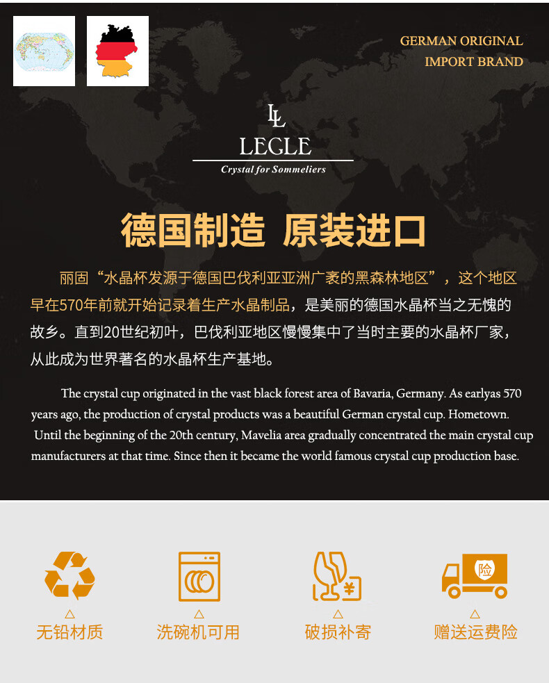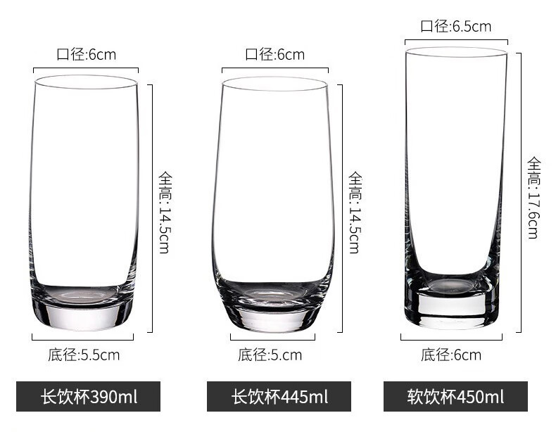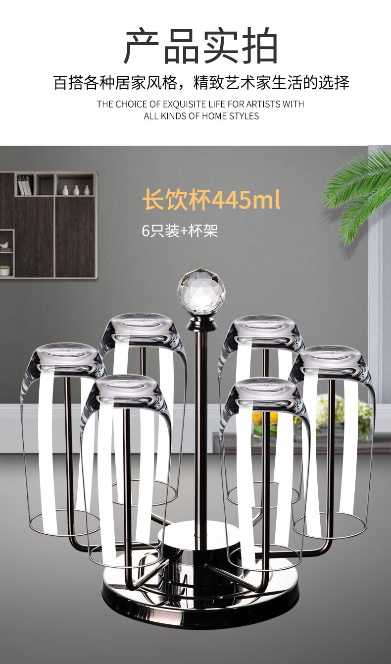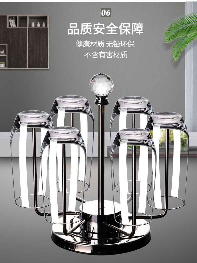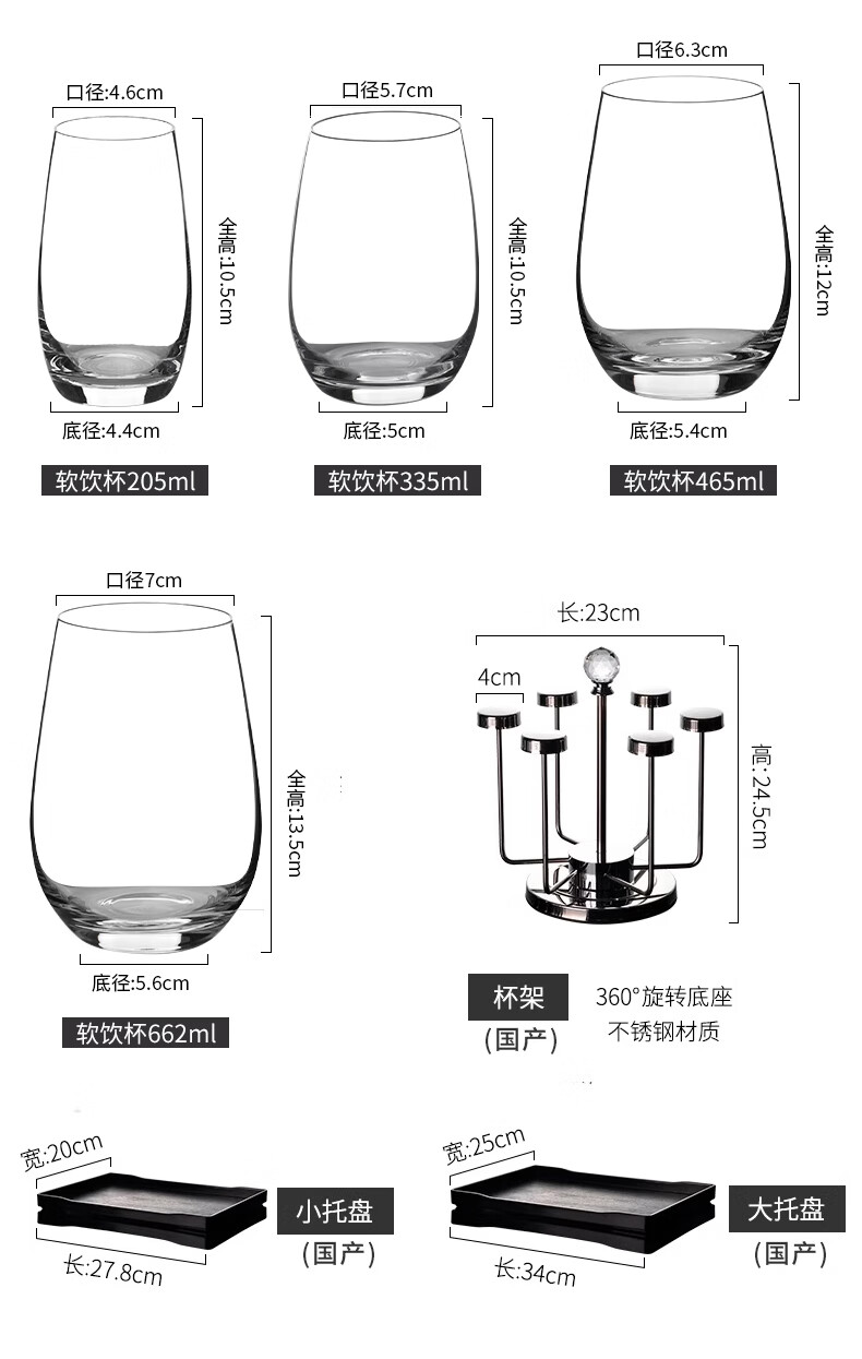 LEGLE German imported crystal glass household water cup set company business reception tea cup high-end cold drink cup 6 380ml crystal cups + cup holder + tray