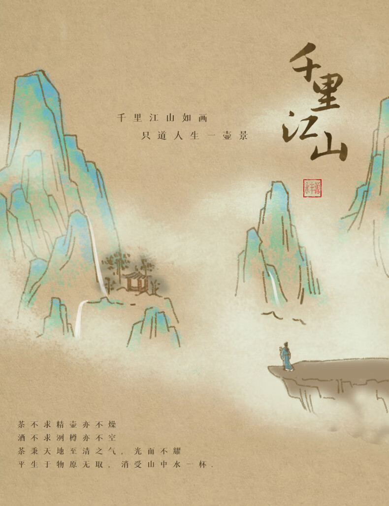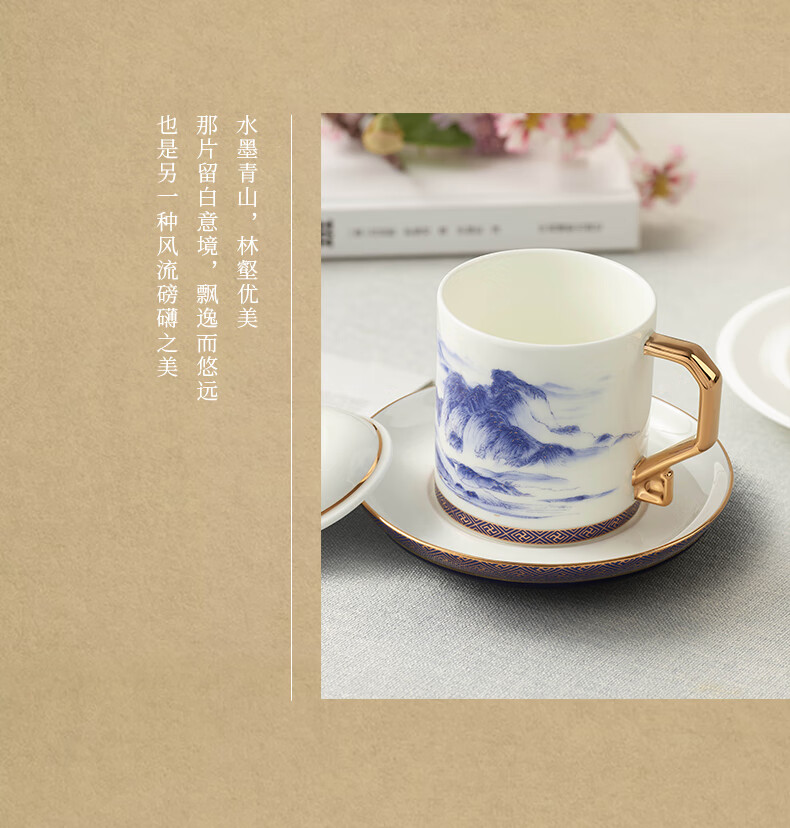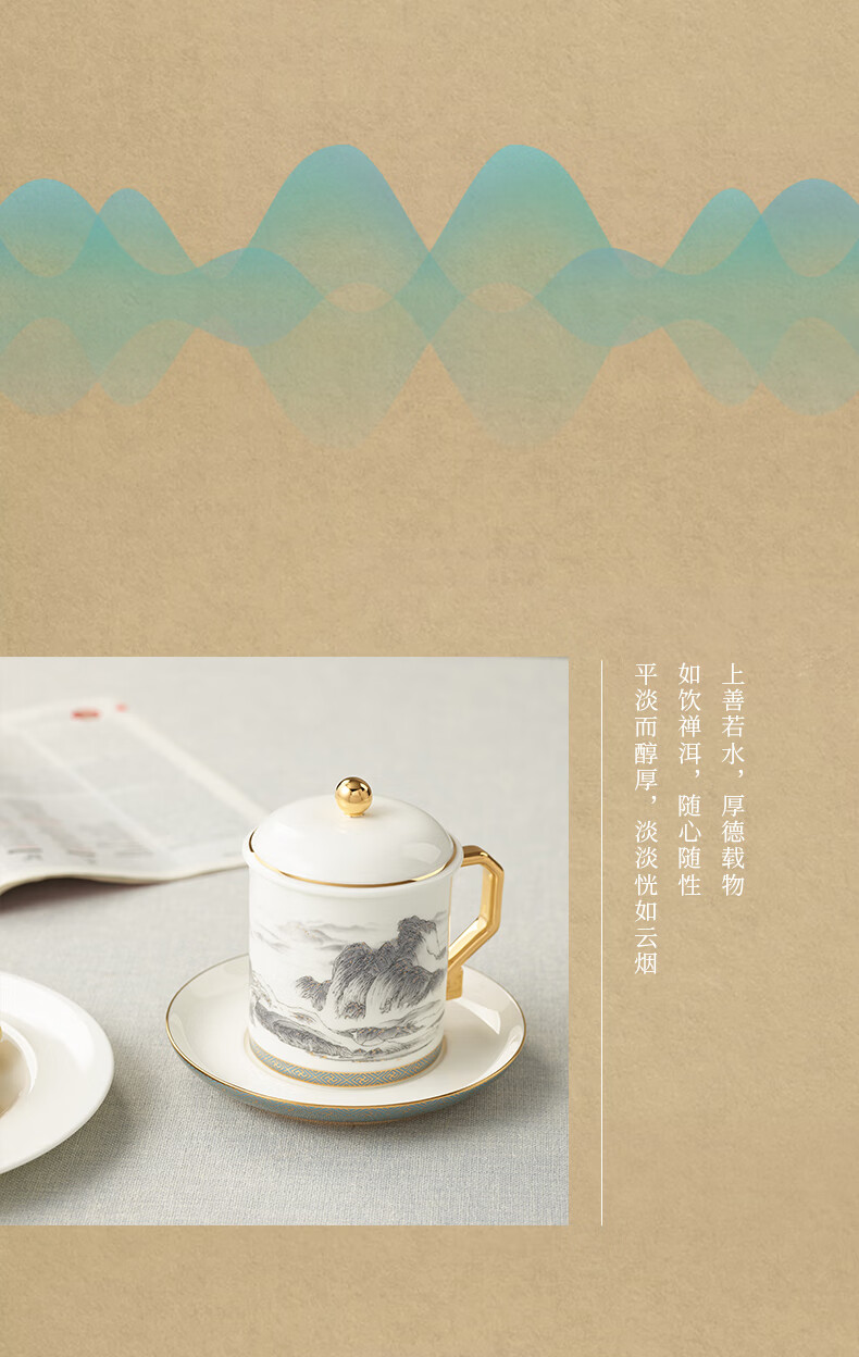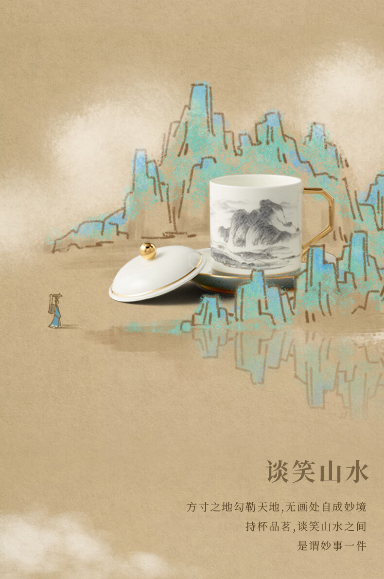 Yongfengyuan (auratic) Qianli Jiangshan Ceramic Cup Office Cup Conference Cup with Lid Business Meeting Water Cup Gift Box (350ml-ink)