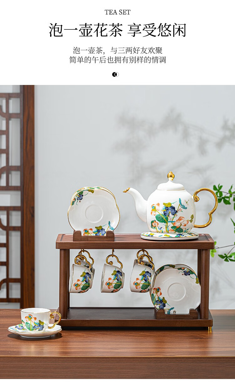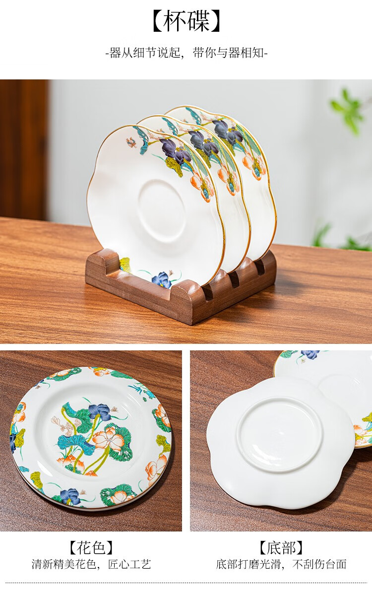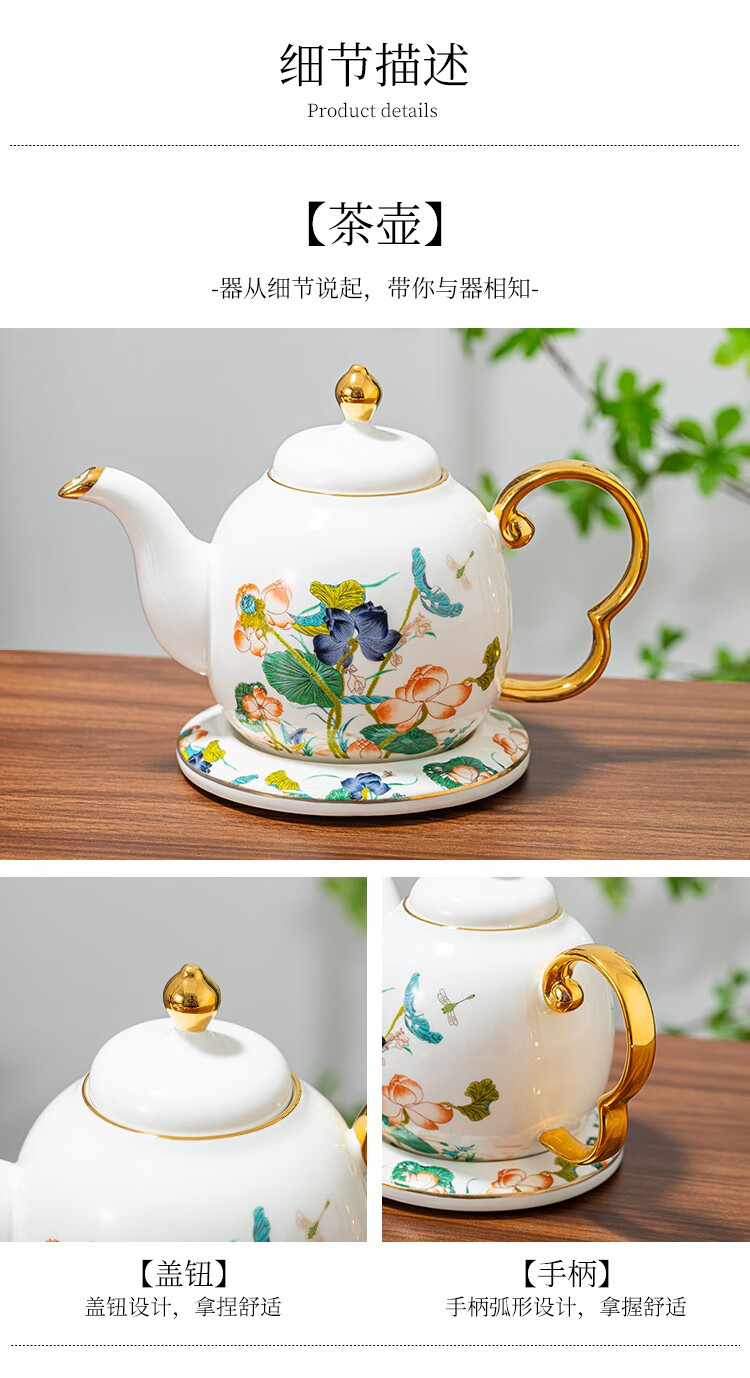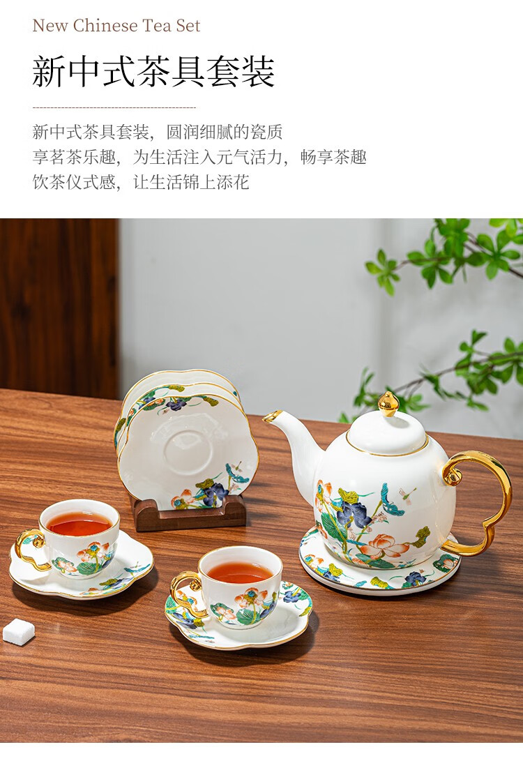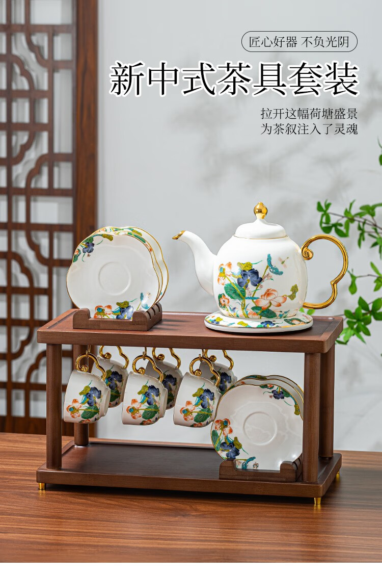 Yanze New Chinese Tea Set Living Room Light Luxury High-end Afternoon Tea Teapot Teacup Complete Gift Box Cup Set Lotus Pond Spring Color 17-piece Set-Rectangular Shelf