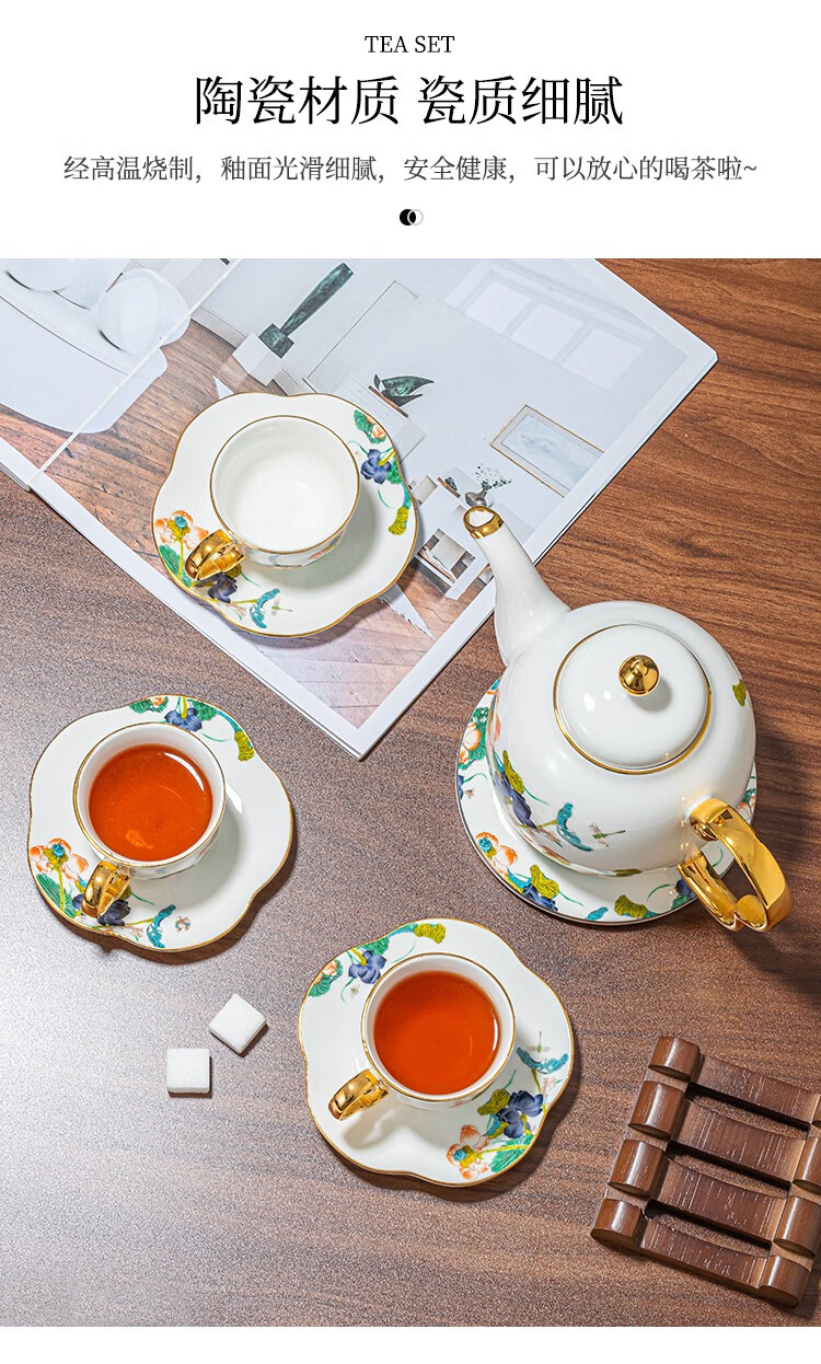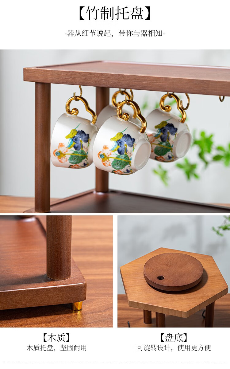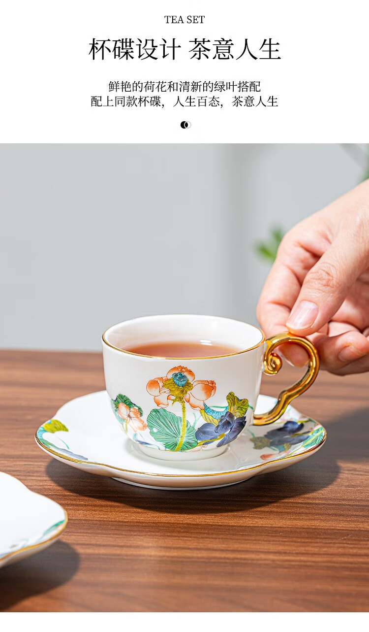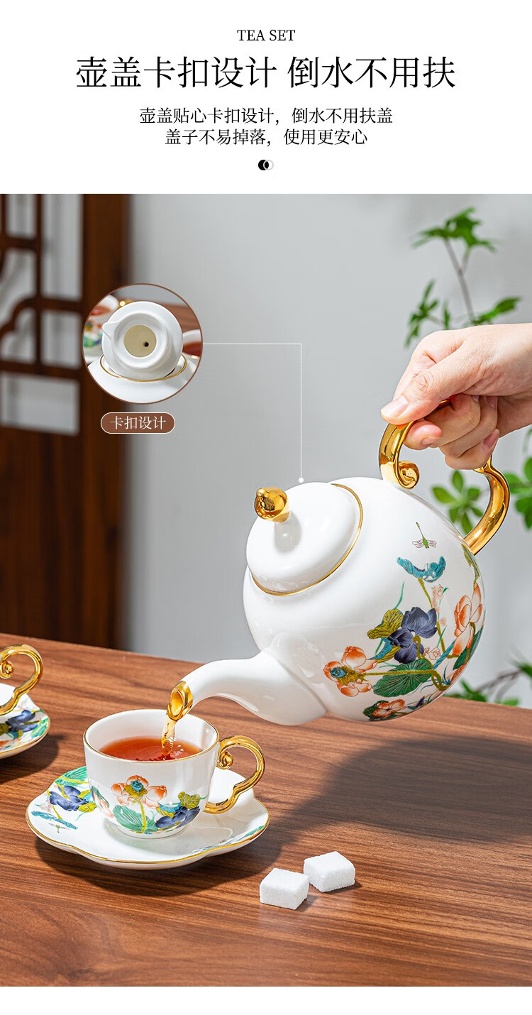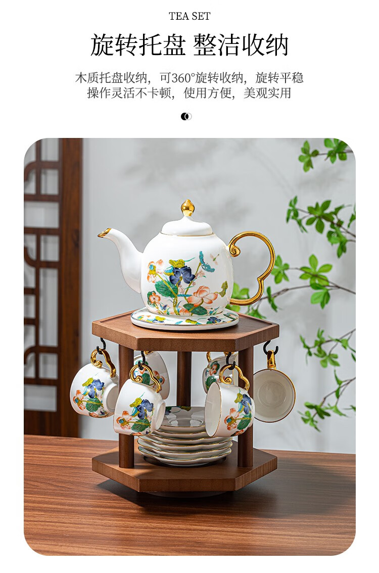Yanze New Chinese Tea Set Living Room Light Luxury High-end Afternoon Tea Teapot Teacup Complete Gift Box Cup Set Lotus Pond Spring Color 17-piece Set-Rectangular Shelf