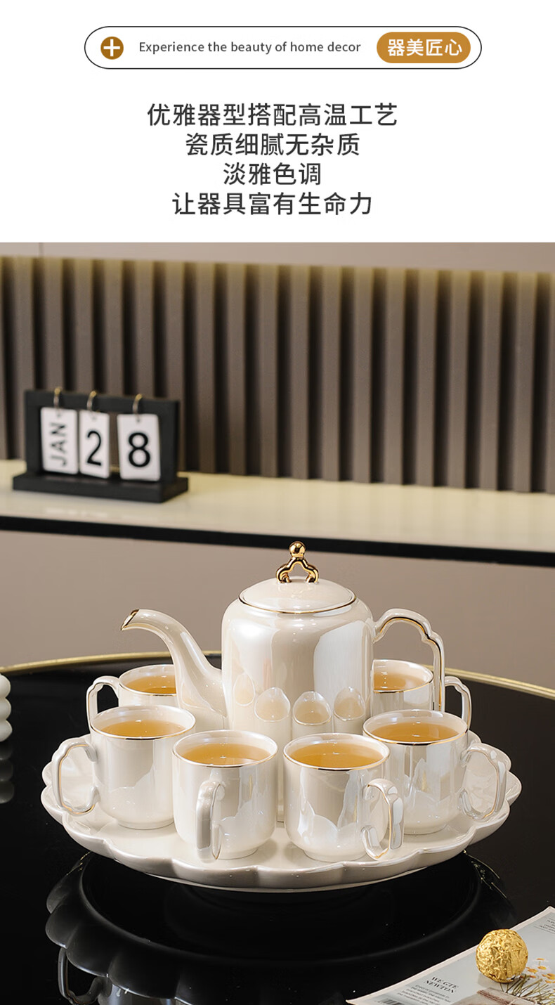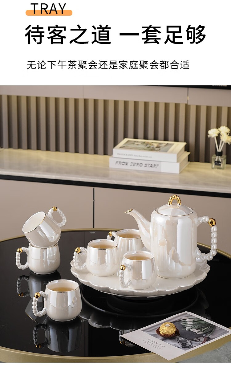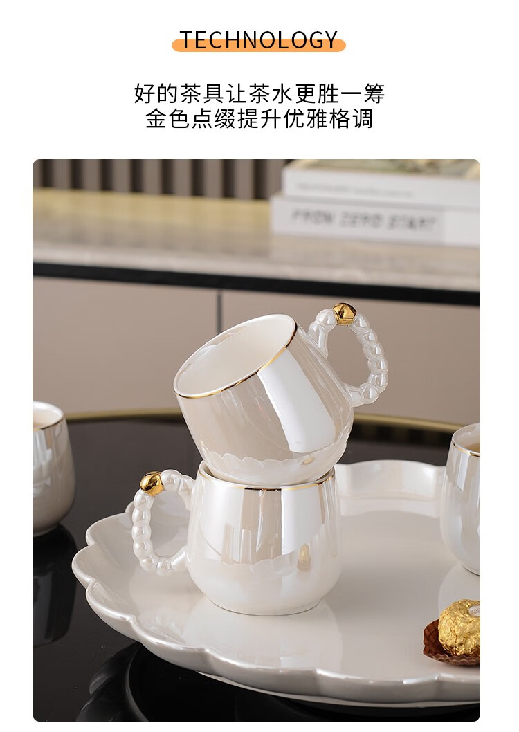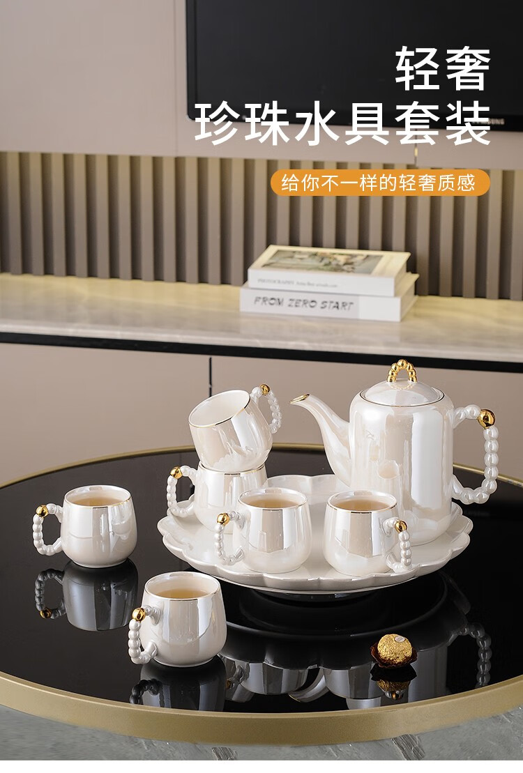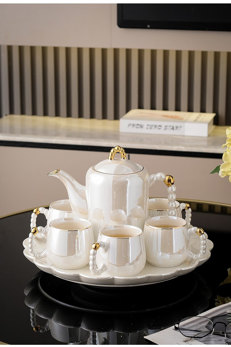 Yanze Light Luxury Wedding Gift Wedding Gift for Couple Glass Tea Set Rotatable Practical Cup Pearl Ear Pearlescent Eight-piece Set-Gift Box