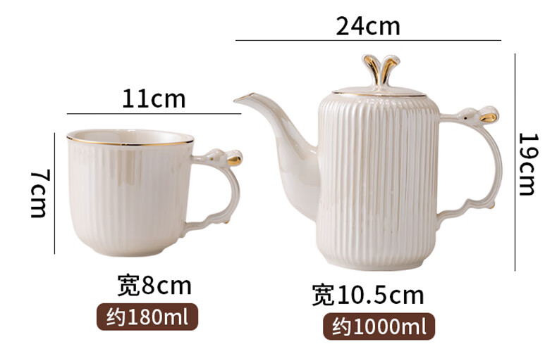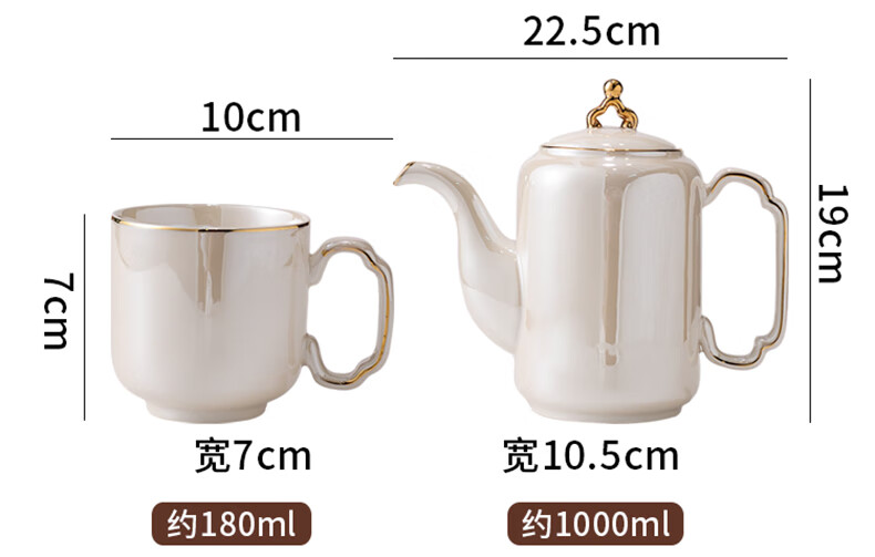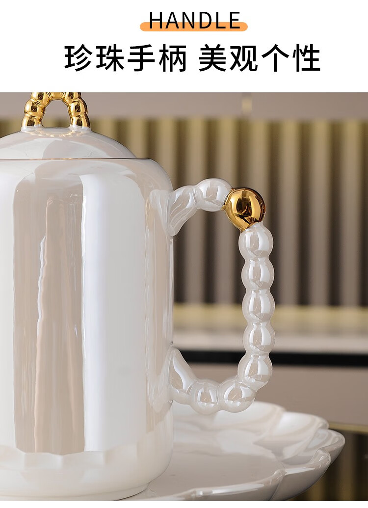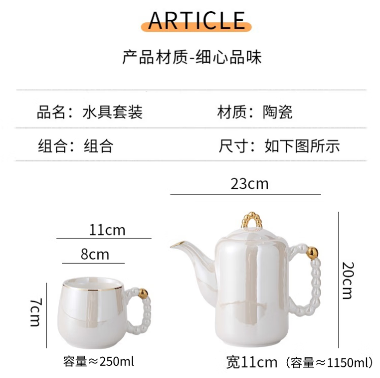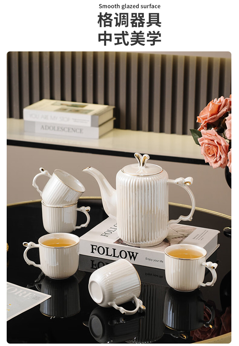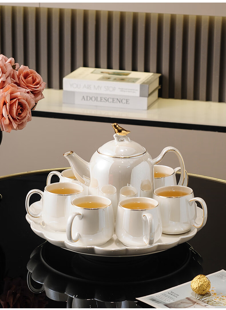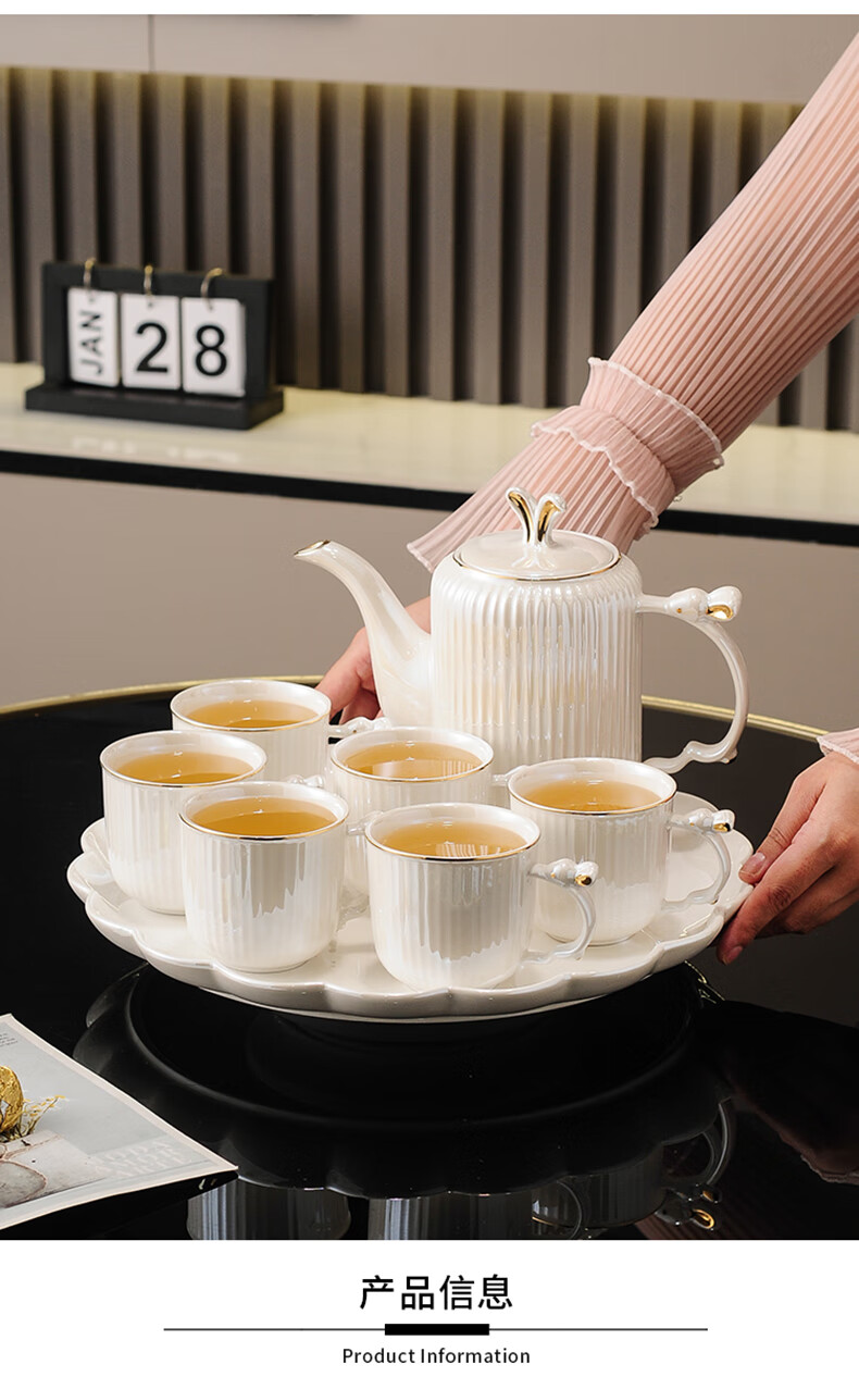 Yanze Light Luxury Wedding Gift Wedding Gift for Couple Glass Tea Set Rotatable Practical Cup Pearl Ear Pearlescent Eight-piece Set-Gift Box
