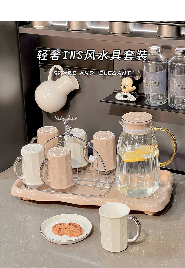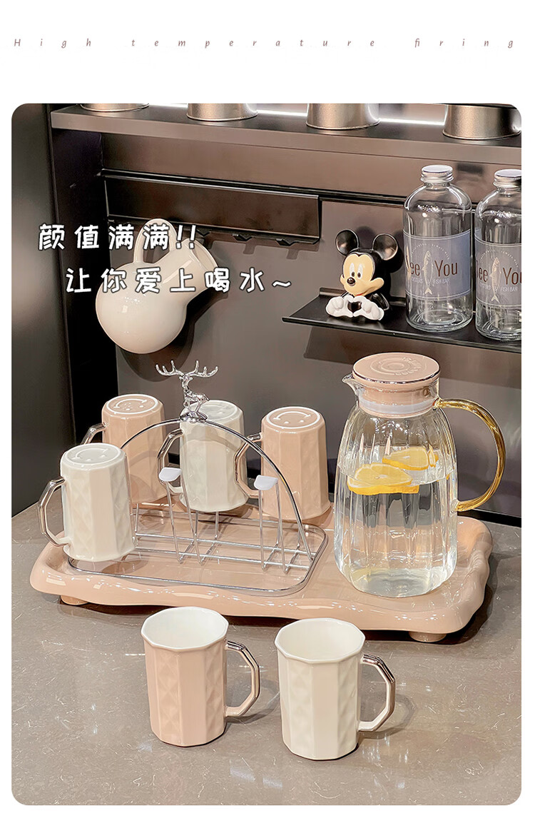 Qipai home water cup set, living room hospitality cup, kettle, cup, moving to new home, wedding gift, high-end practical tea set, high-end water set 9-piece set 1196 gift box