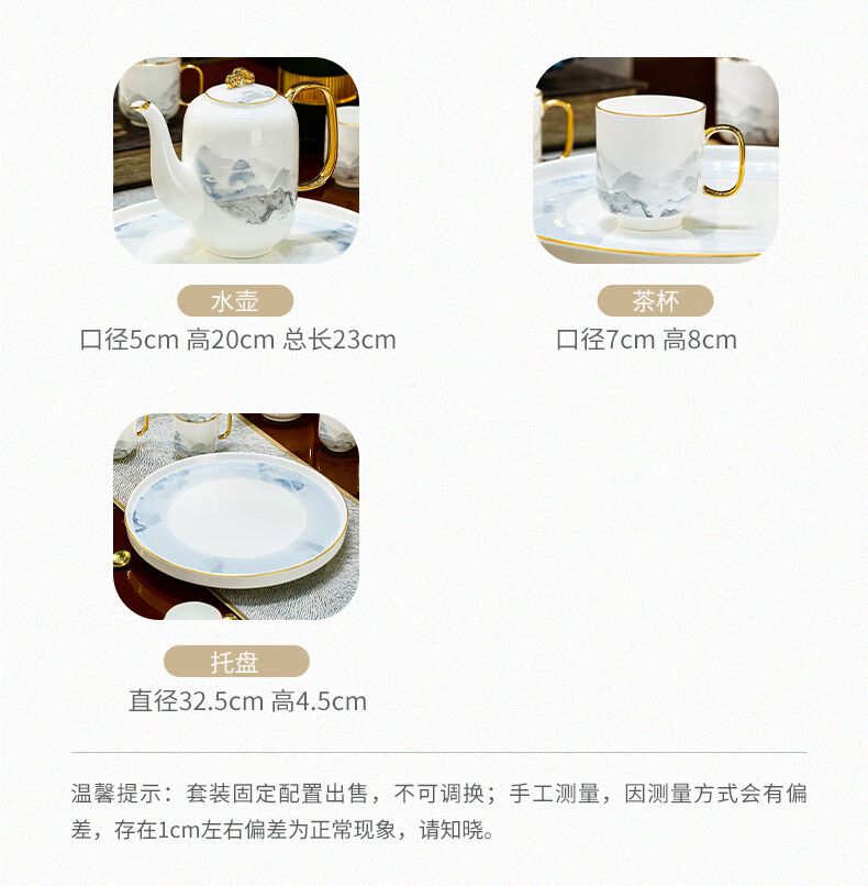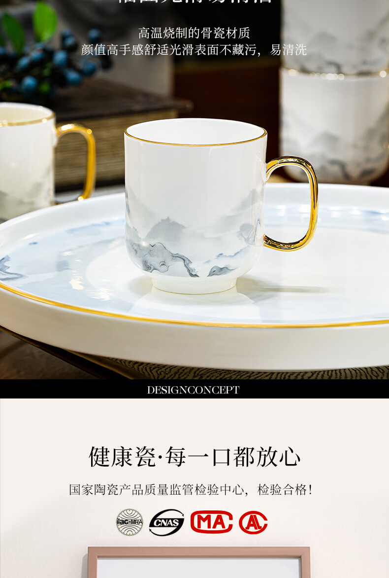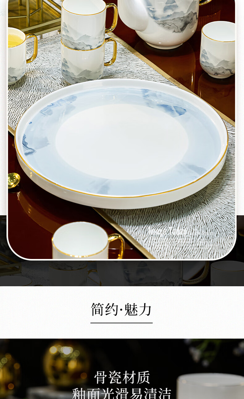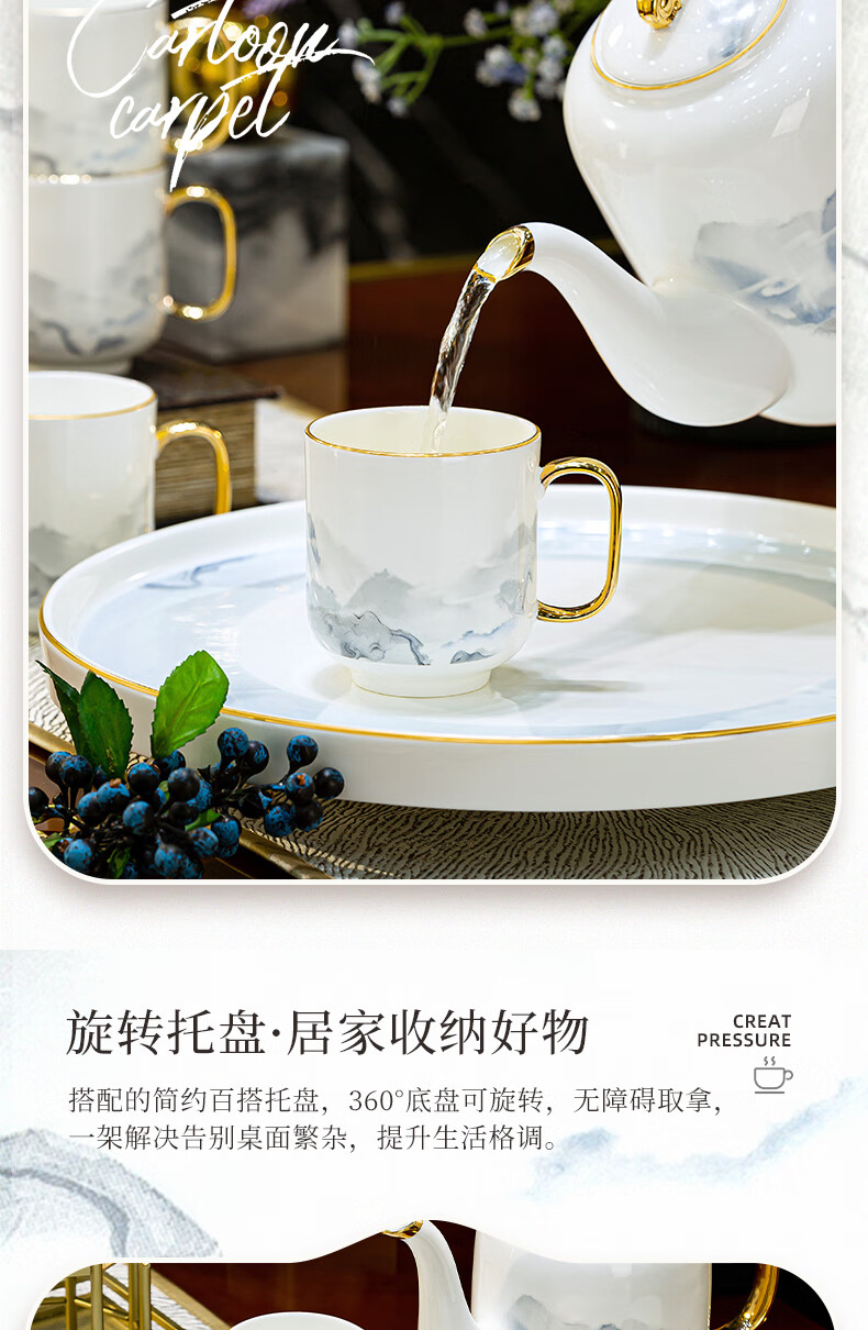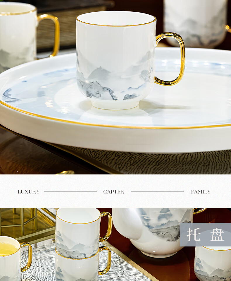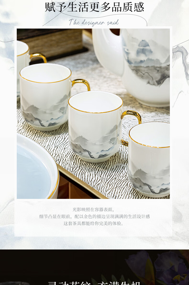 Han Ming new Chinese style tea set complete set for housewarming gift Jingdezhen water cup teapot living room household high-end ceramic cup set high-end bone china tea set 8-piece gift box