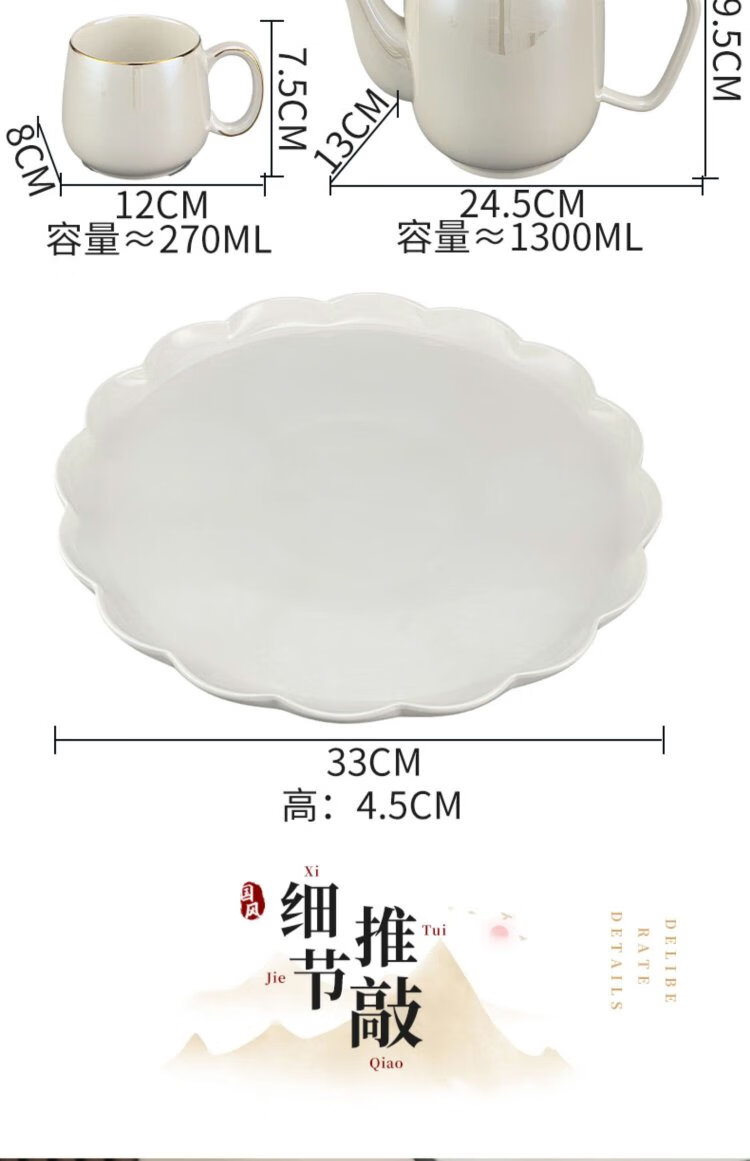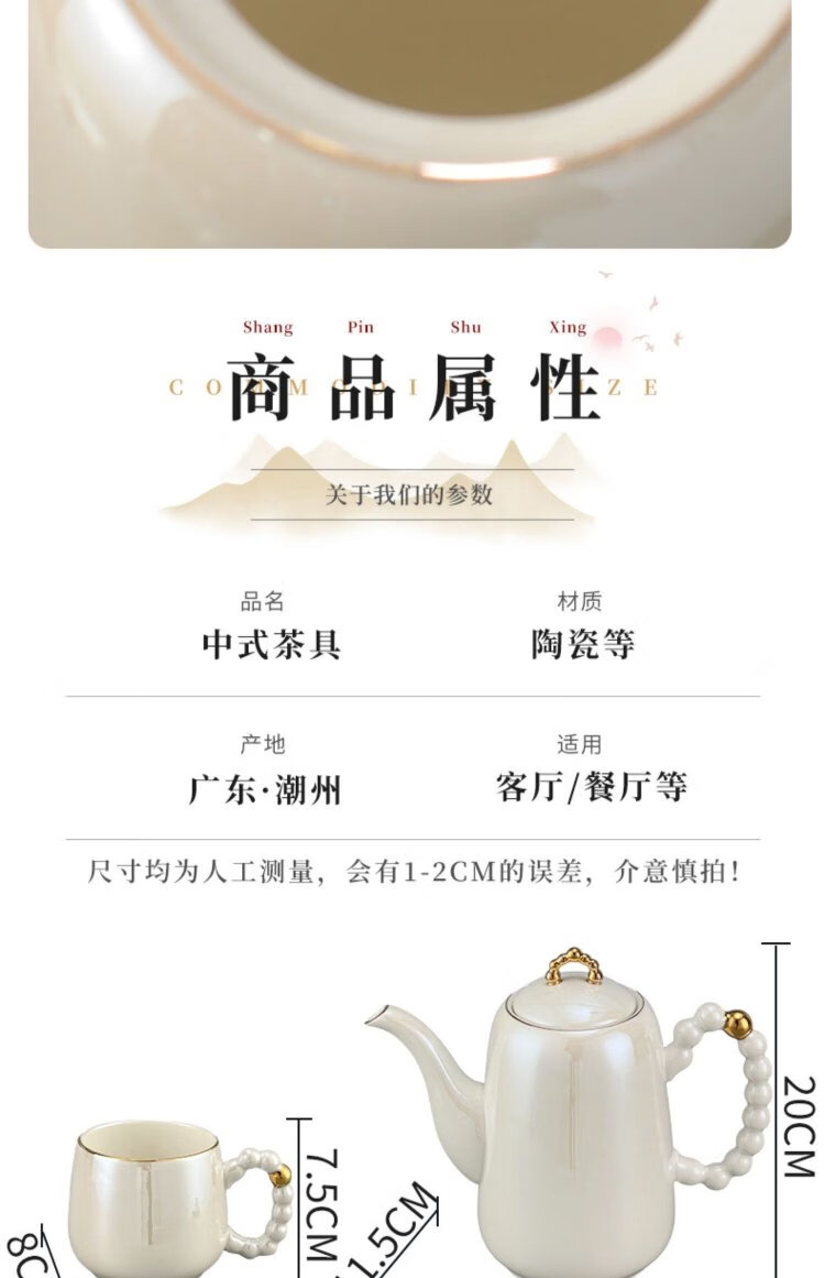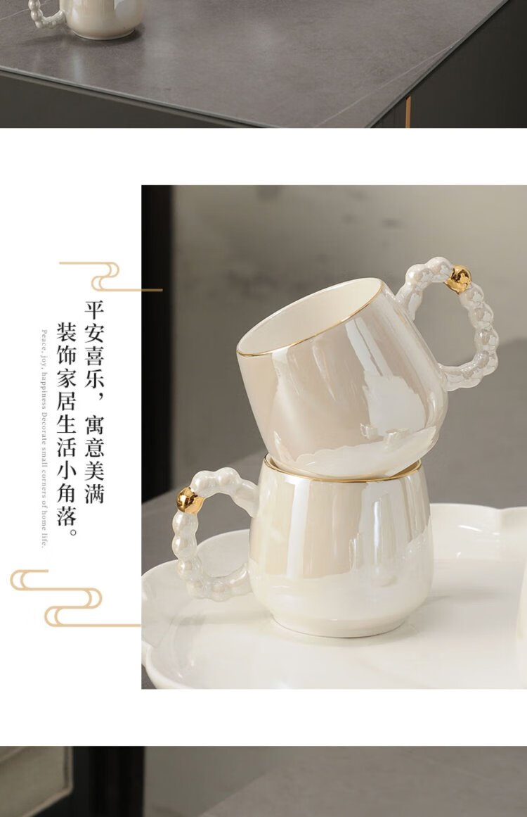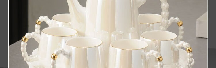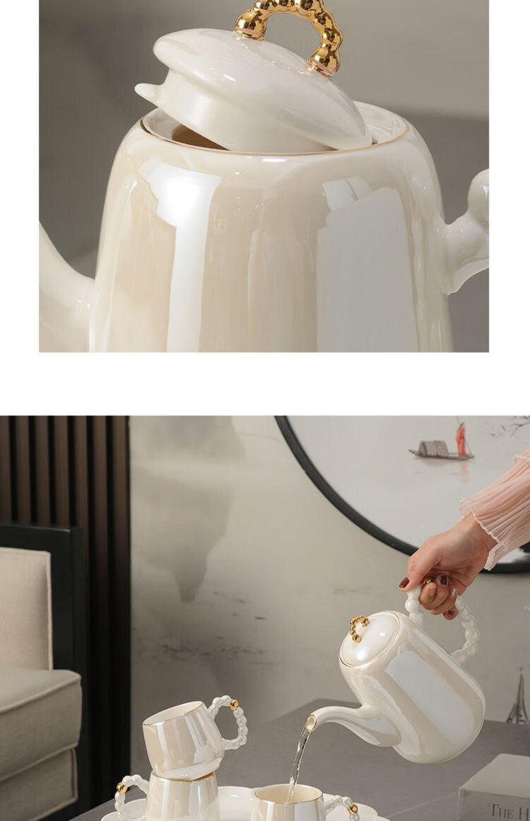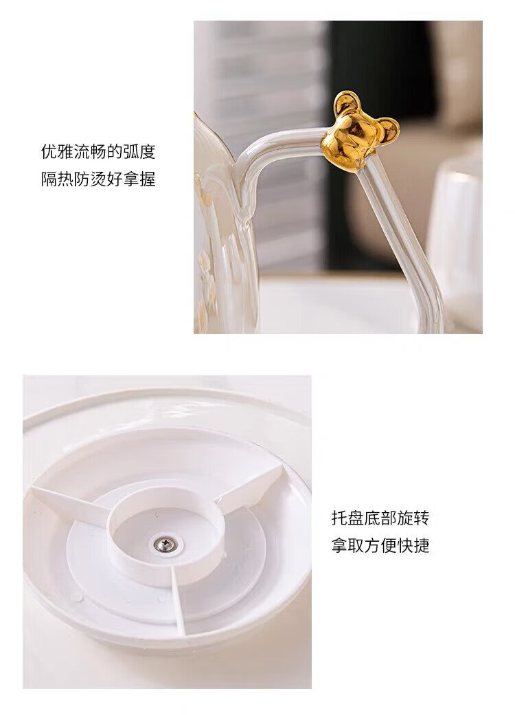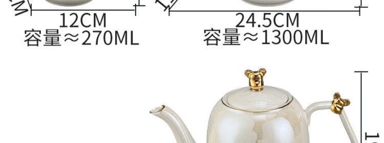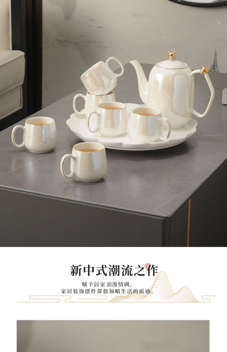 Ruishun light luxury high-end tea set new water cup household living room tea cup housewarming gift Pearlescent Golden Bear Tea Set (6 cups 1 pot 1 tray) gift box