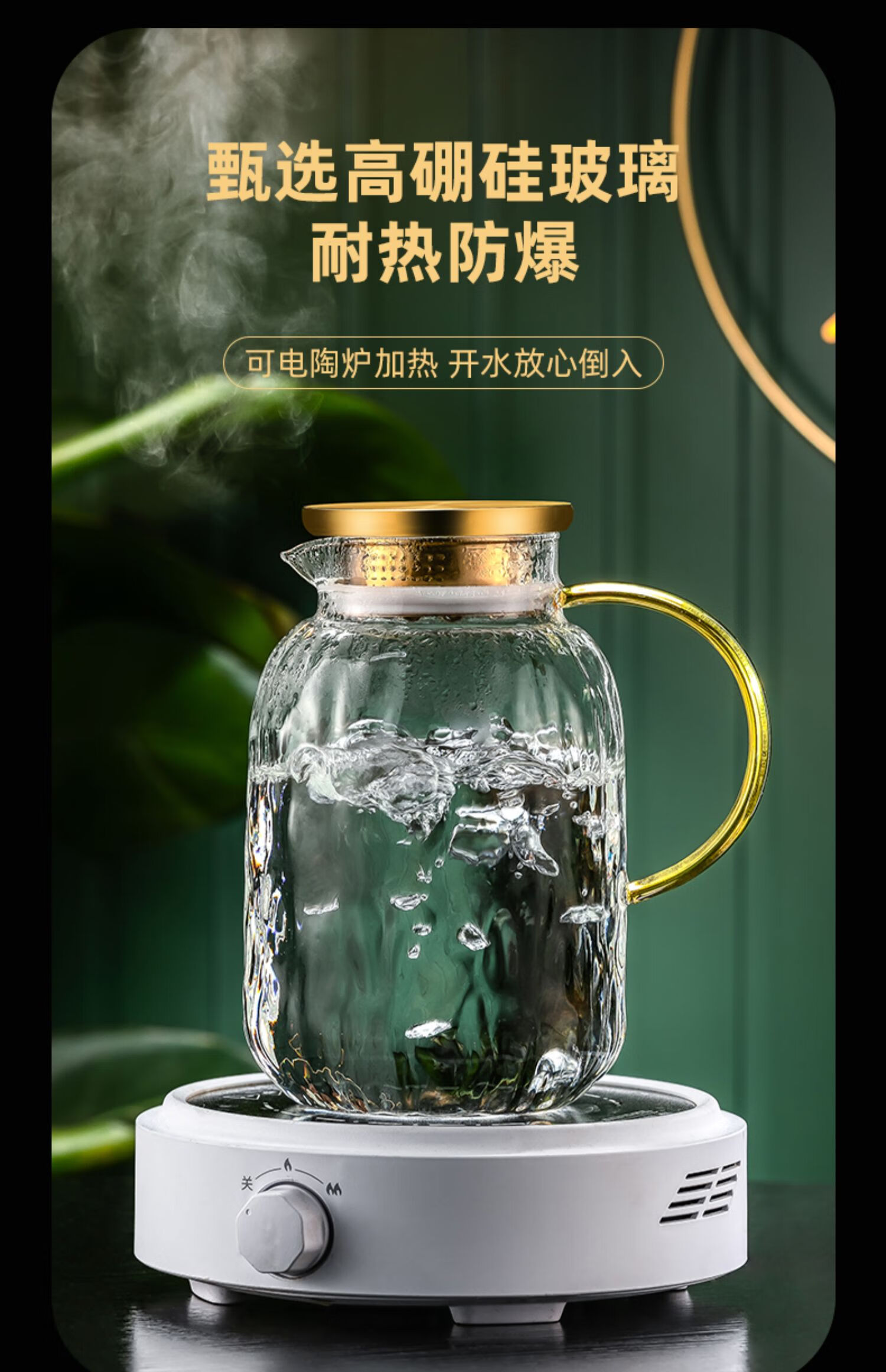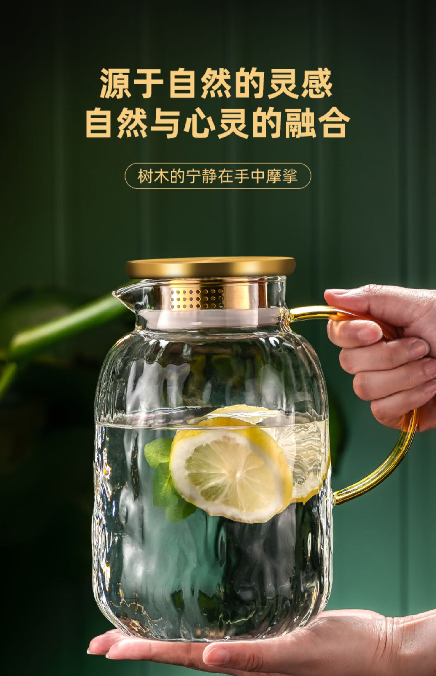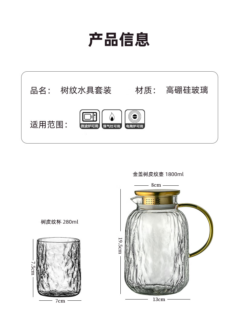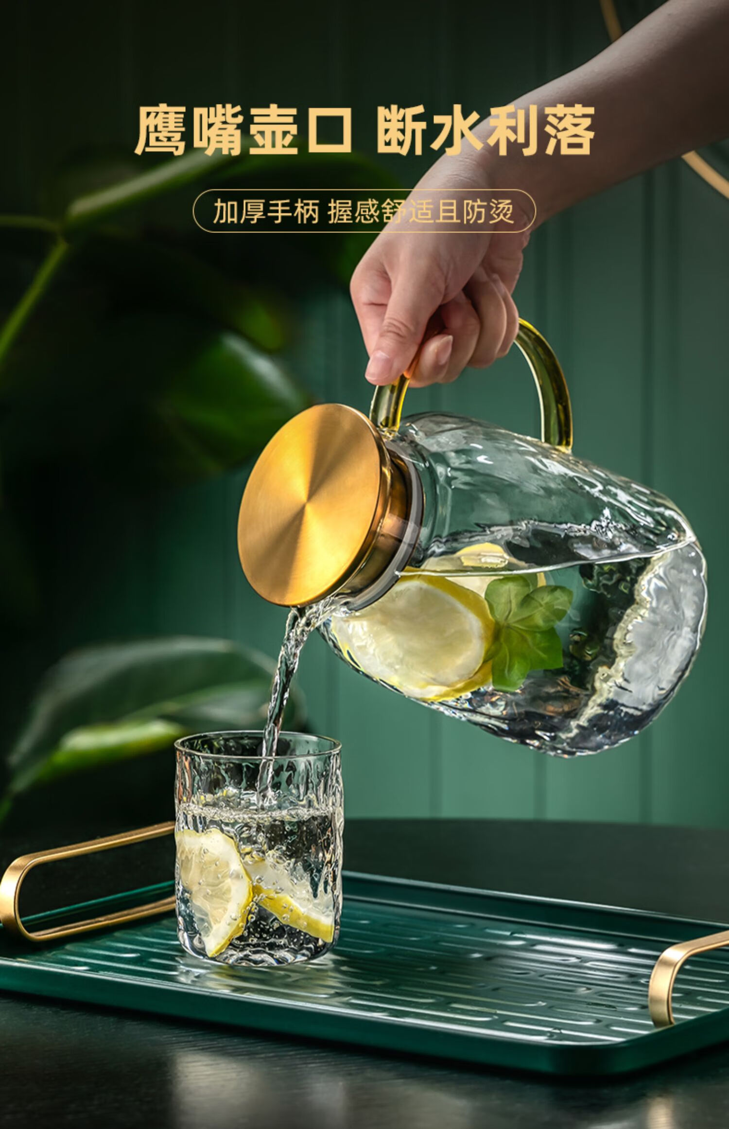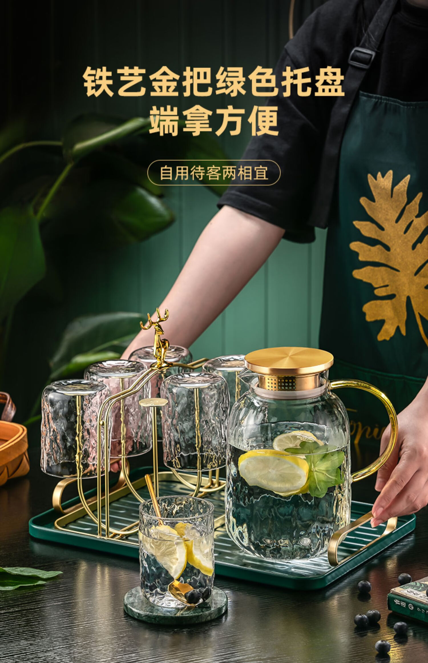 MIDOC light luxury glass water cup, home tea cup, high-looking bark pattern heat-resistant living room drinking cup set for entertaining guests, 6 tree pattern cups + gold frame + tree pattern pot + green tray