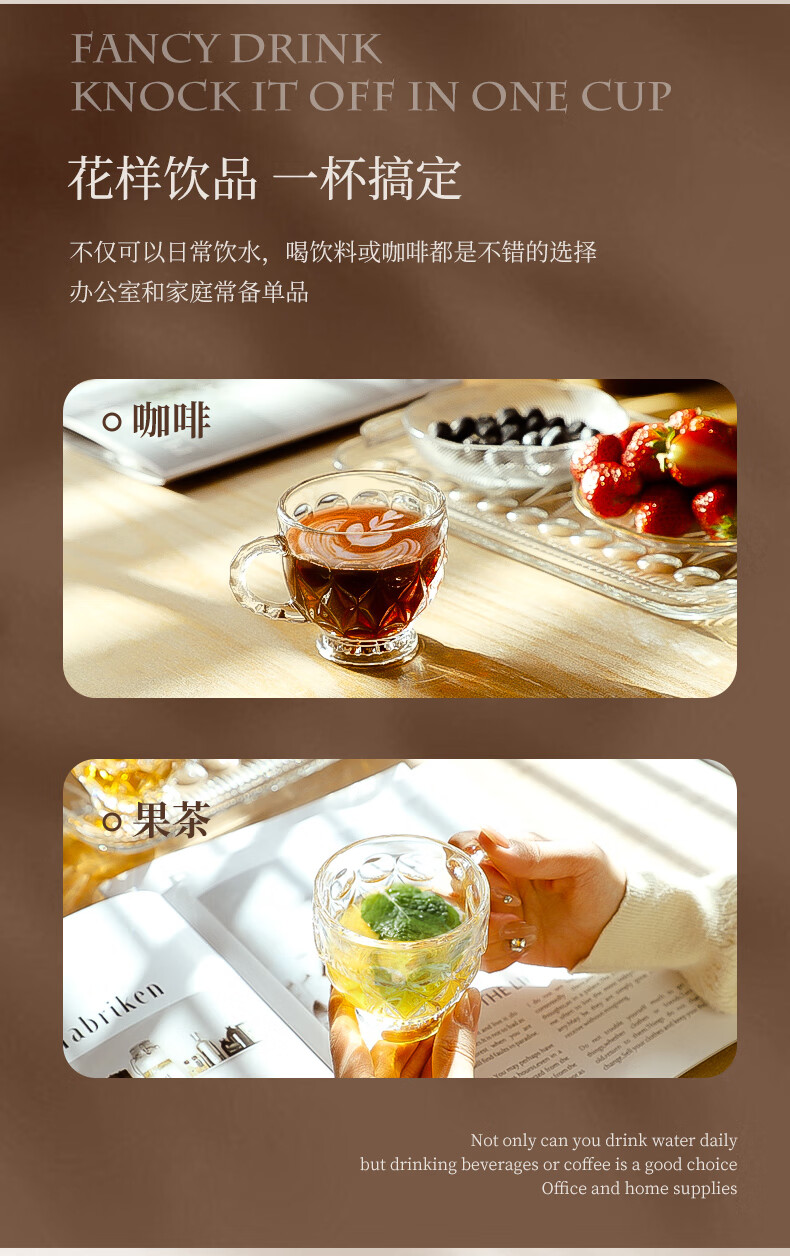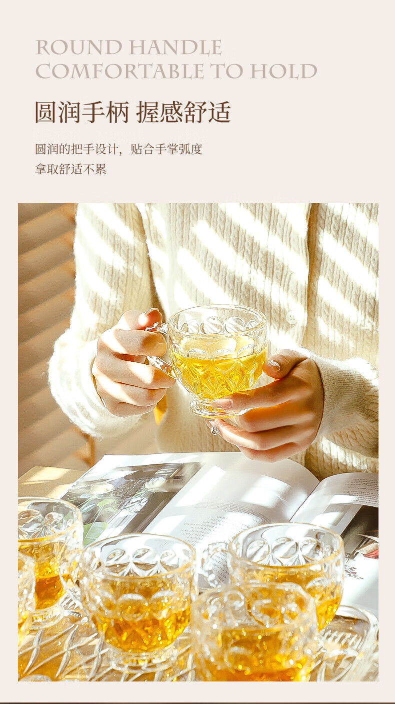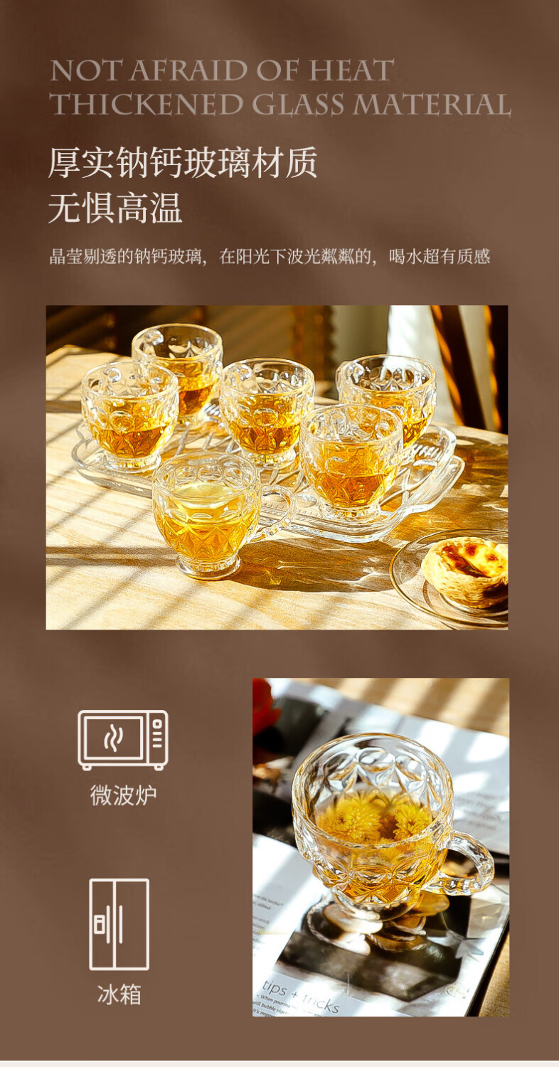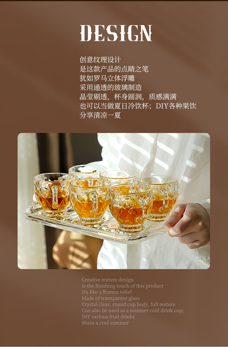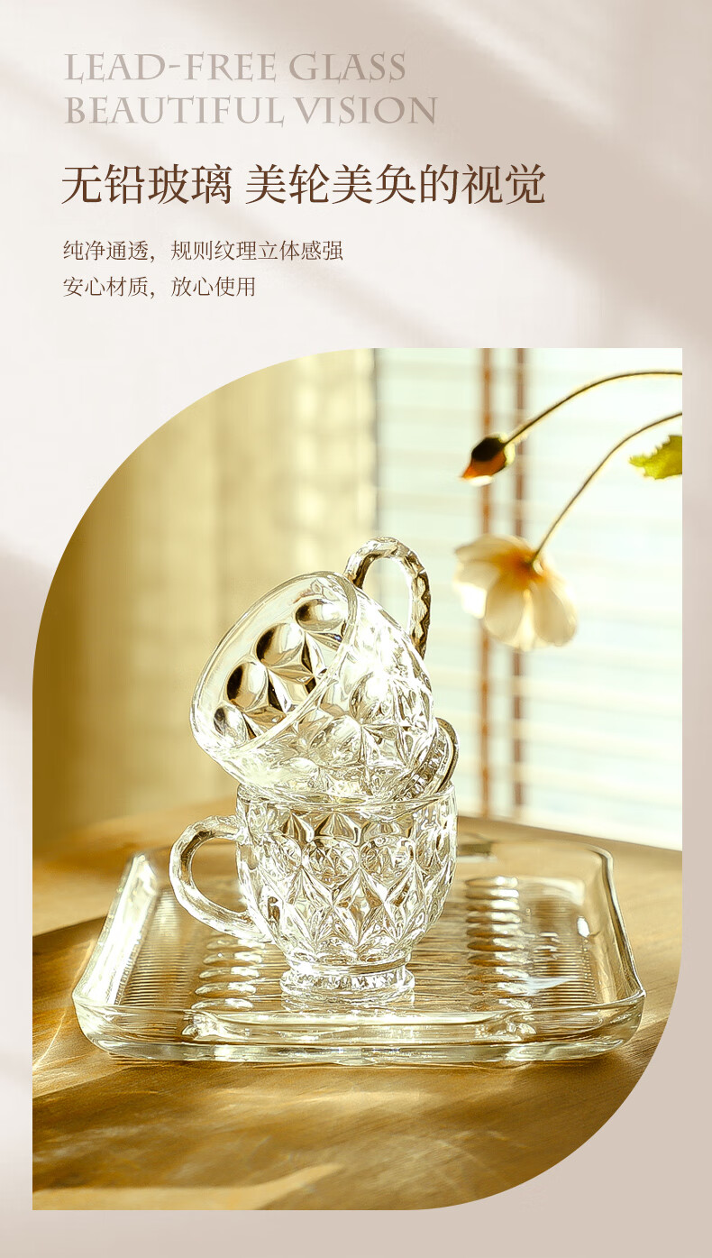 Langxu glass cup and plate set seven-piece set for new home, living room coffee table ornaments, thickened cups, 6 pieces with tray, XO style seven-piece set
