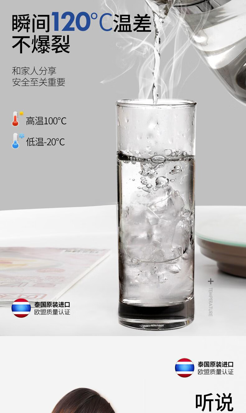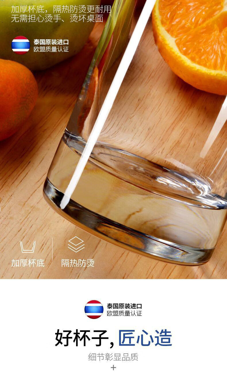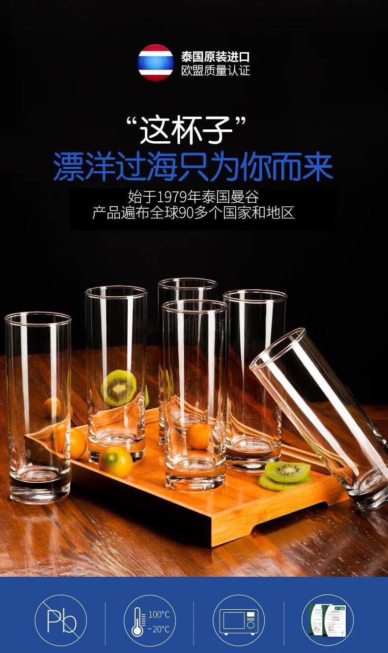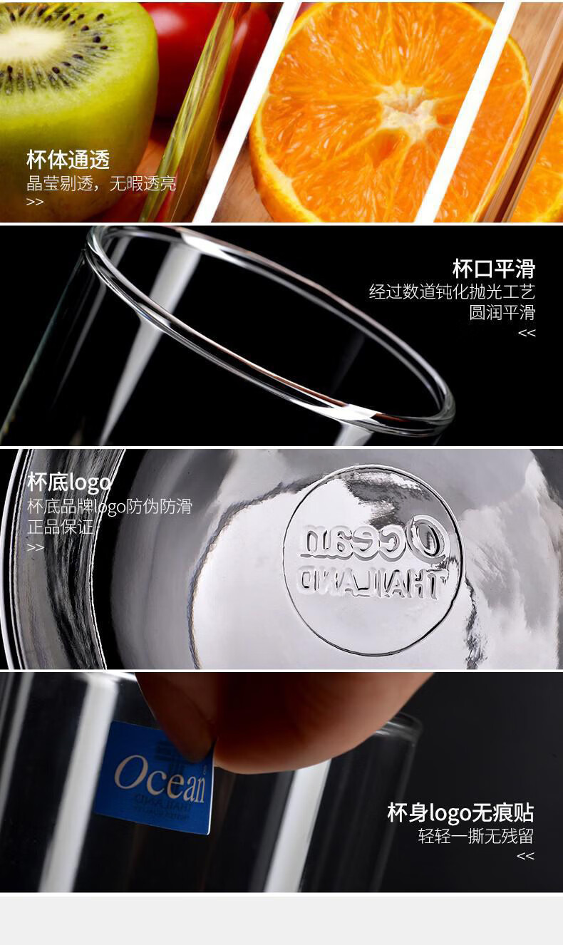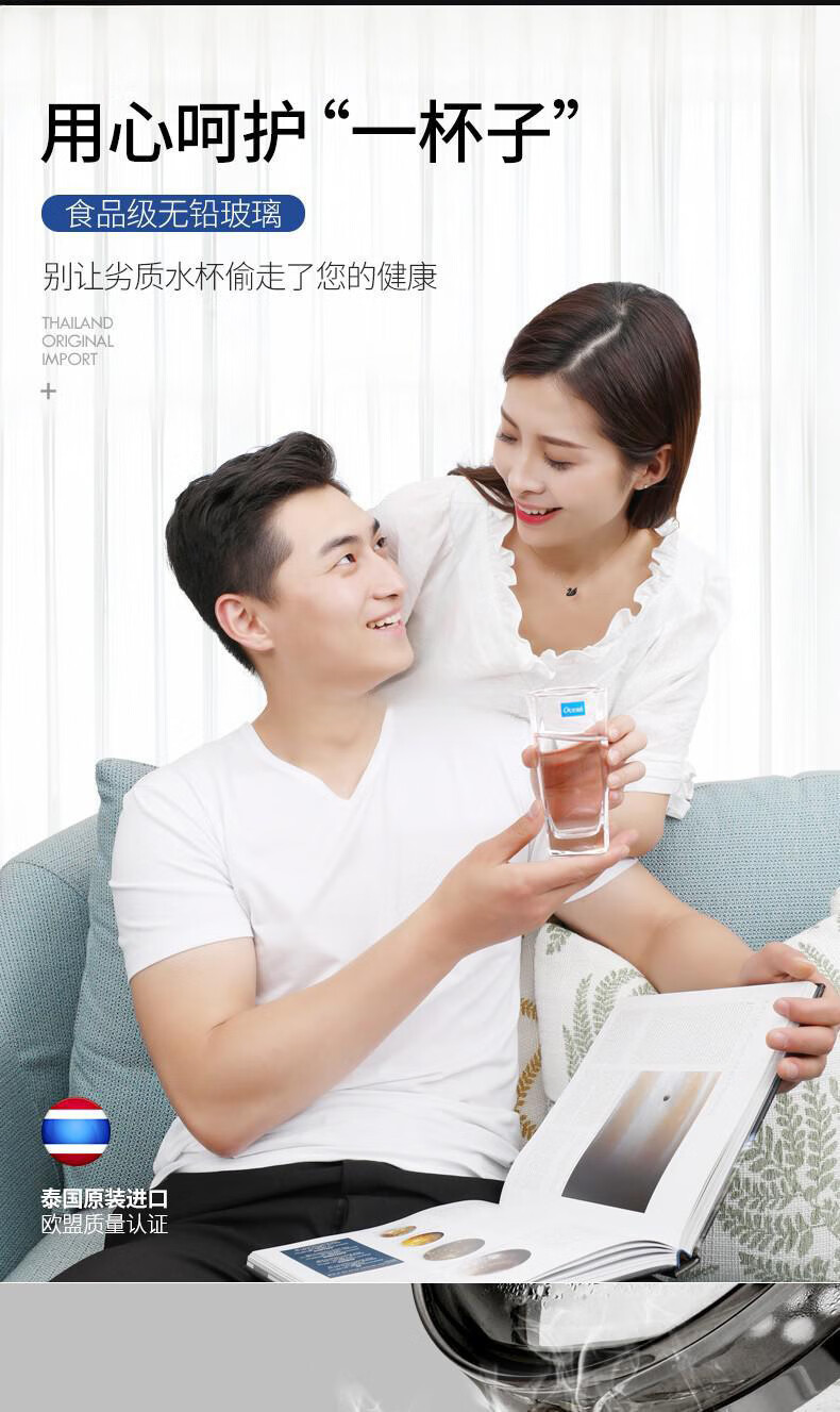 Ouxin imported glass cup household water cup set heat-resistant glass tea cup drinking cup household transparent cup milk cup round style 340ml six pack