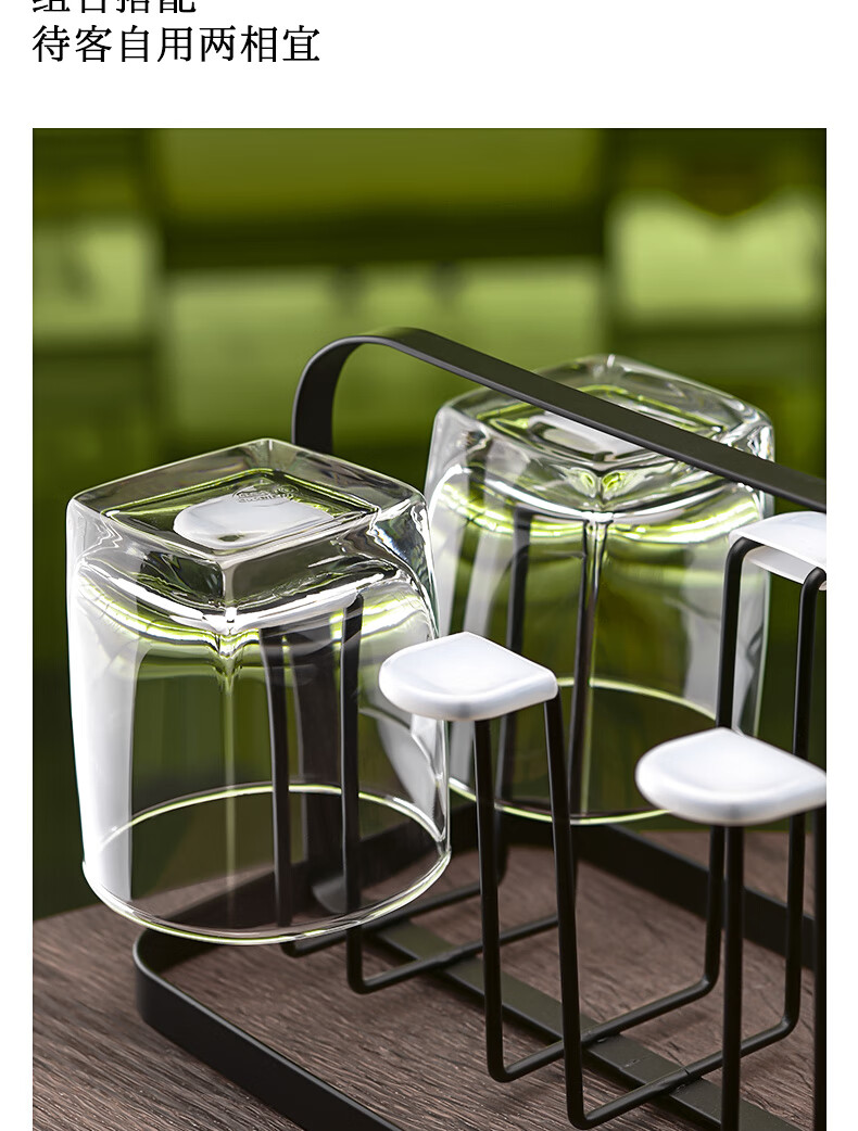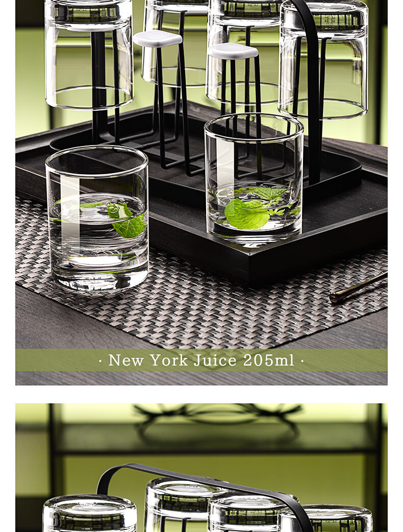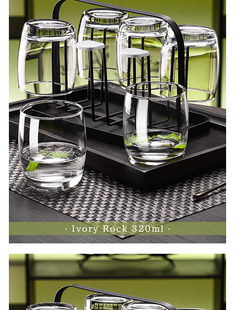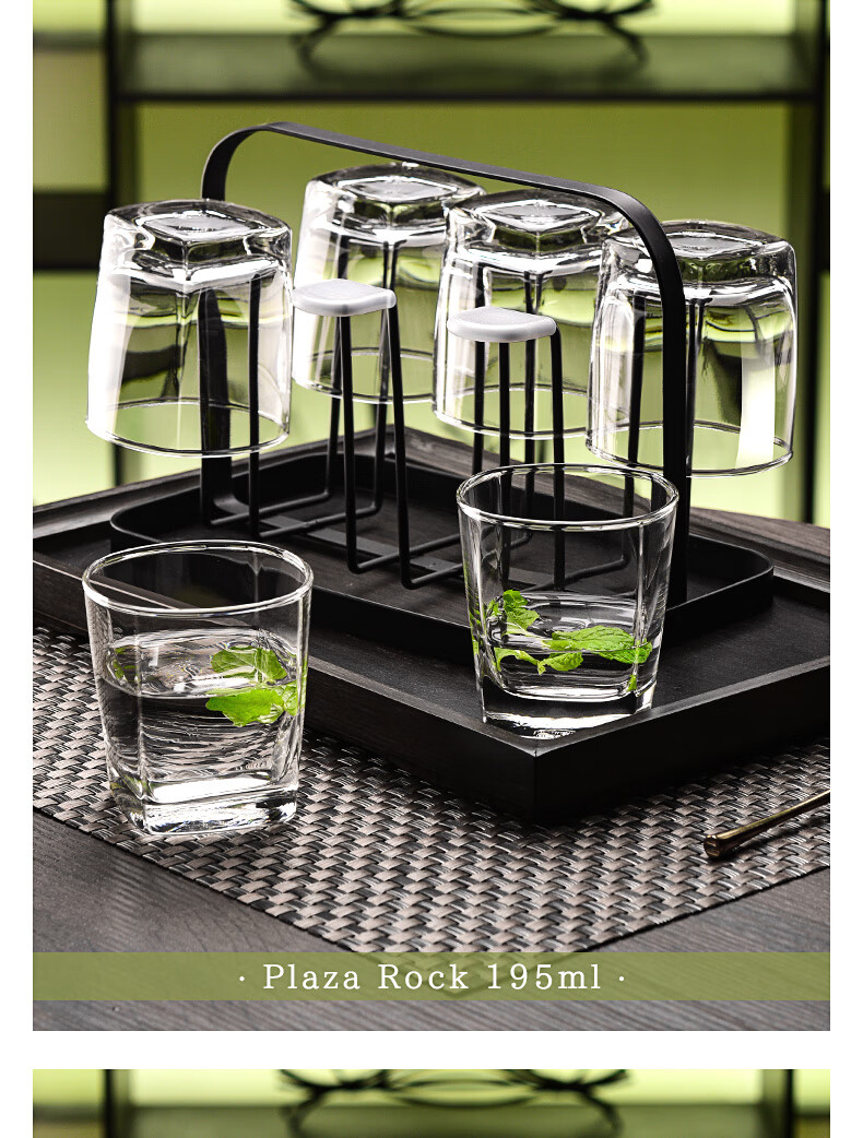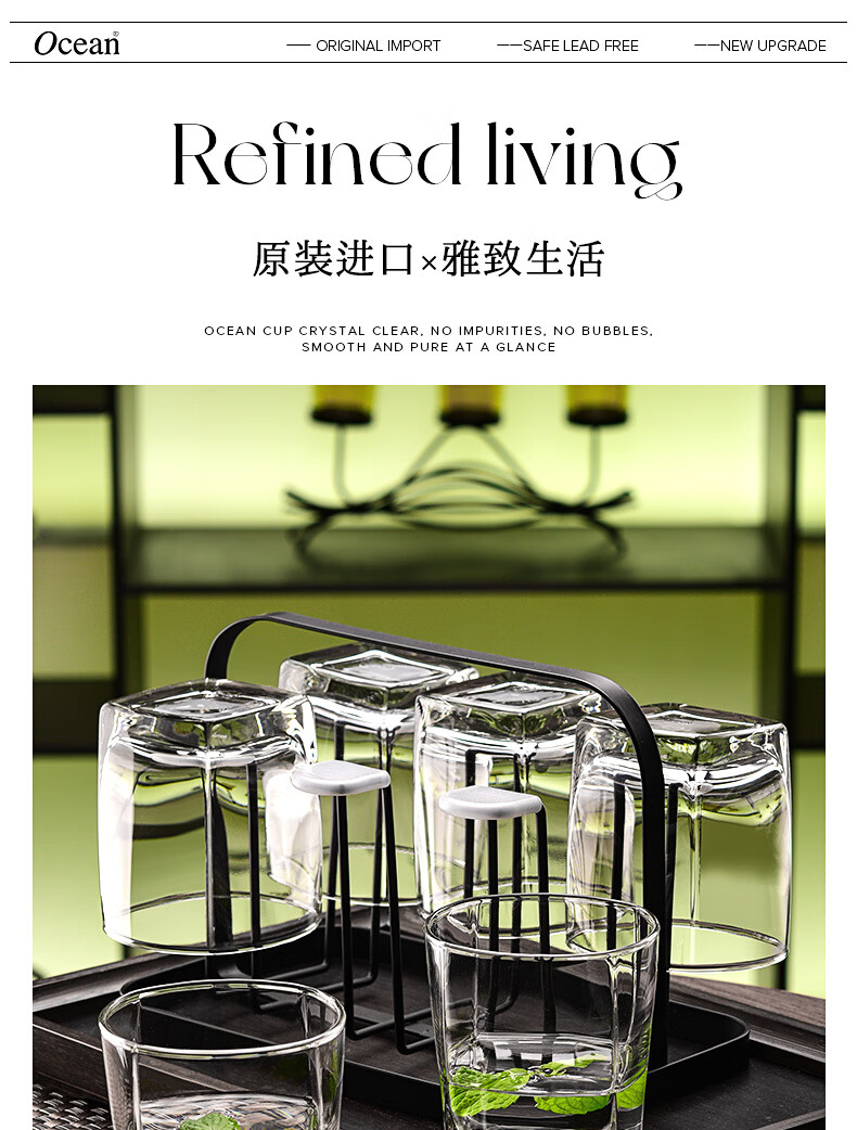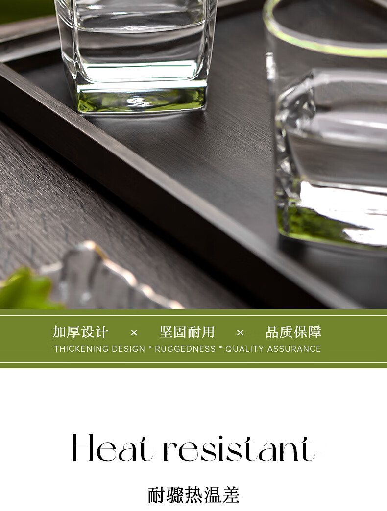 Ouxin imported glass household hospitality cup drinking water green tea cup juice beer cup heat-resistant high-end set 320mlx6+small black plate+black frame