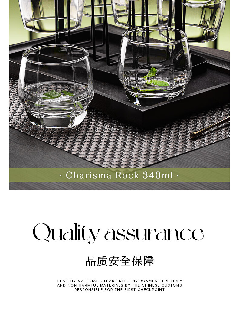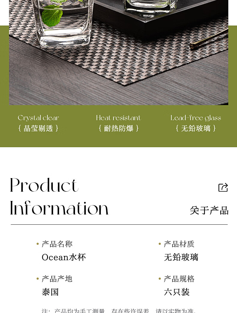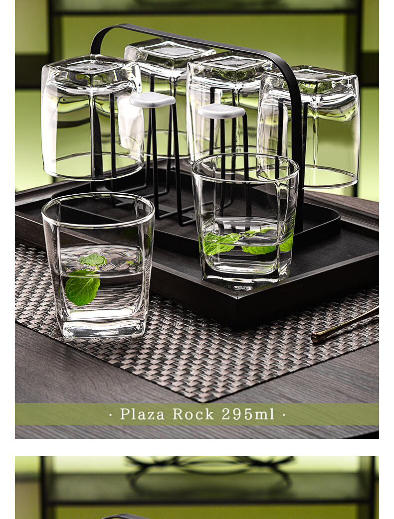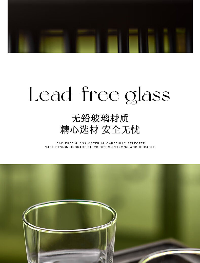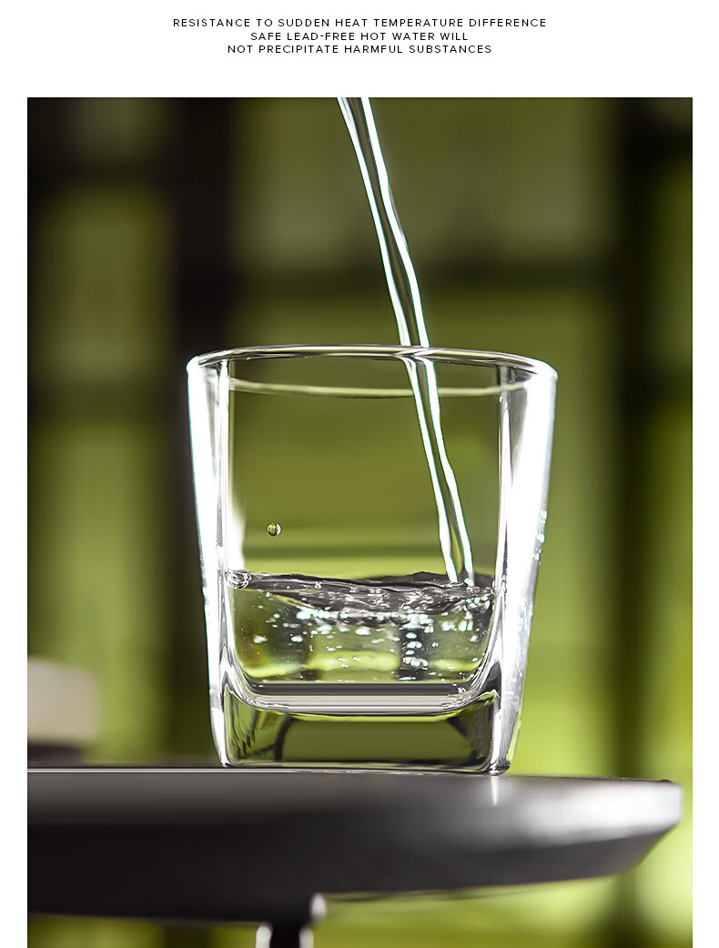Ouxin imported glass household hospitality cup drinking water green tea cup juice beer cup heat-resistant high-end set 320mlx6+small black plate+black frame