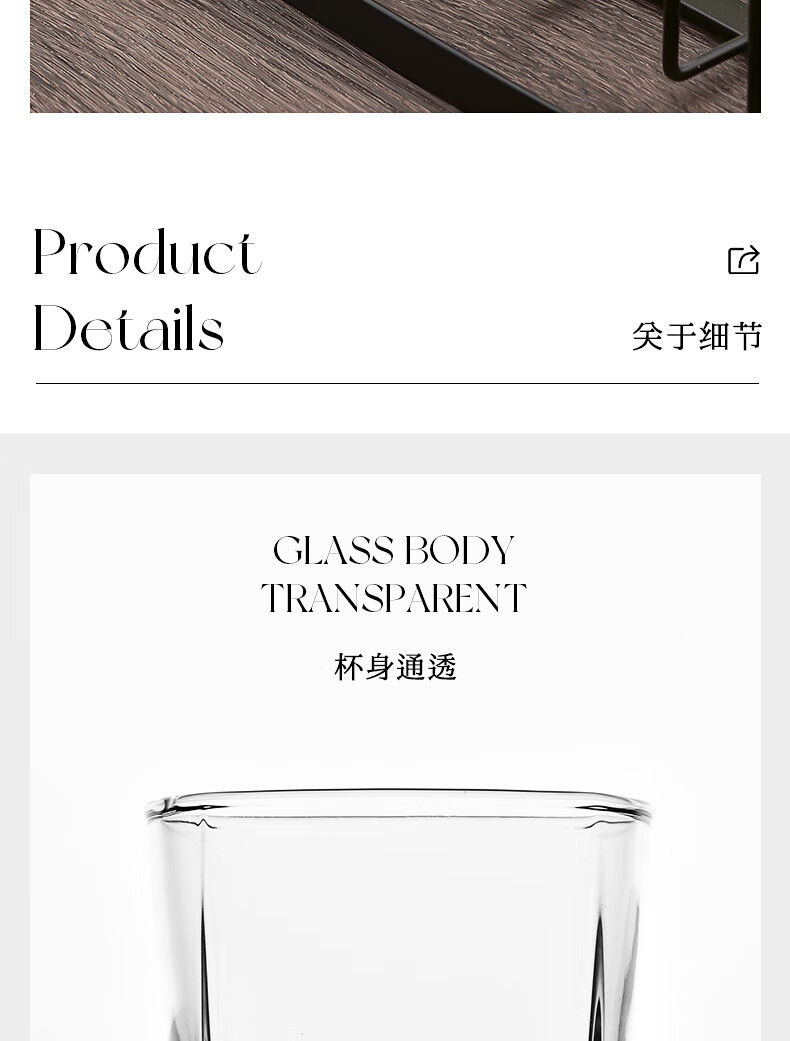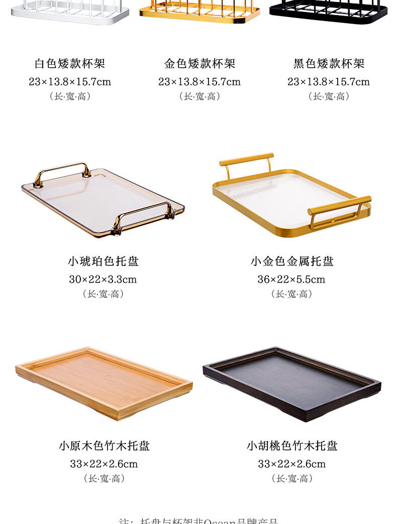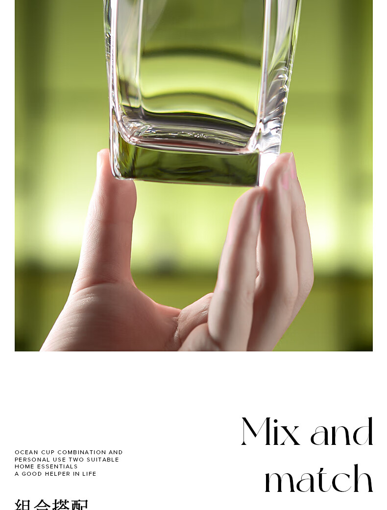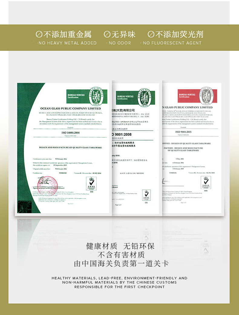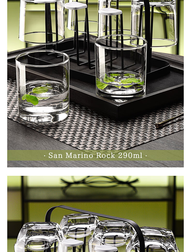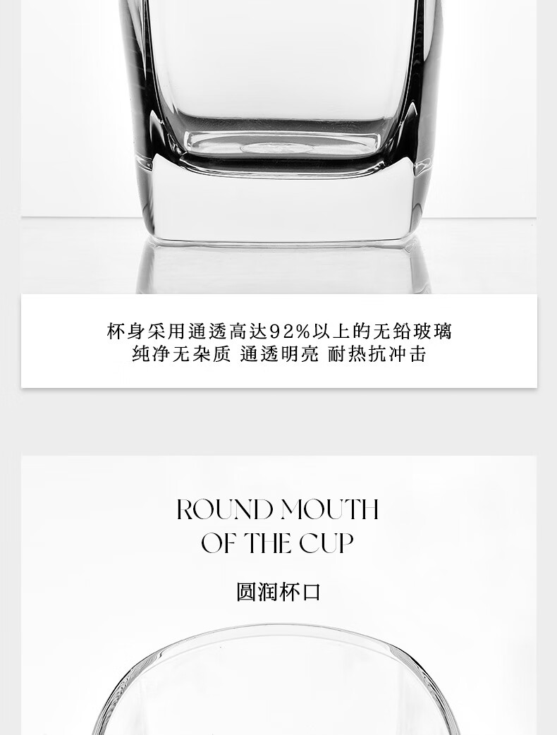 Ouxin imported glass household hospitality cup drinking water green tea cup juice beer cup heat-resistant high-end set 320mlx6+small black plate+black frame