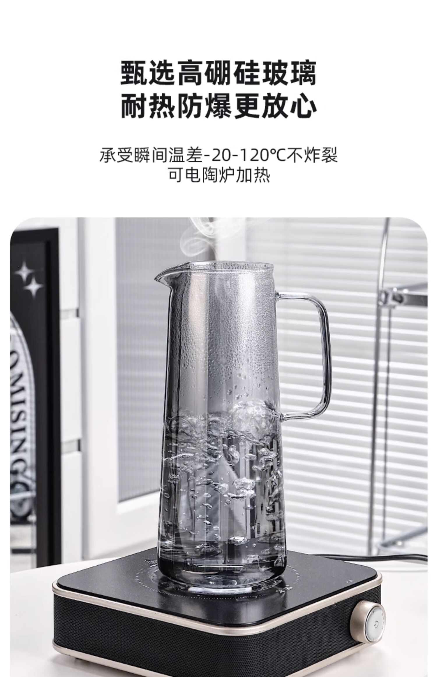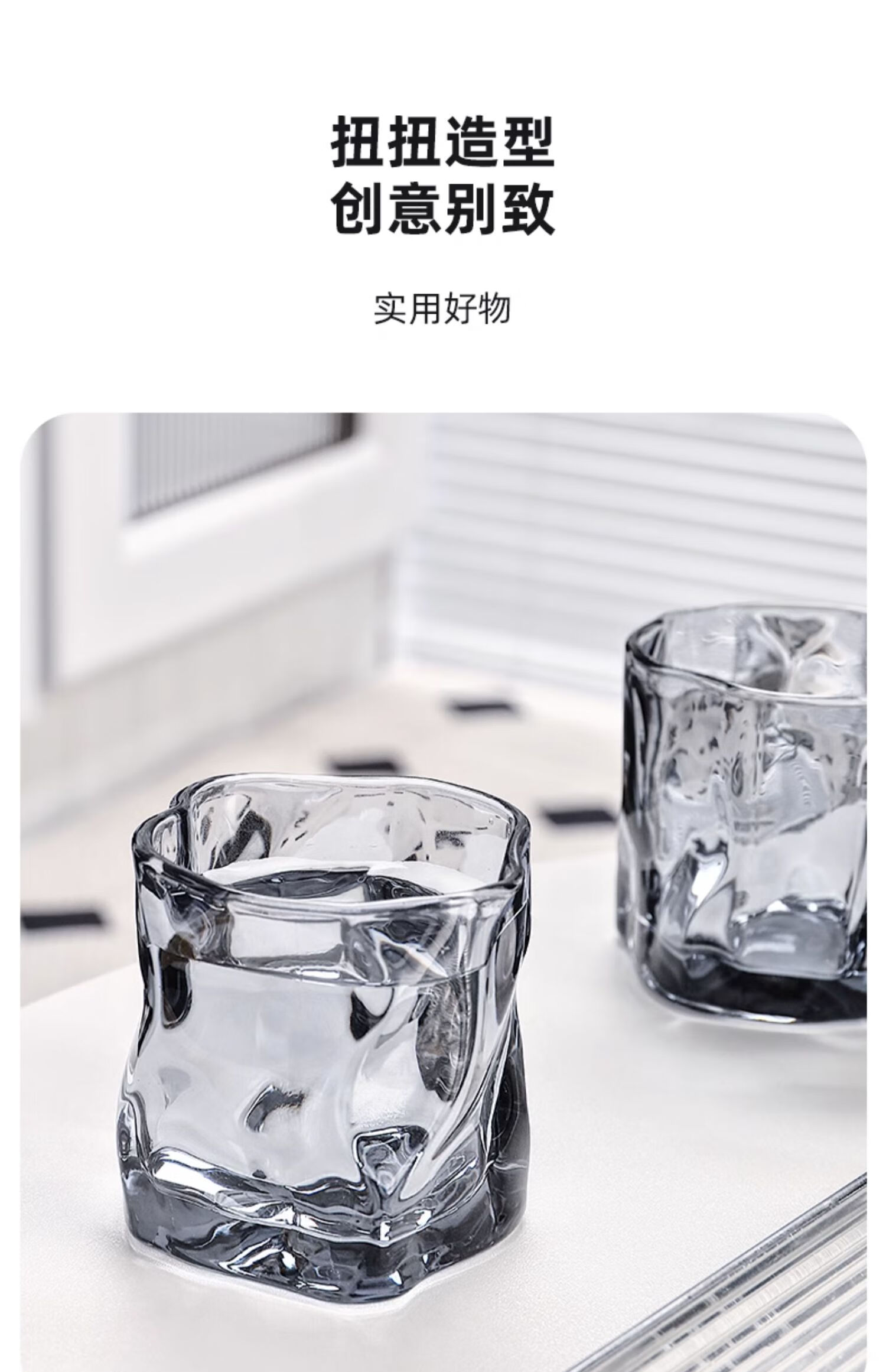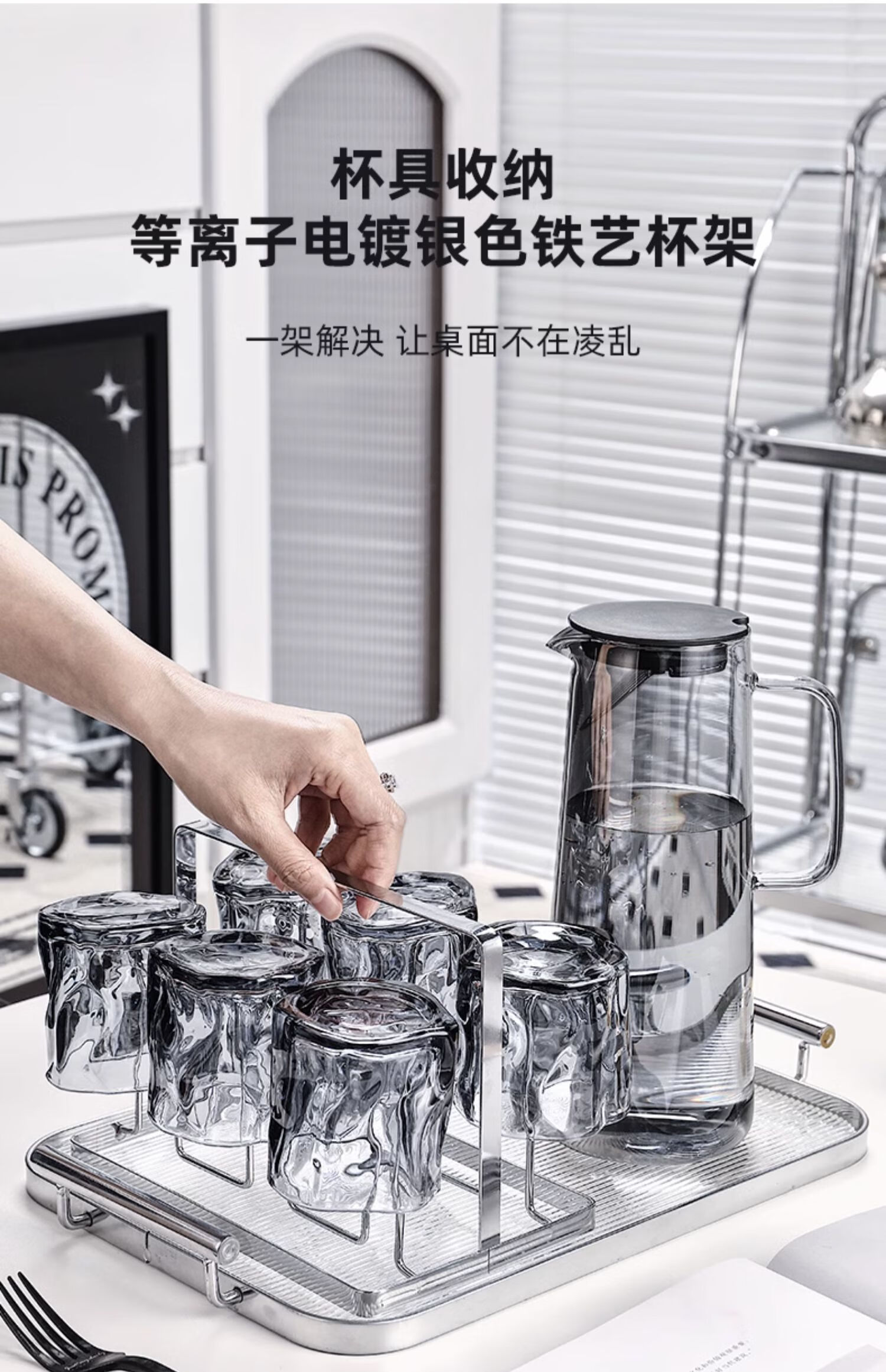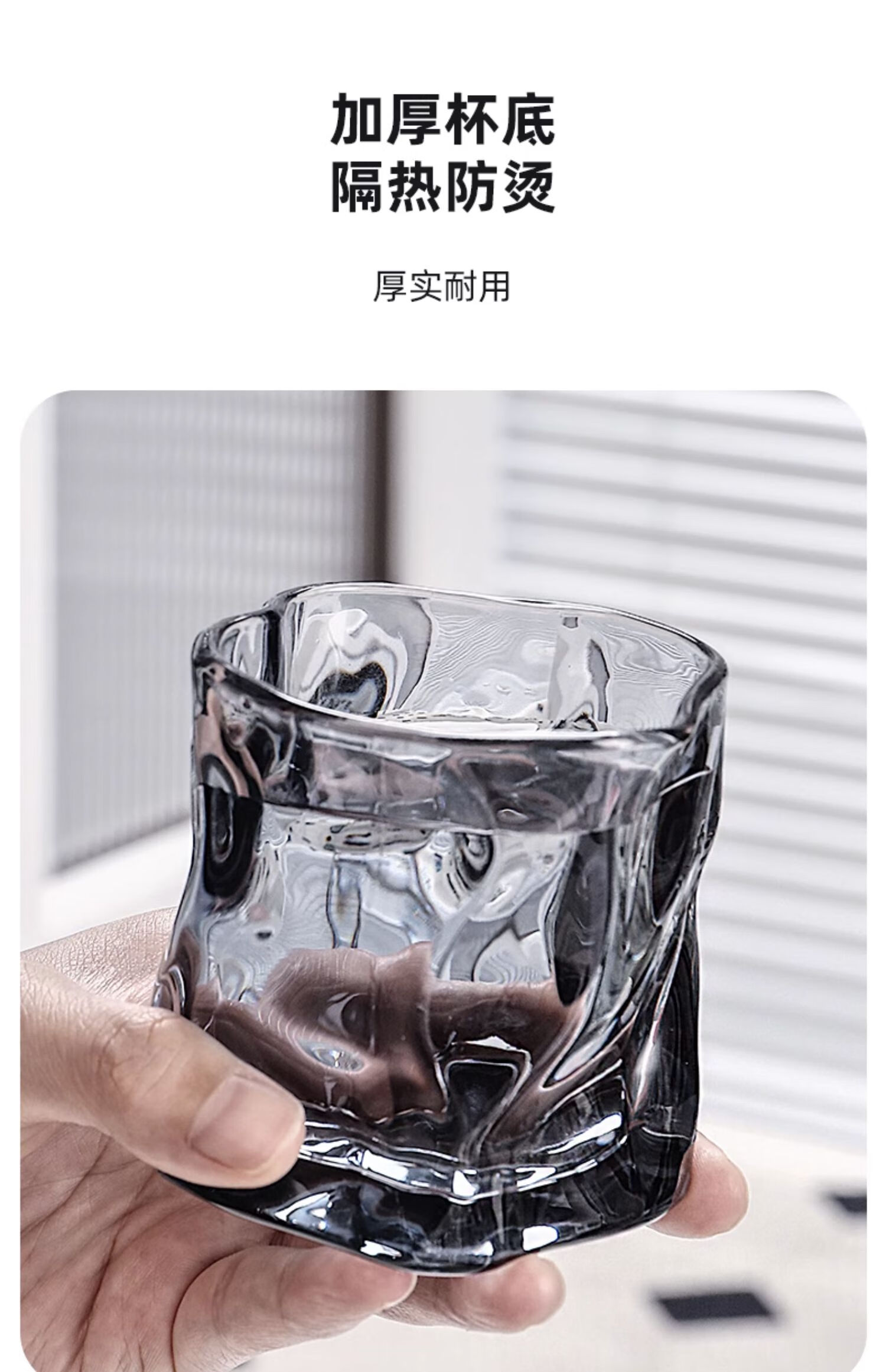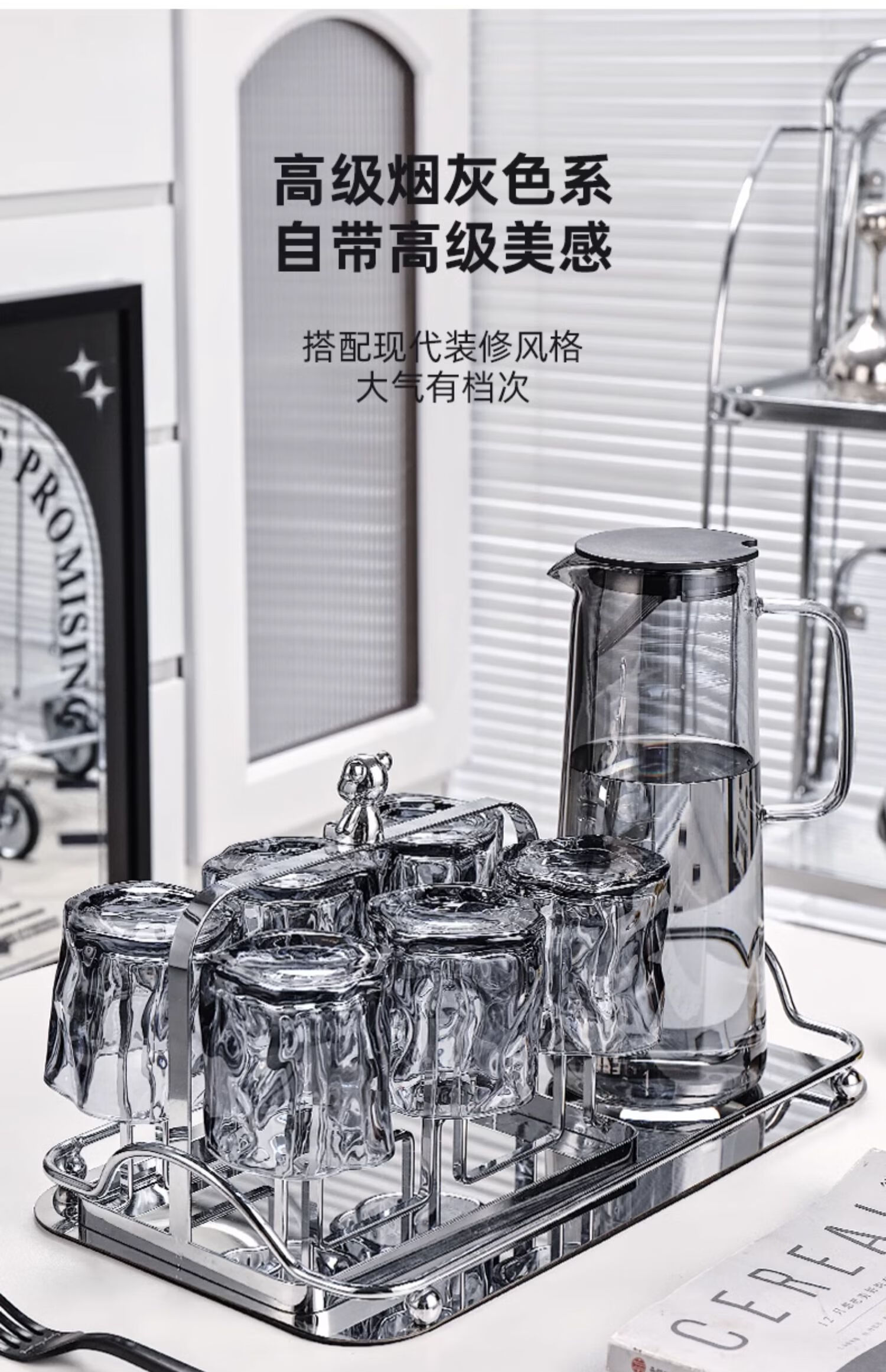 MIDOC glass cup, high-end home water cup set, living room room temperature tea cup, drinking cup, family tea cup set, cigarette ash twist 6 + black frame + black iron plate + gray triangle kettle