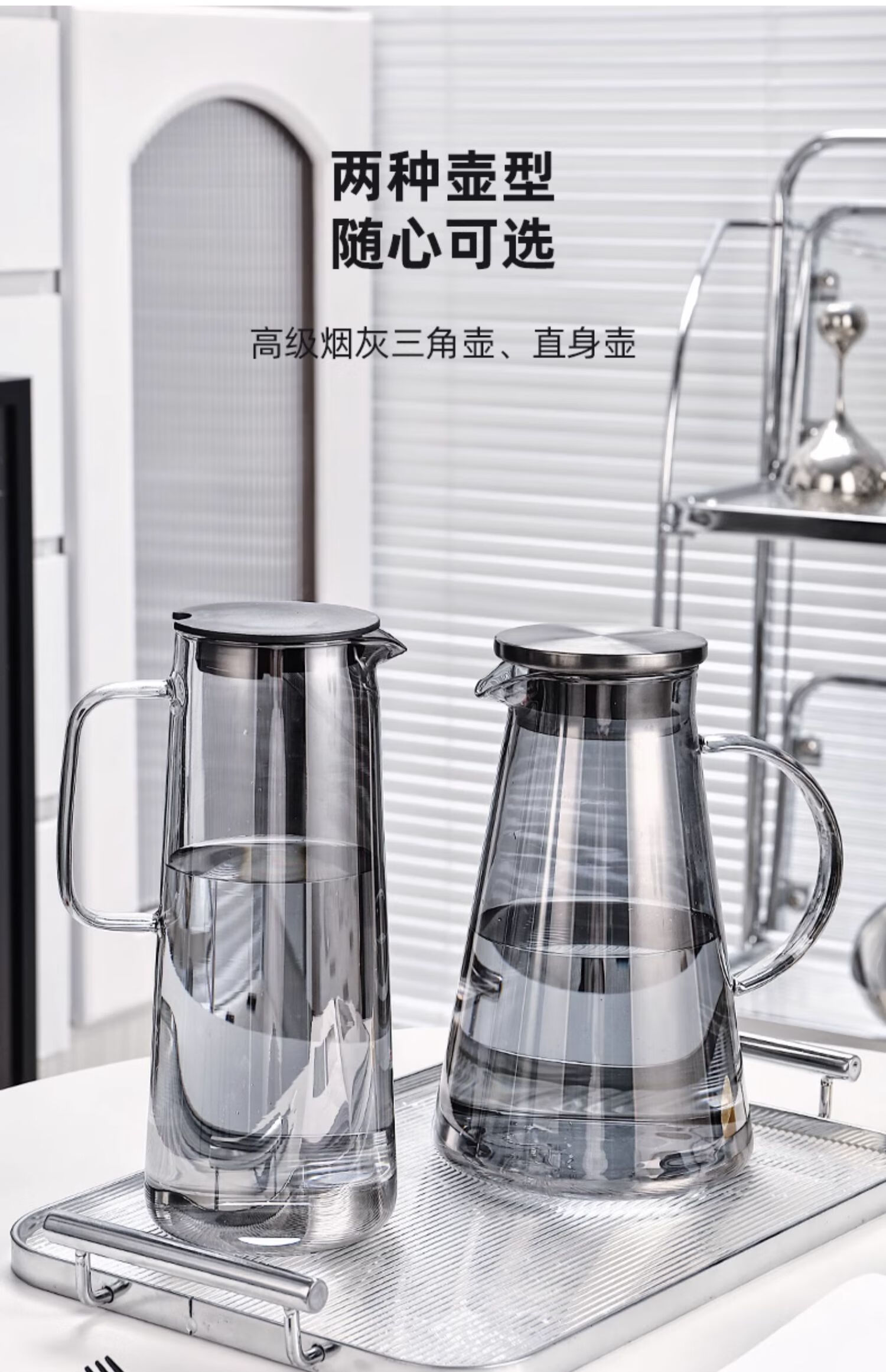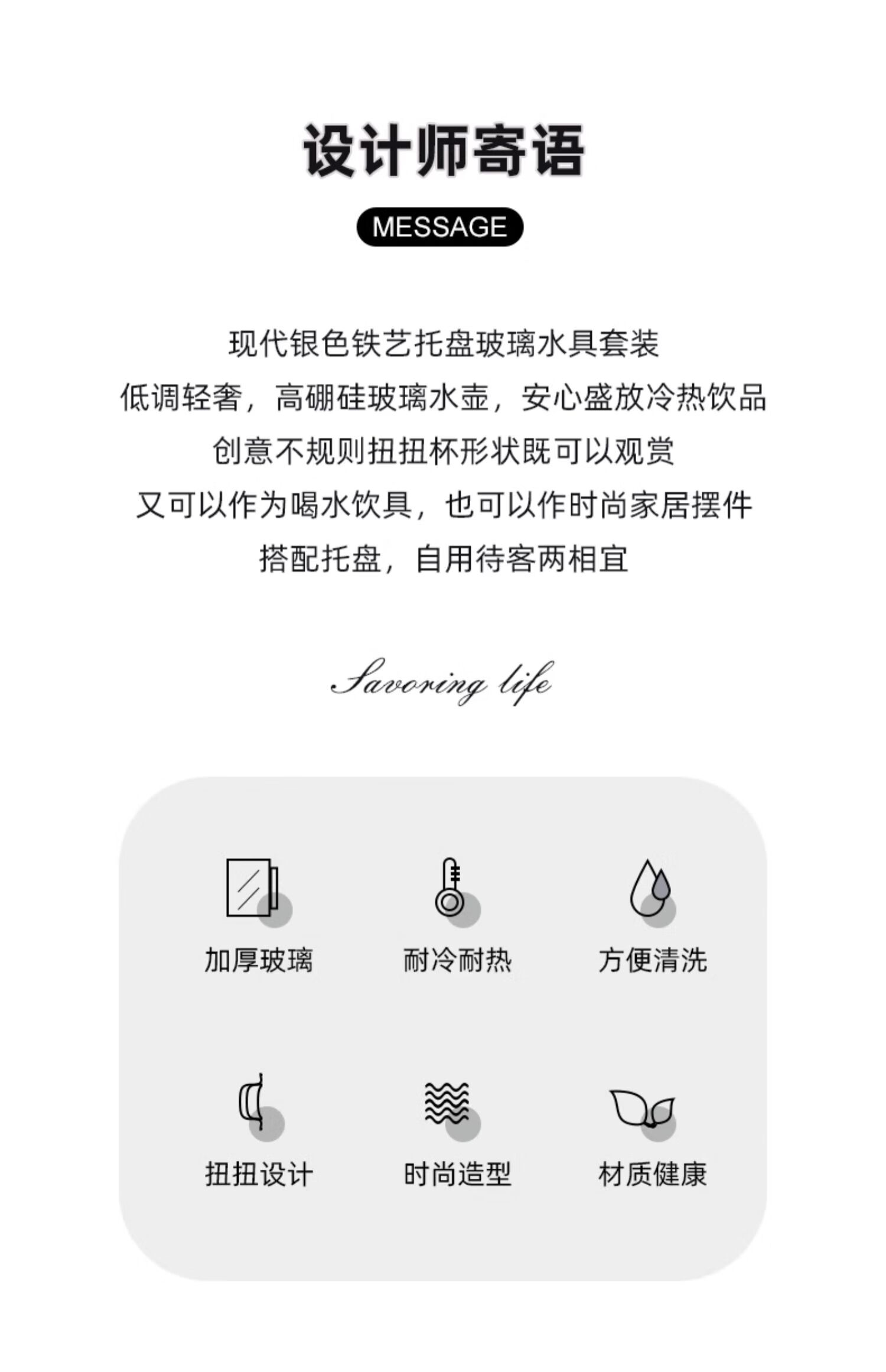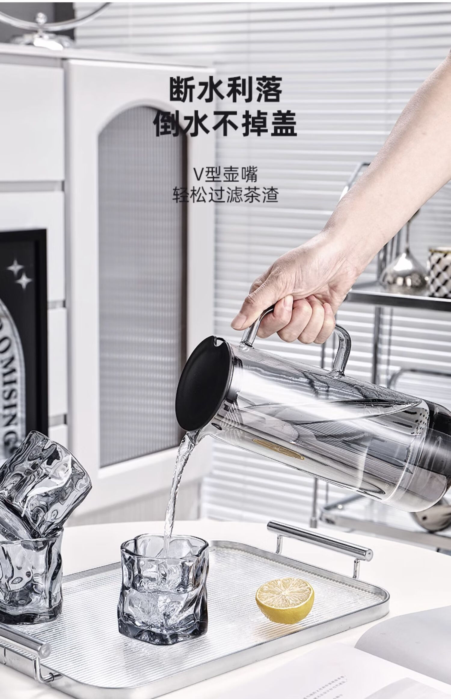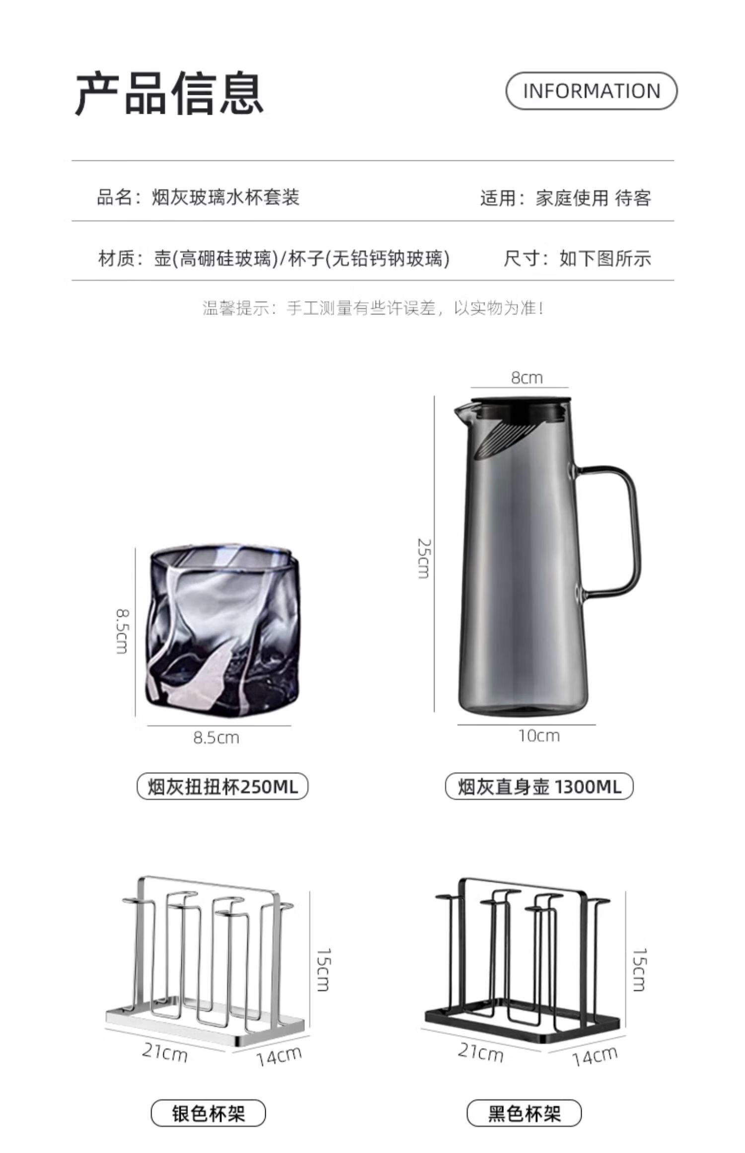 MIDOC glass cup, high-end home water cup set, living room room temperature tea cup, drinking cup, family tea cup set, cigarette ash twist 6 + black frame + black iron plate + gray triangle kettle