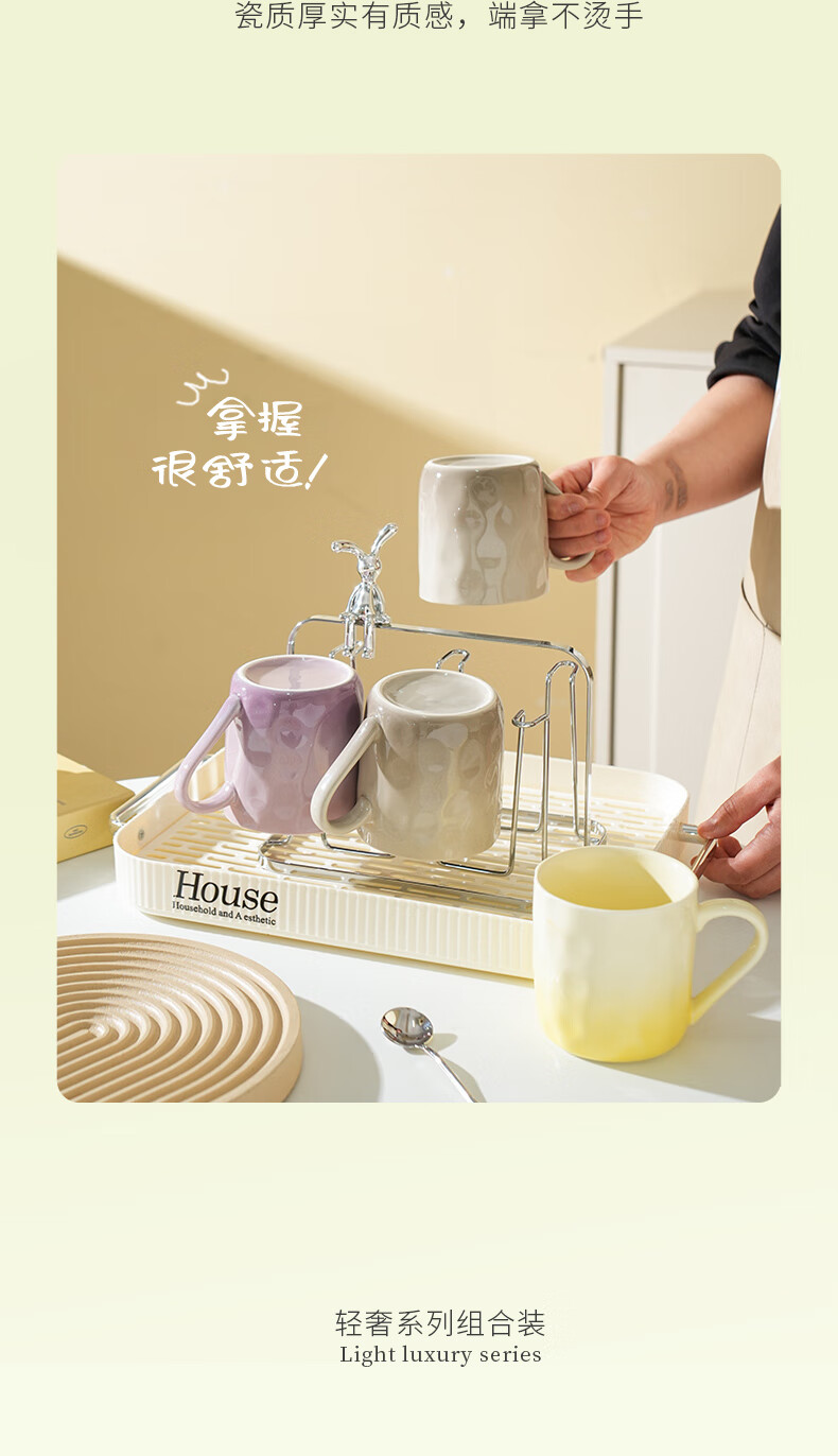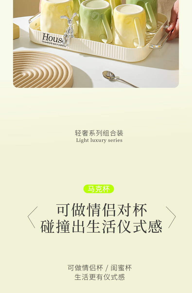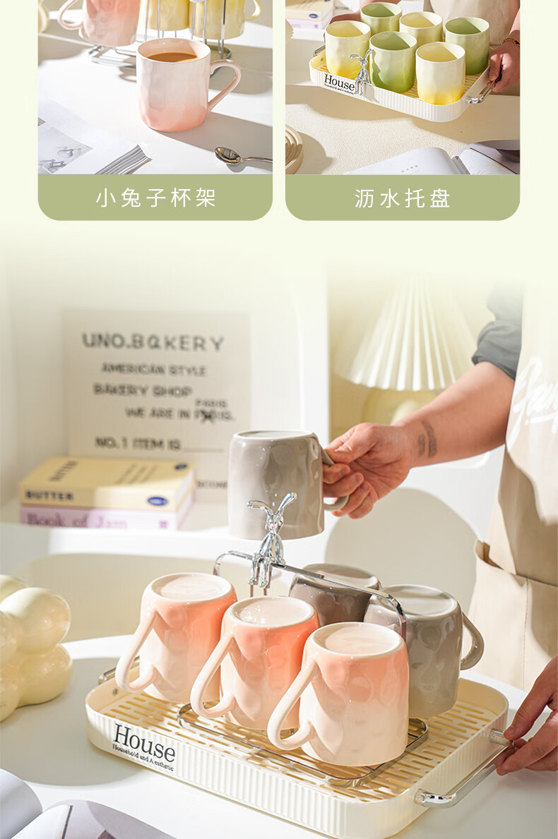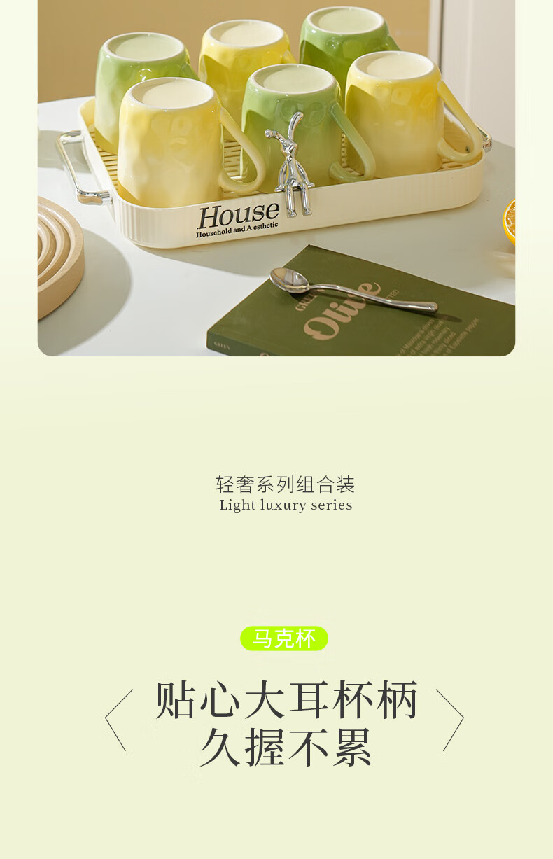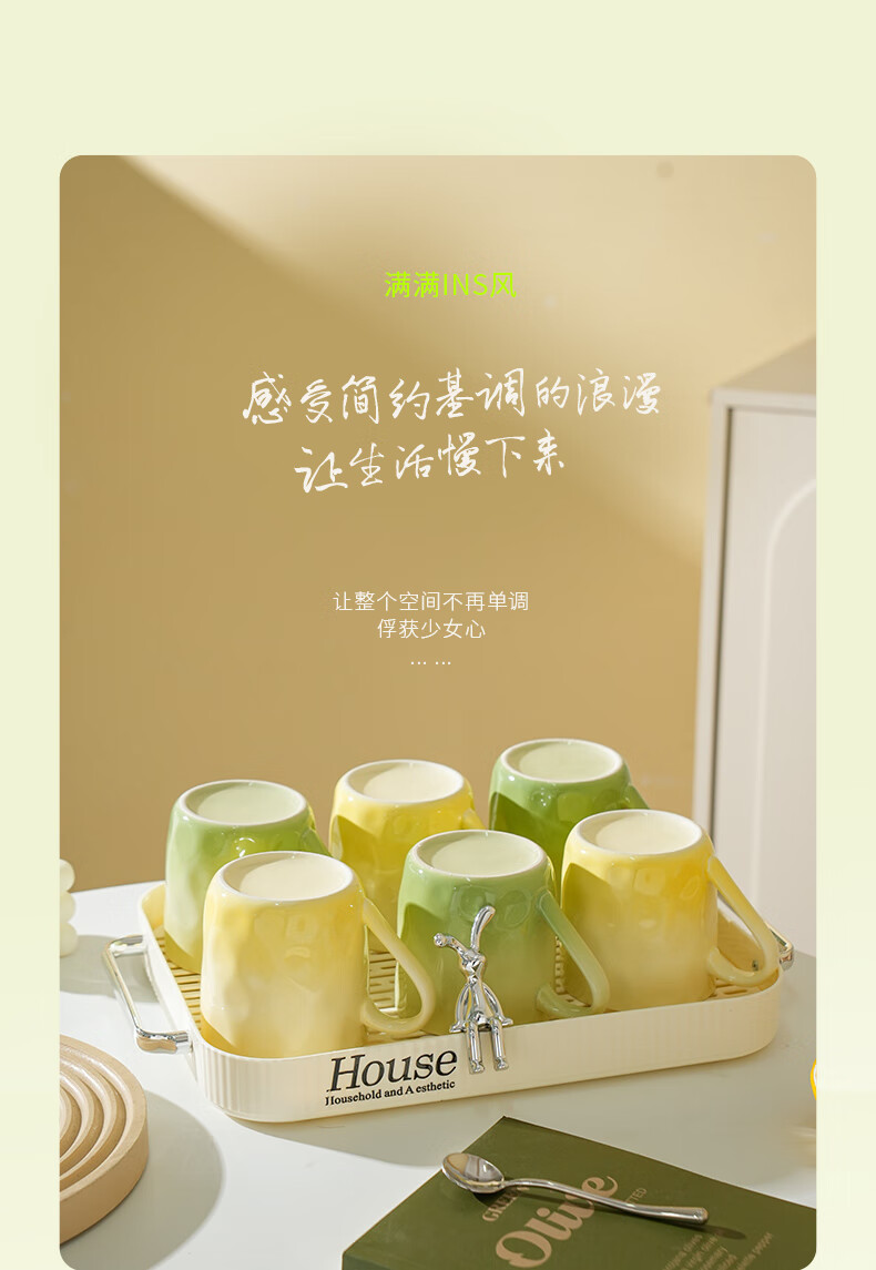 Housewarming water set, high-end Mark cup, home drinking cup, tea set, living room tea set, mixed color six pack + tray + cup holder. If you need a gift box, please contact online customer service to add it