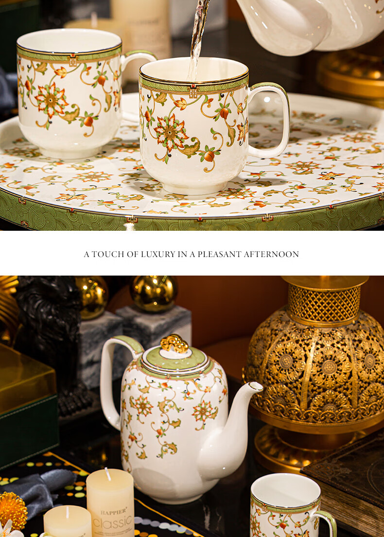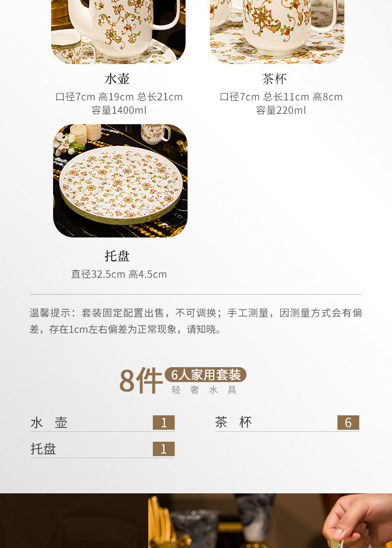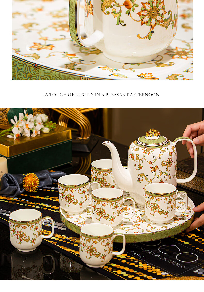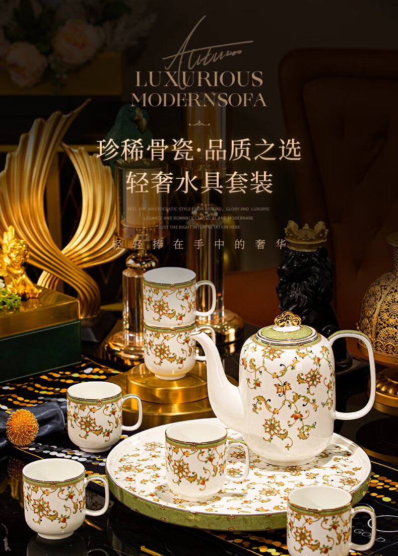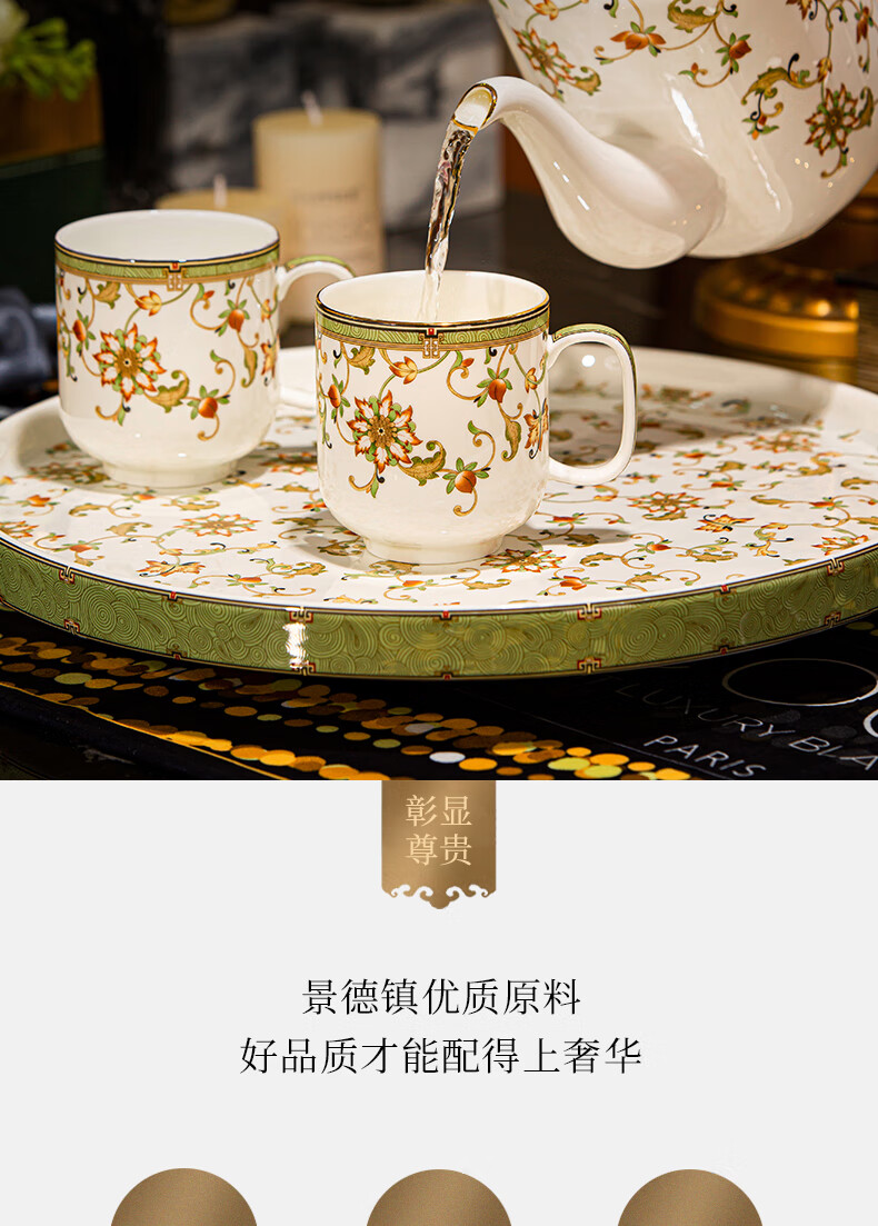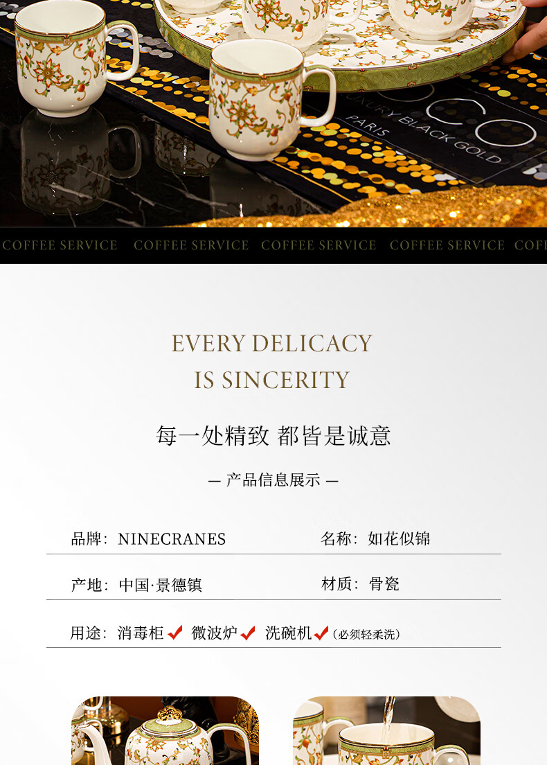 NINE CRANES high-end Jingdezhen water set housewarming and moving bone china water cup high-value tea set complete set of wedding gifts for newlyweds like flowers 8-piece set | gift box + ghostwriting greeting card