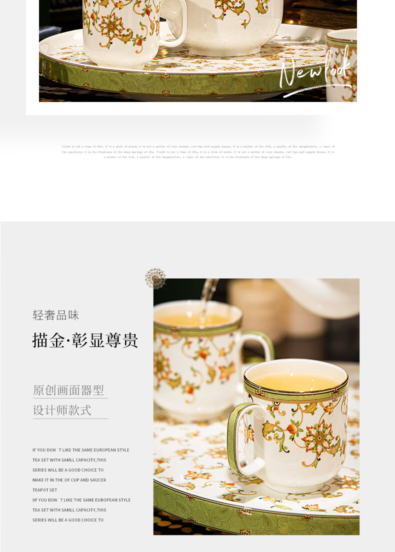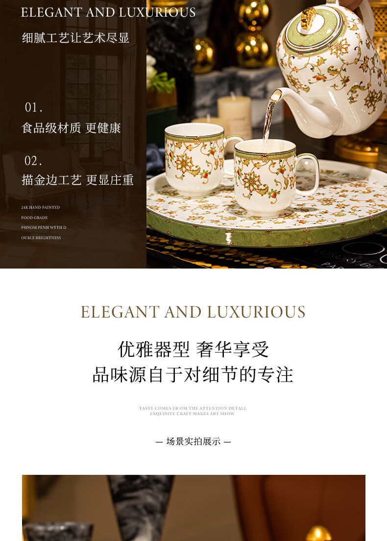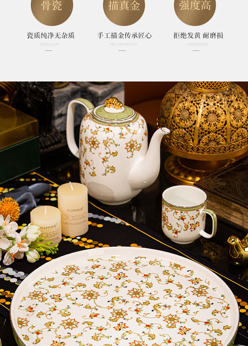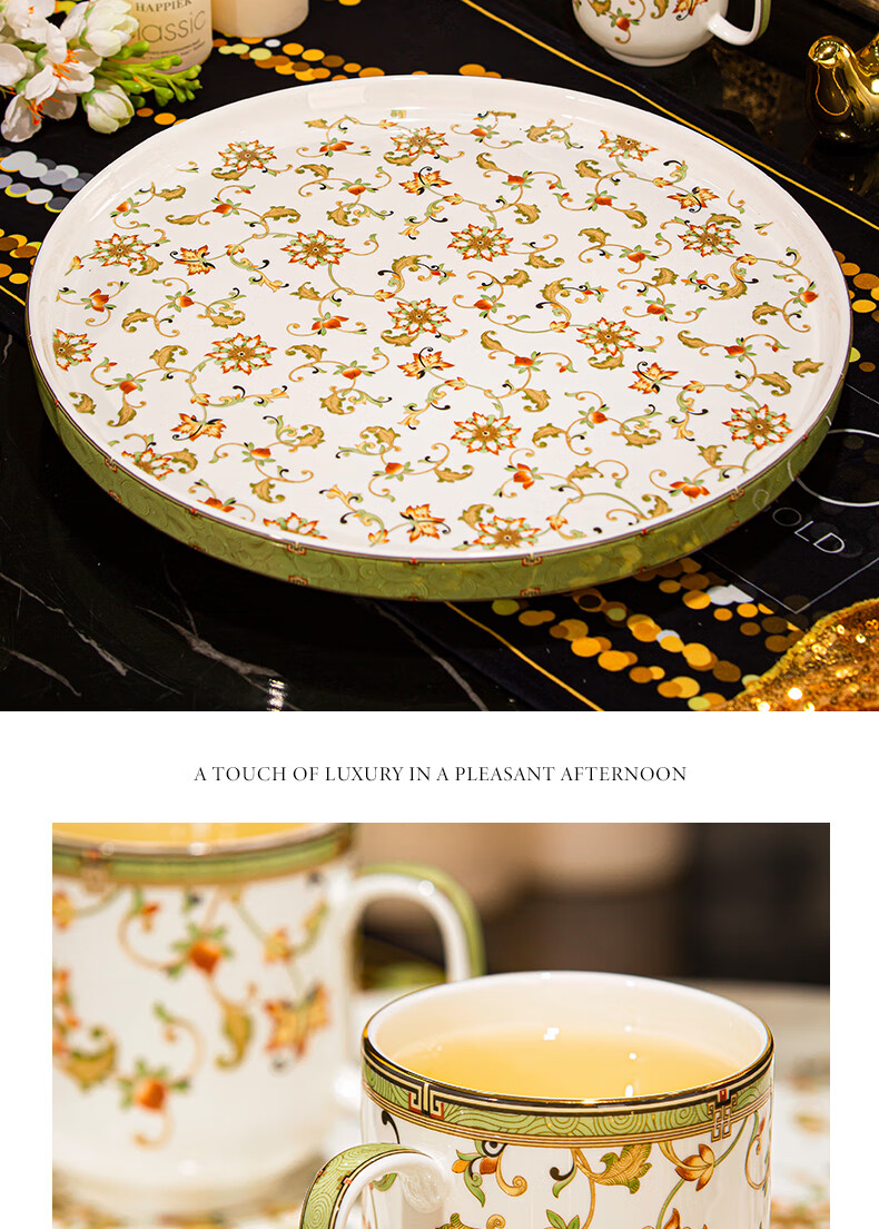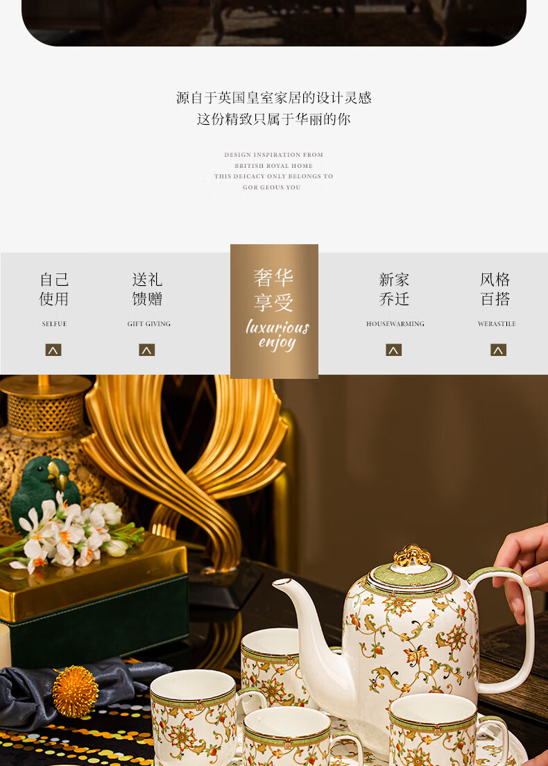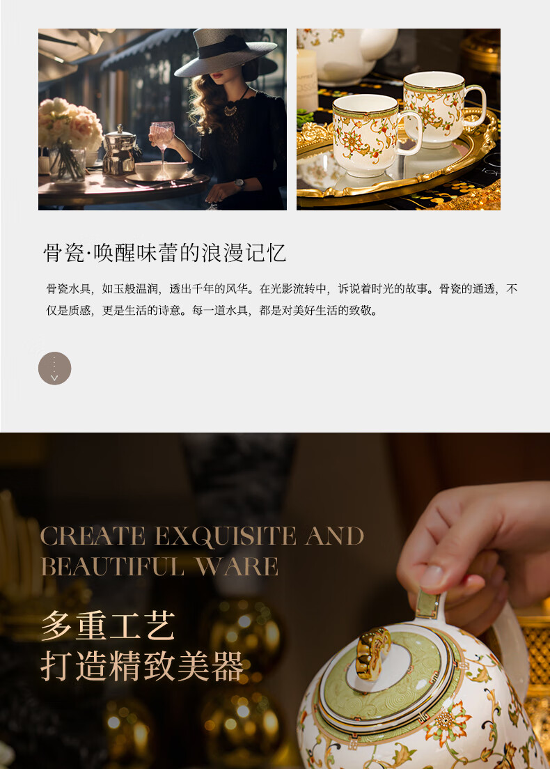 NINE CRANES high-end Jingdezhen water set housewarming and moving bone china water cup high-value tea set complete set of wedding gifts for newlyweds like flowers 8-piece set | gift box + ghostwriting greeting card