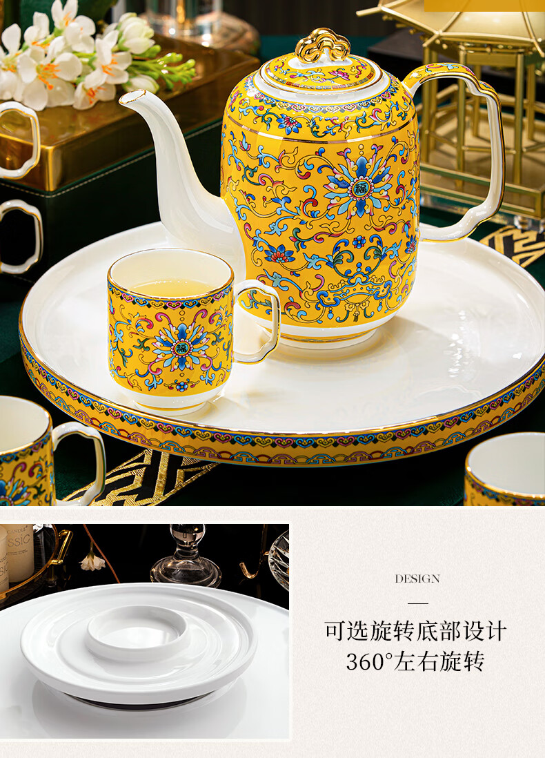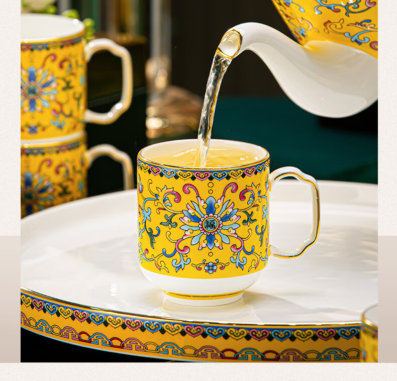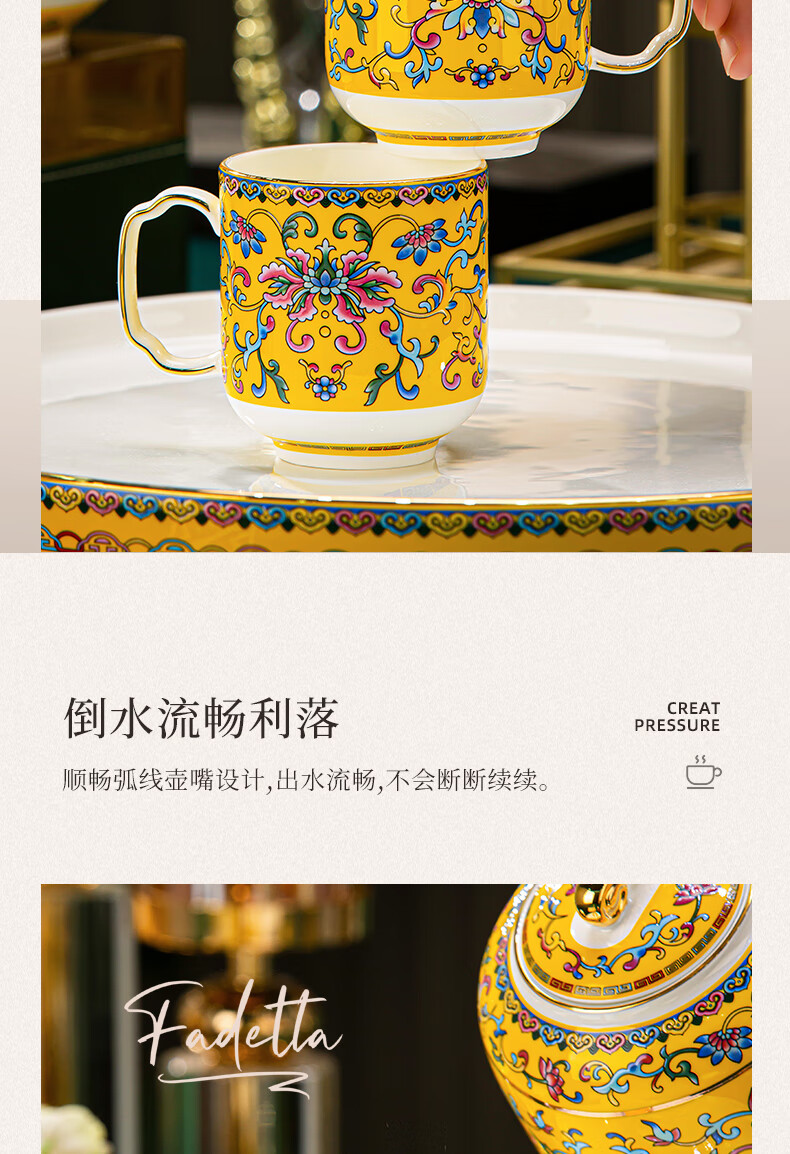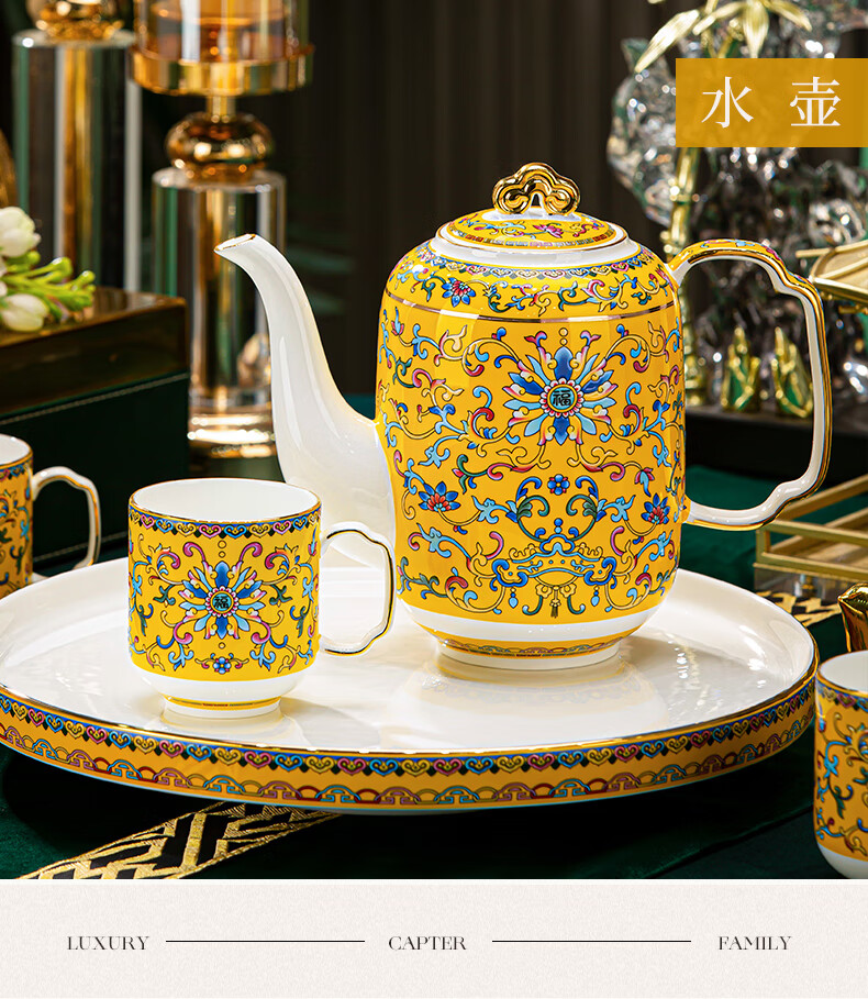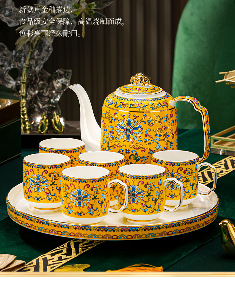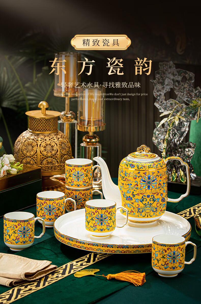 Hanming Jingdezhen Enamel Tea Set High-end Housewarming Gift Ceramic Teapot Water Cup Living Room Household Cup Set High-end Bone China Tea Set 8-piece Gift Box